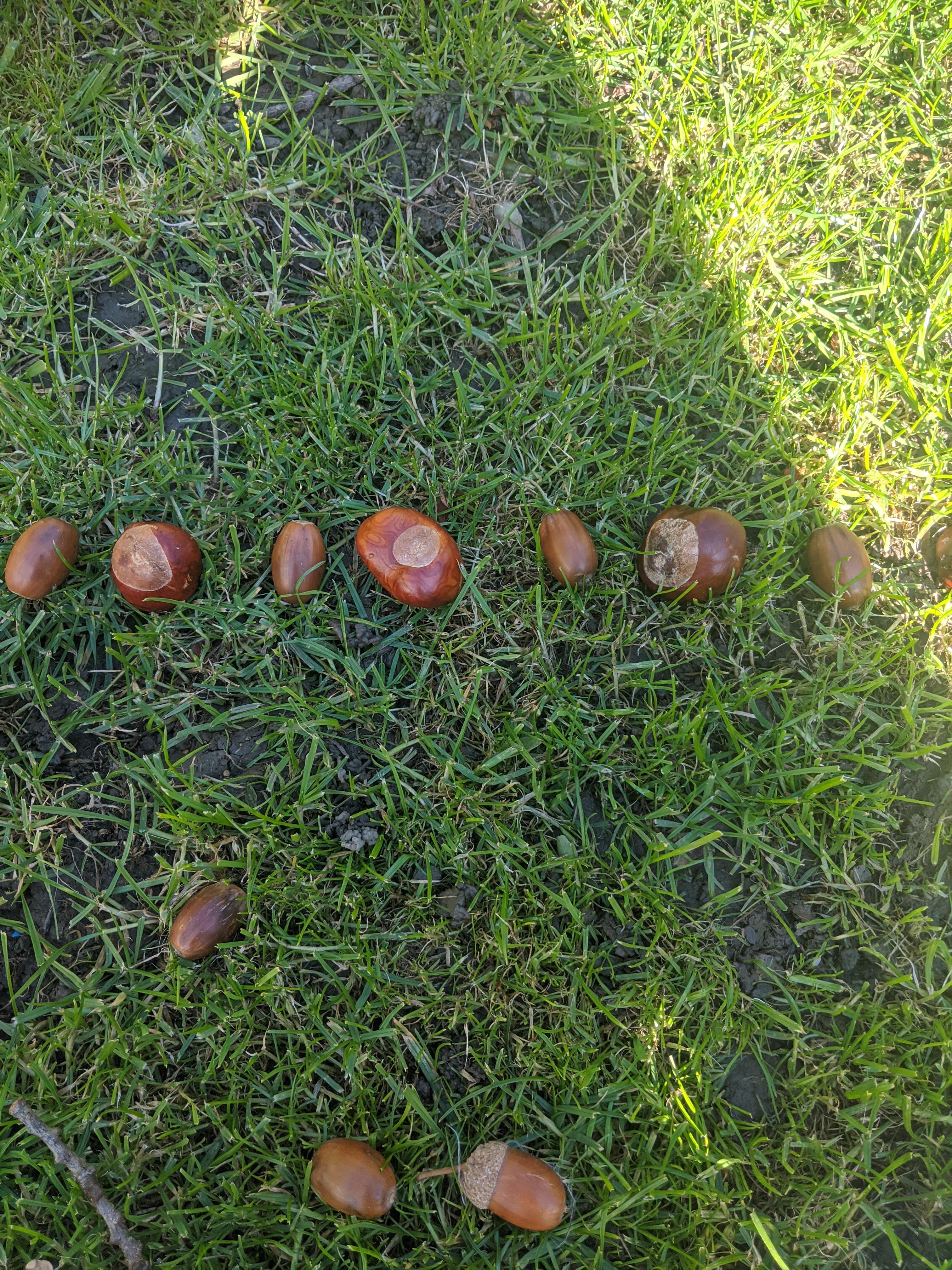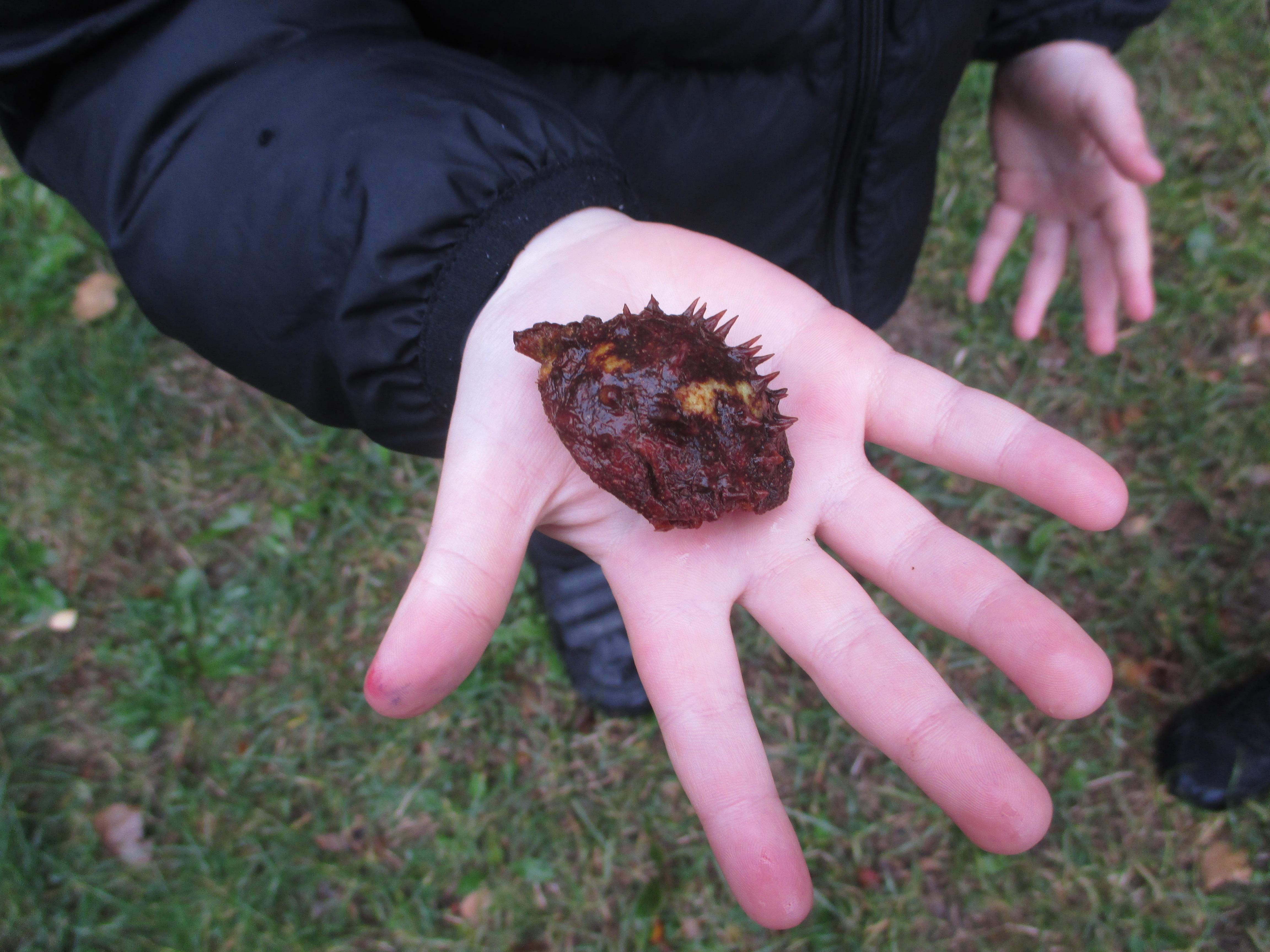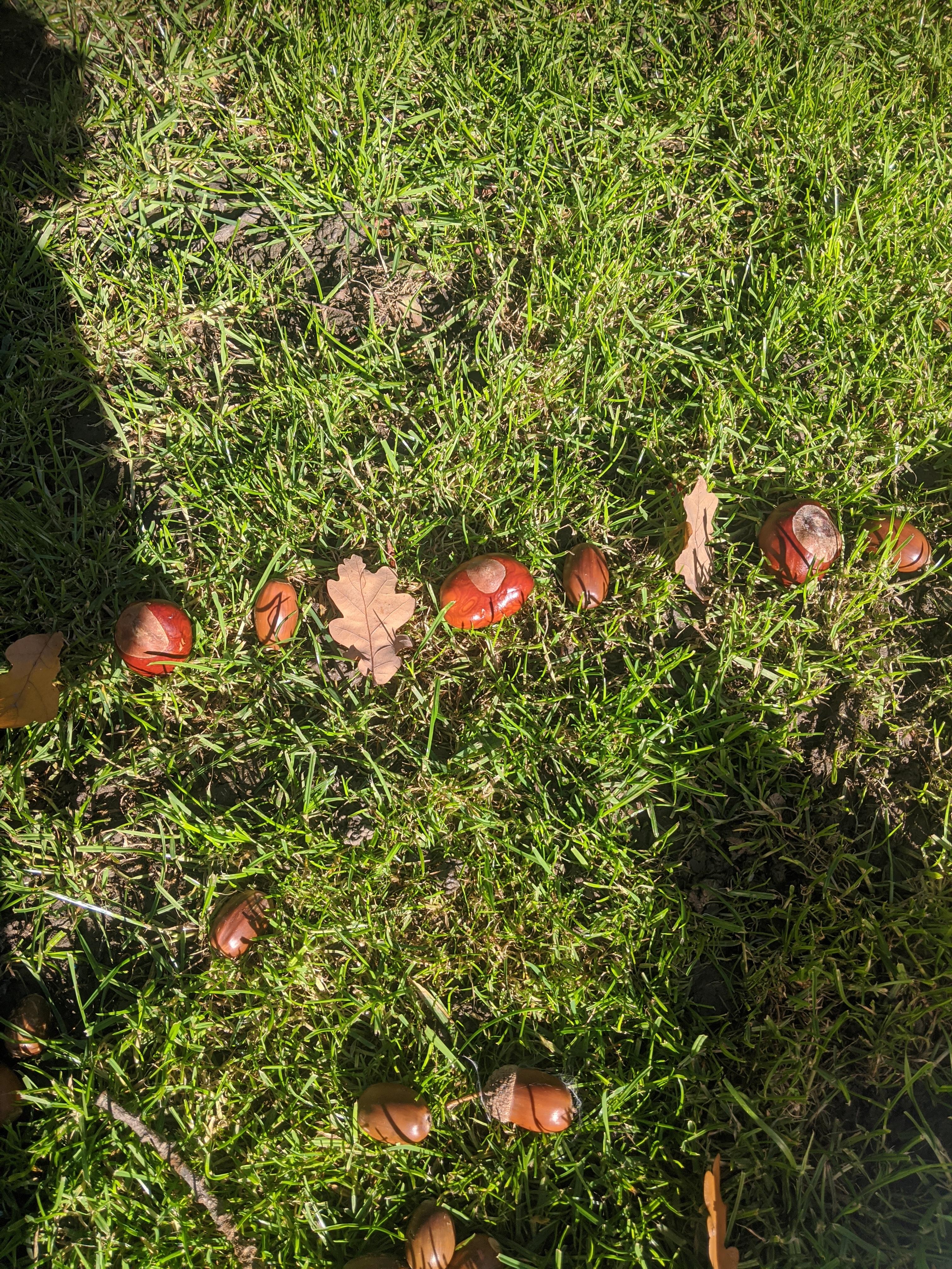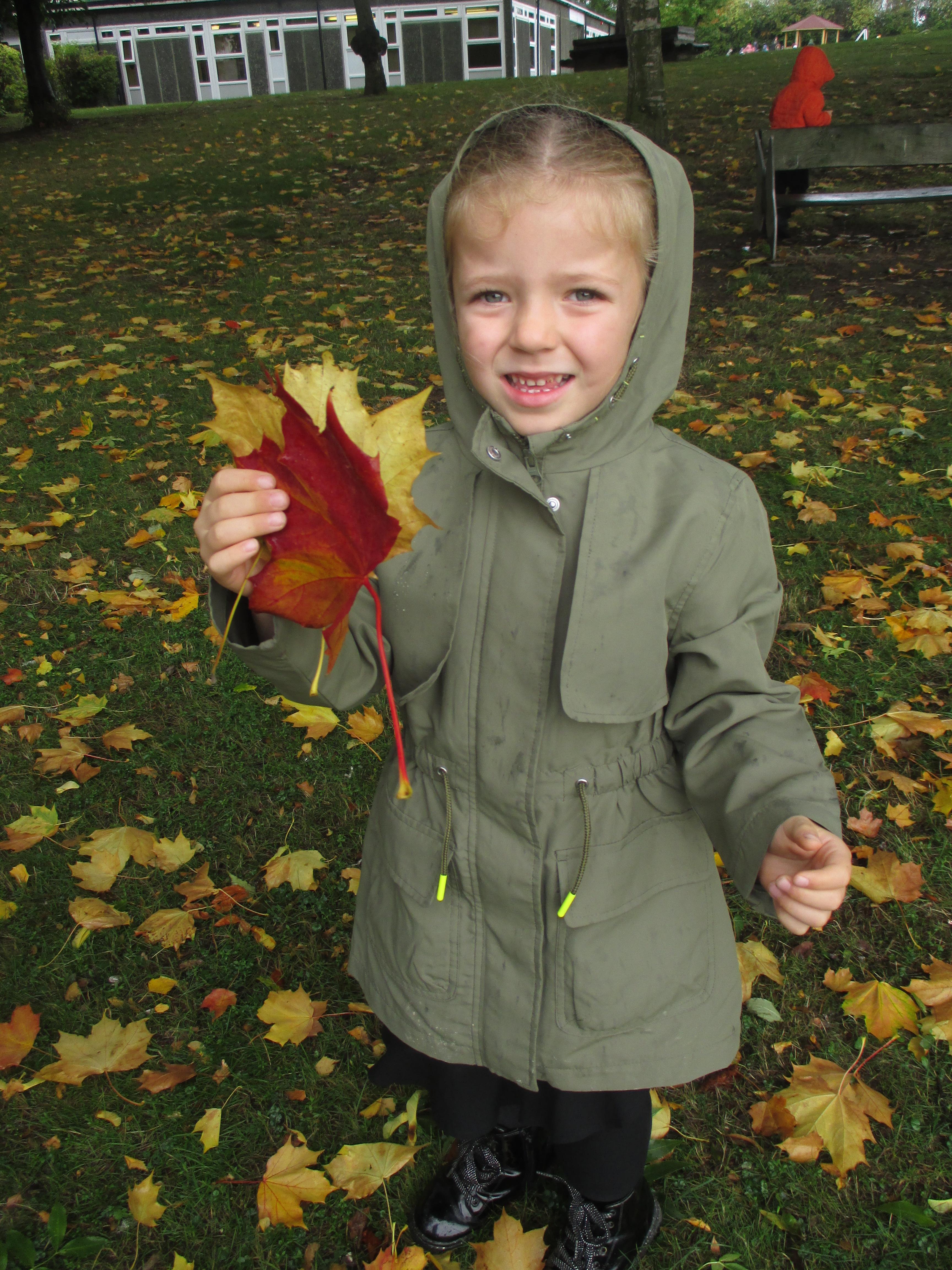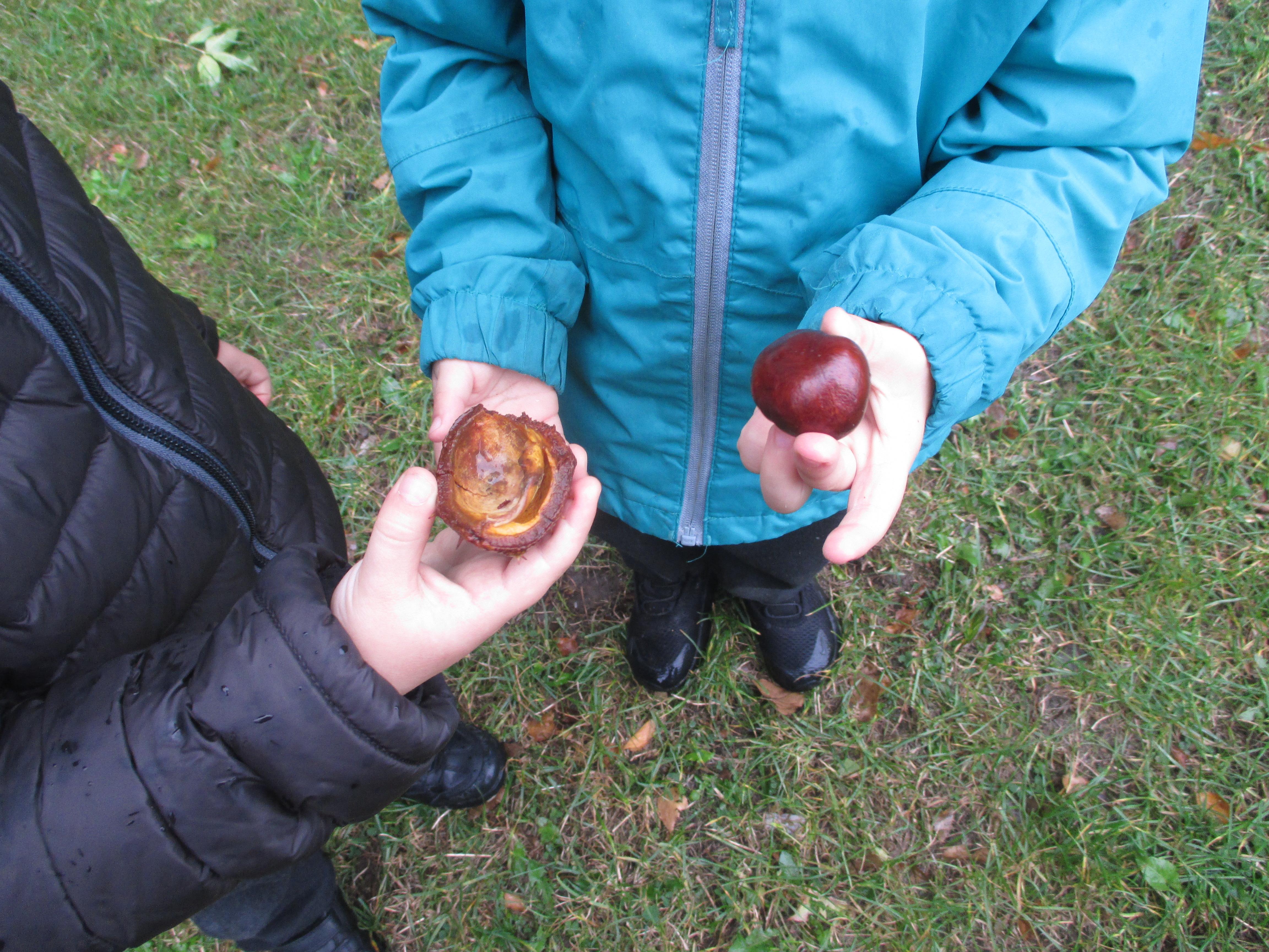 We have been talking about the season of 'Autumn'. We exploring different objects that we can find in Autumn such as pine cones, conkers, conker shells and coloured leaves. We have been exploring how they feel and have been thinking of our own describing words.