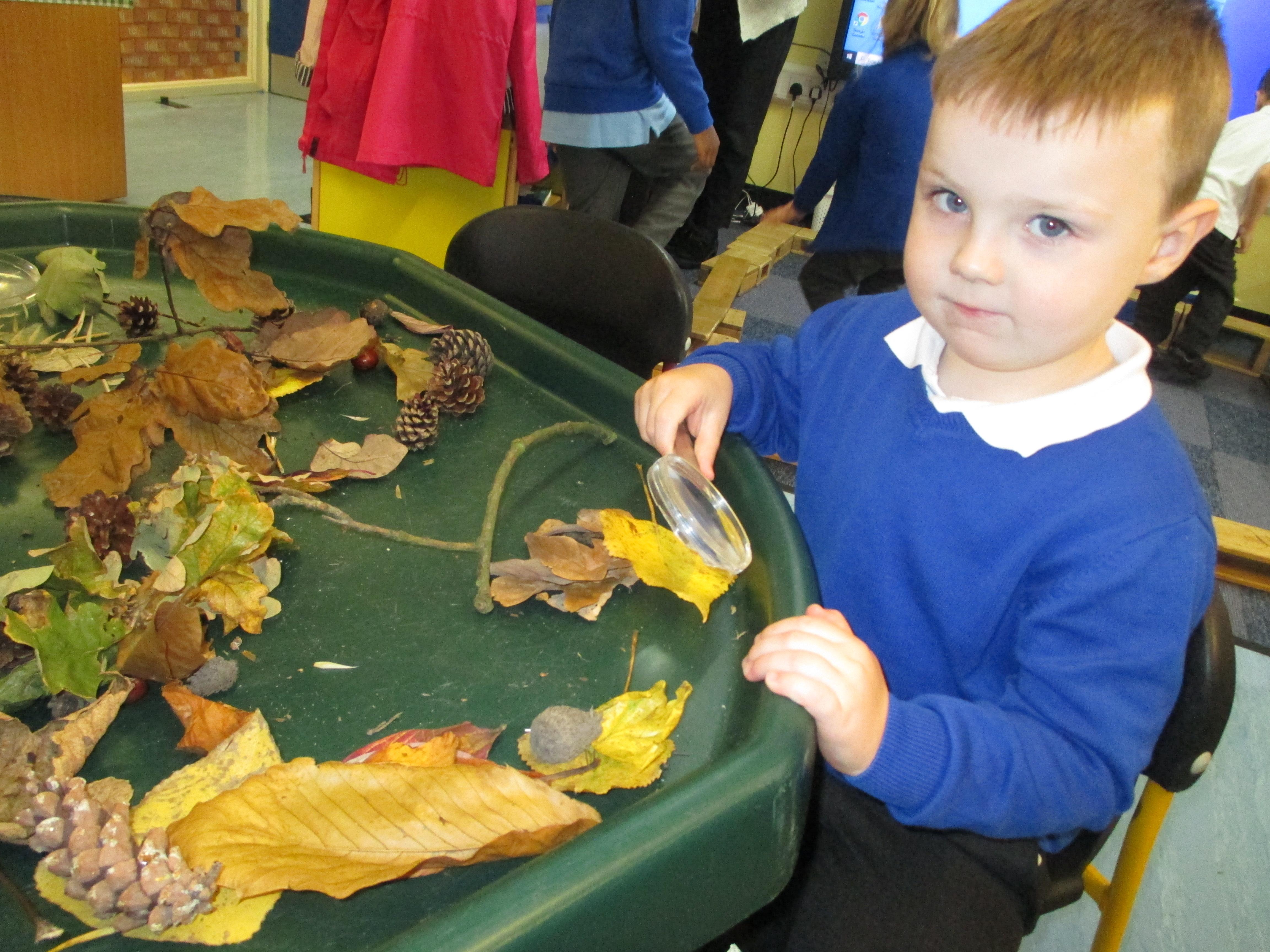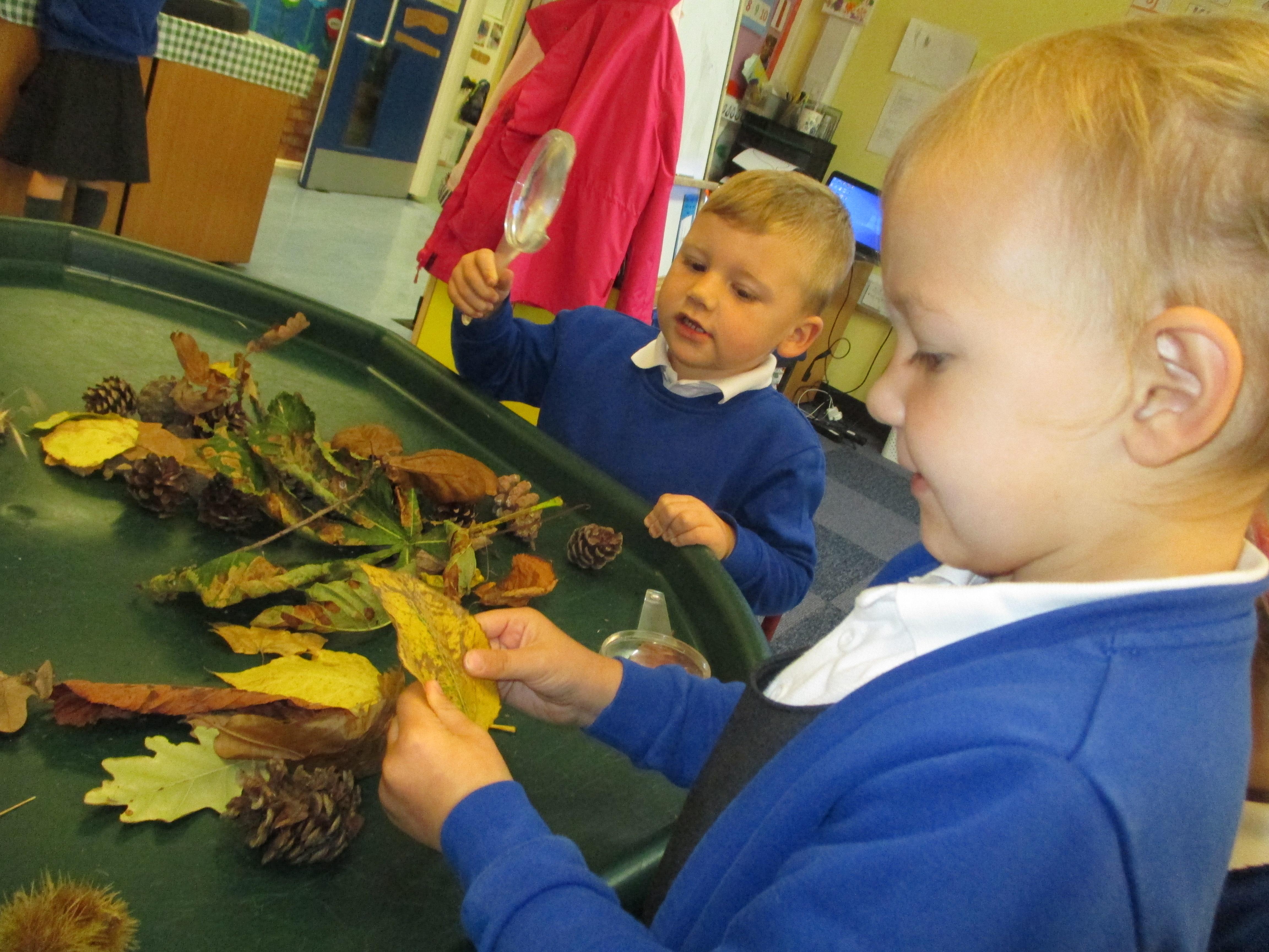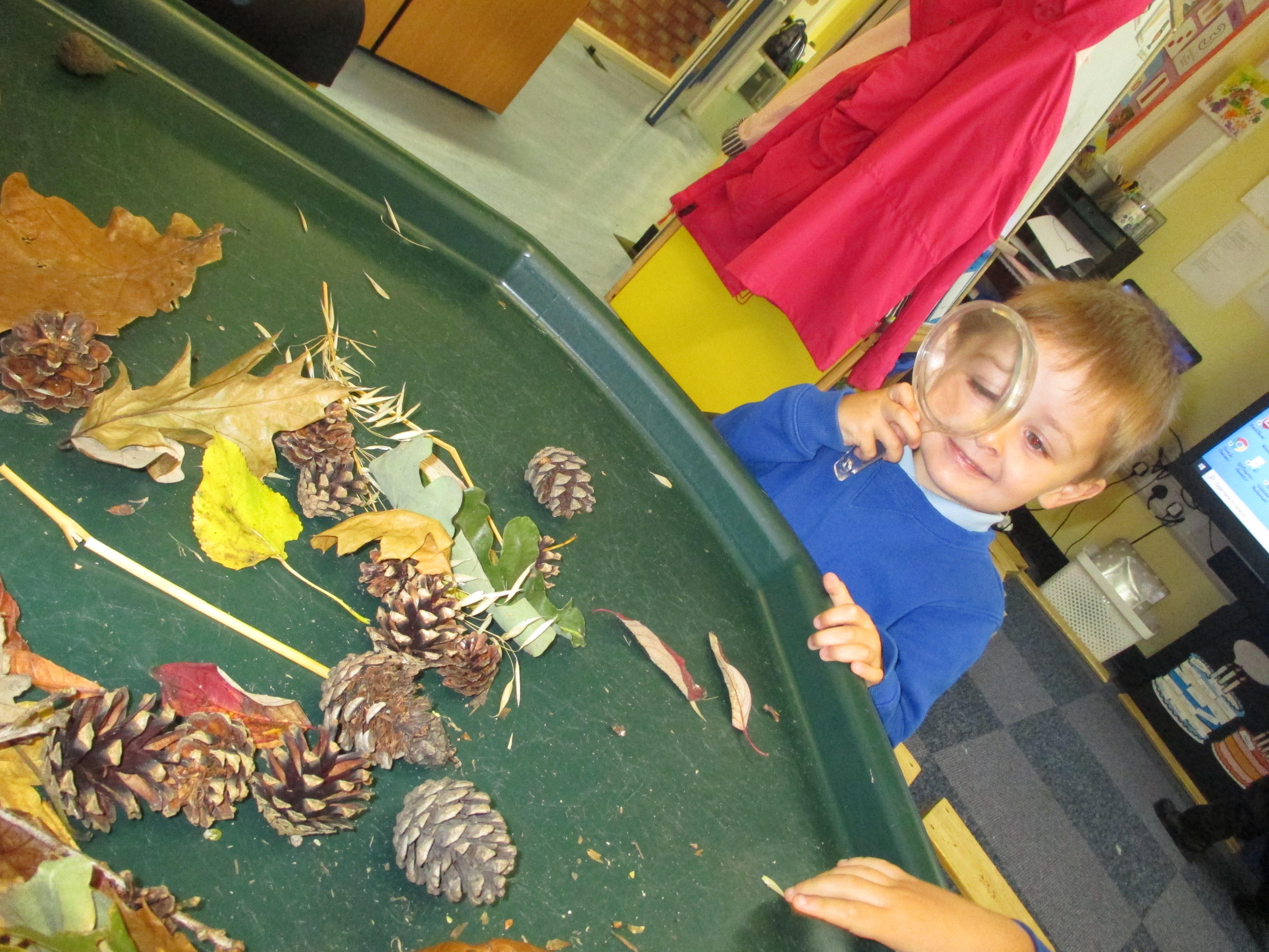 We explored our school grounds to observe the seasonal changes that are taking place now Autumn is here. We named and described the objects that we found and displayed these in our classroom.