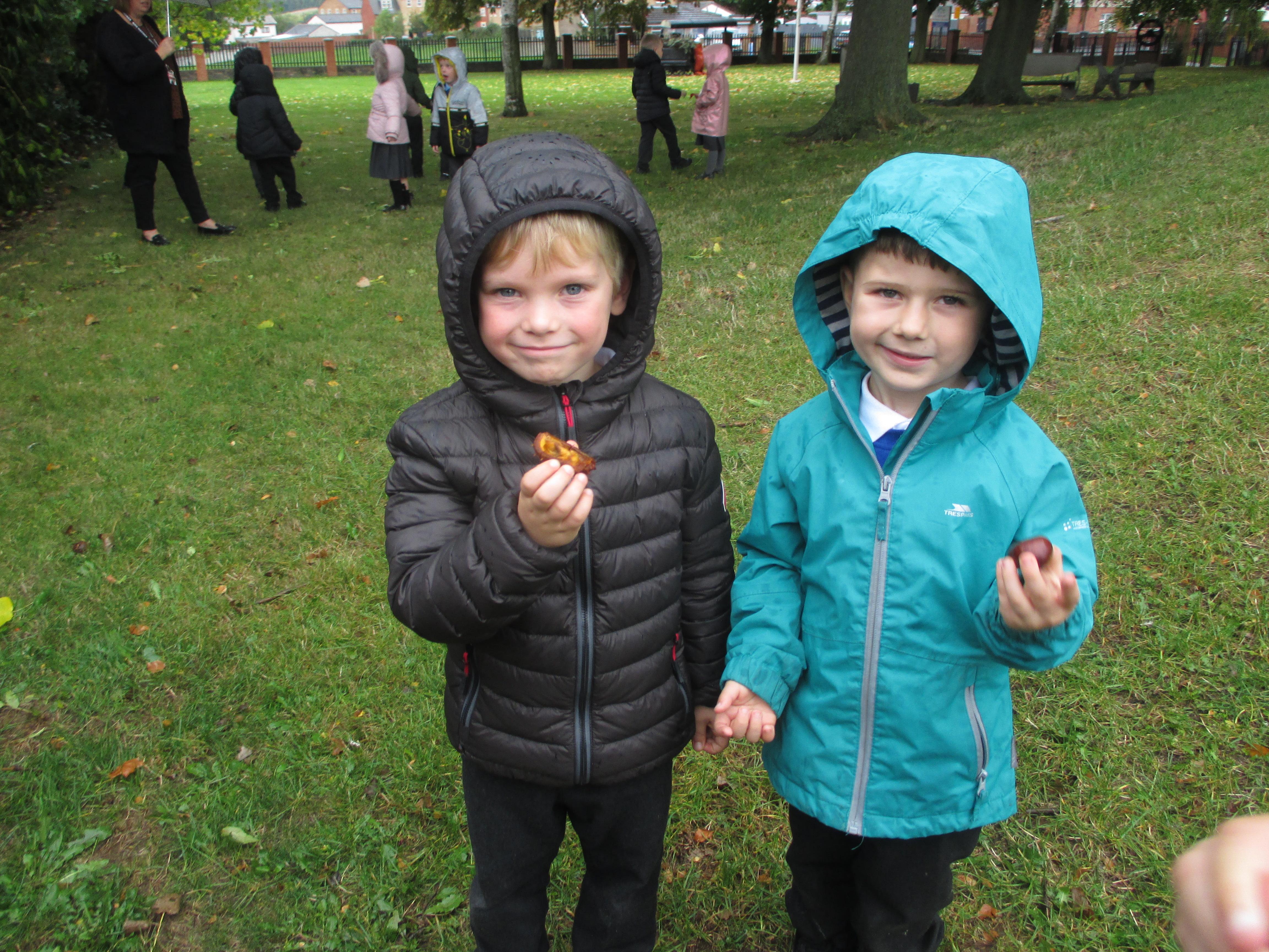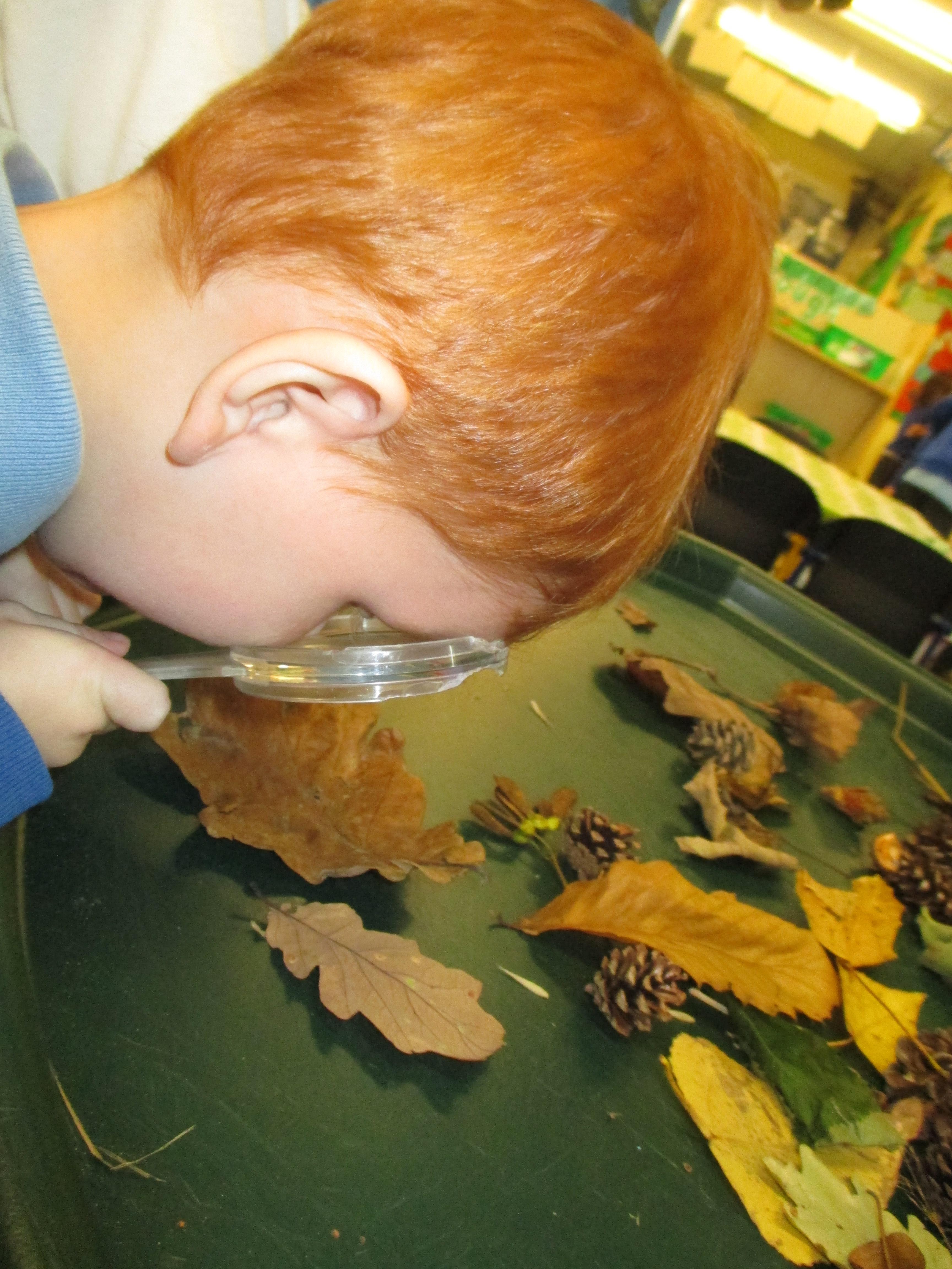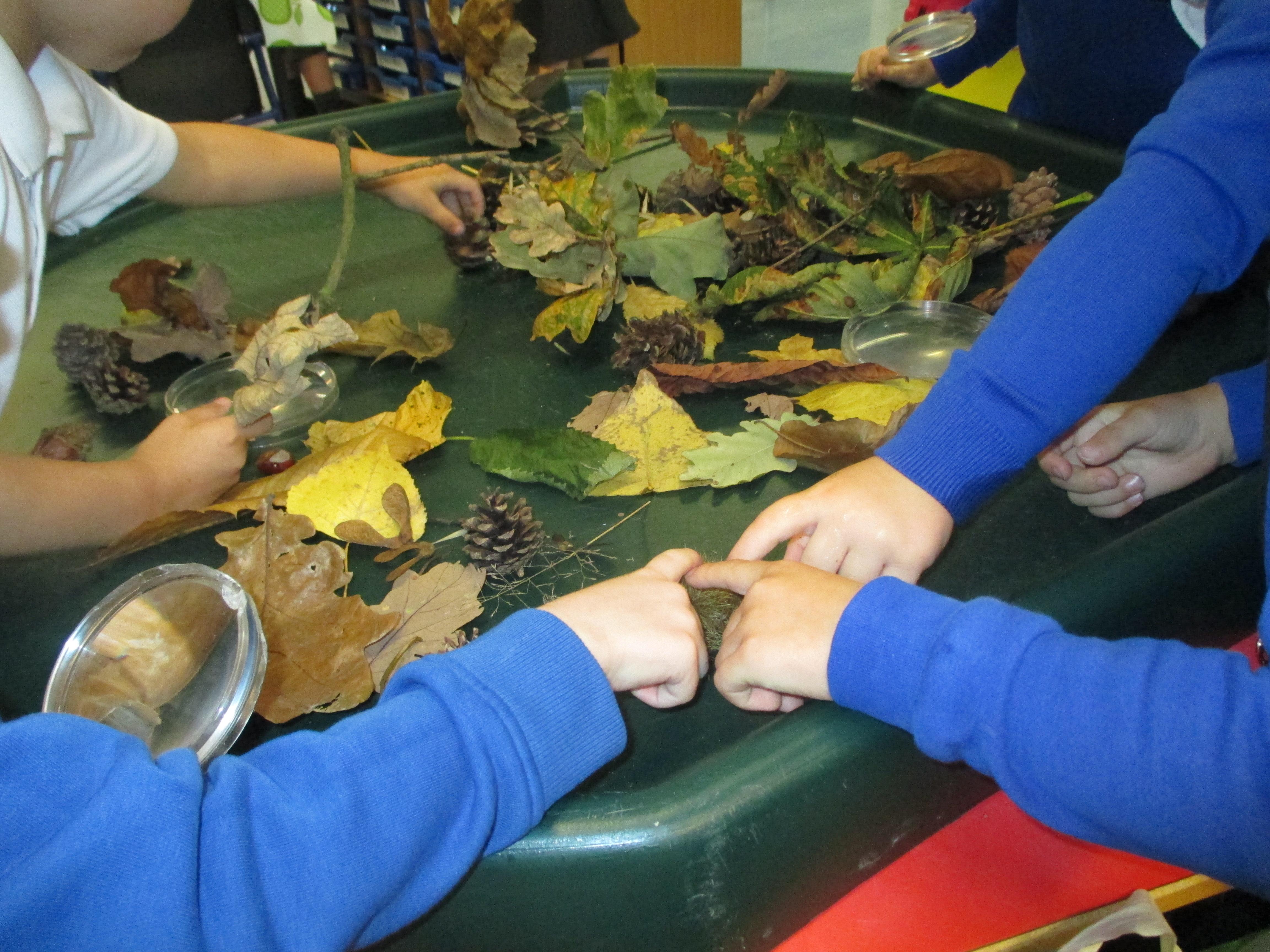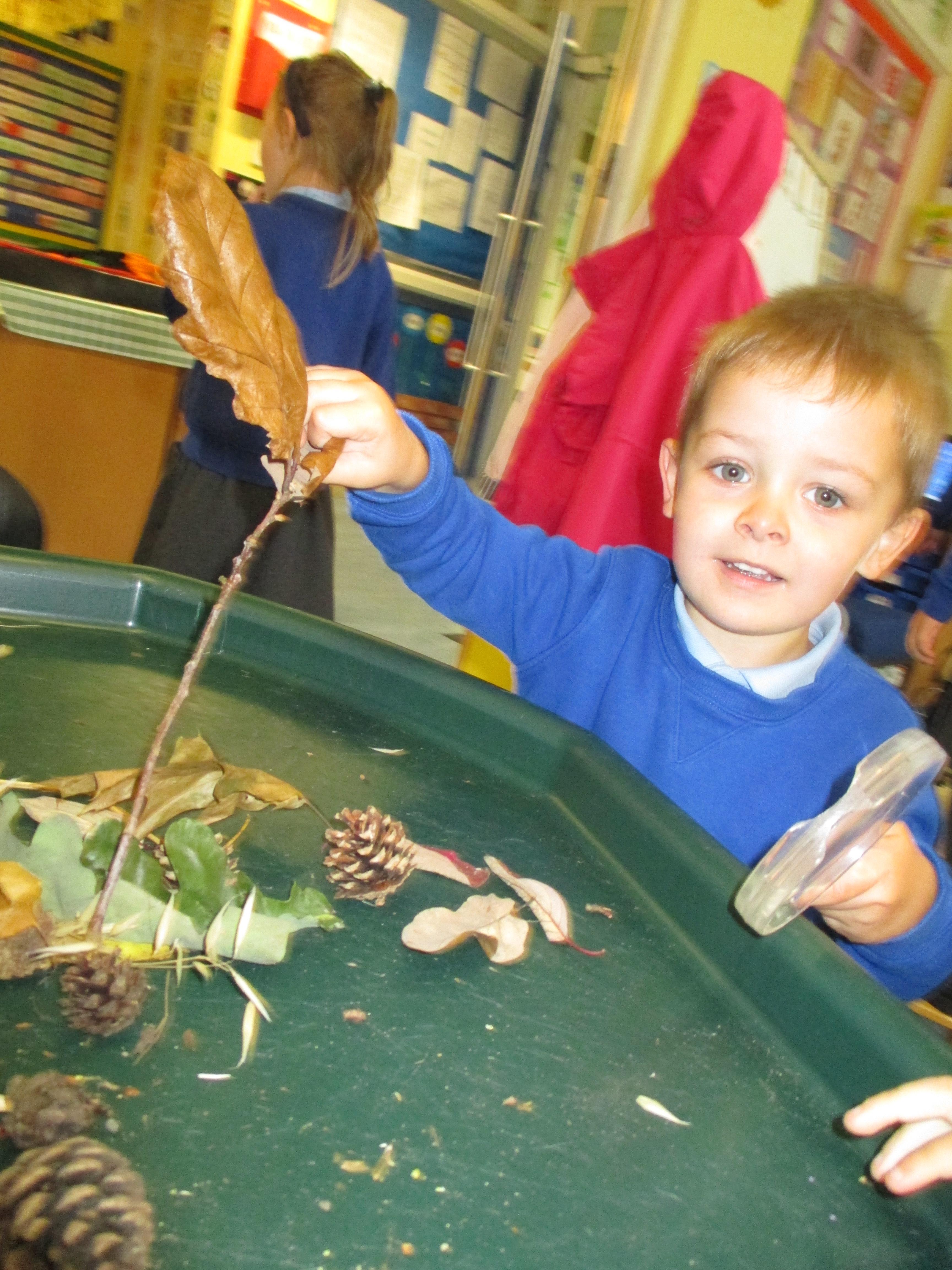We explored our school grounds to observe the seasonal changes that are taking place now Autumn is here. We named and described the objects that we found and displayed these in our classroom.