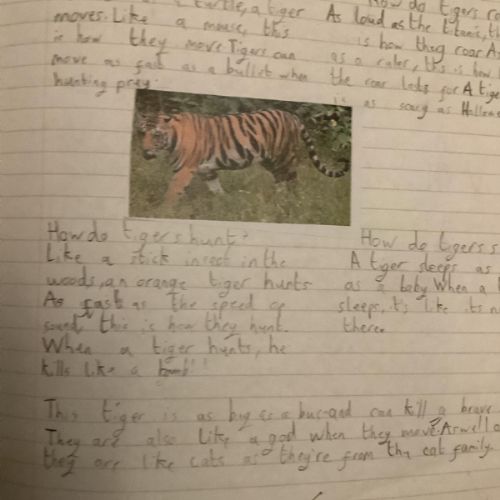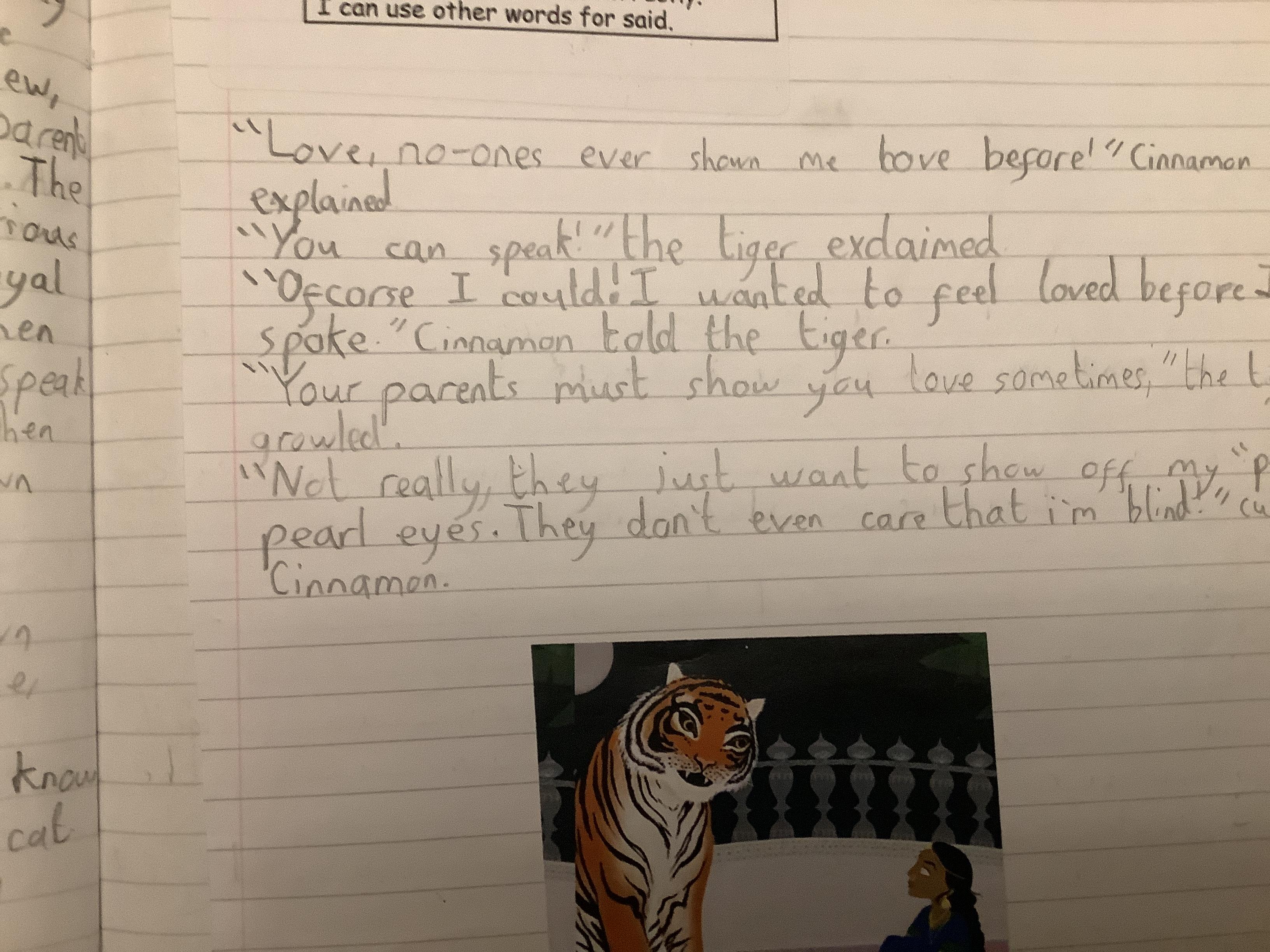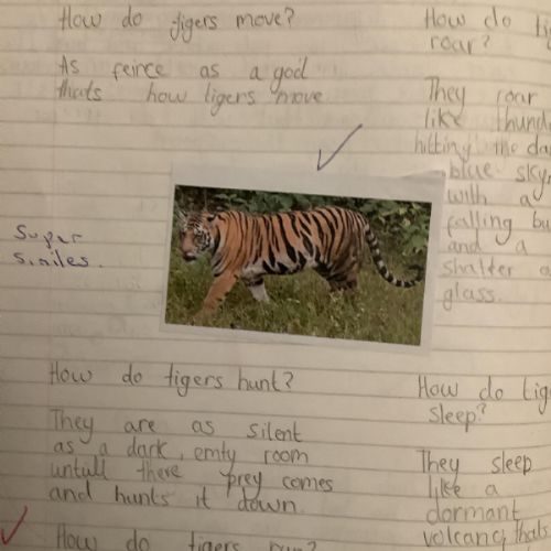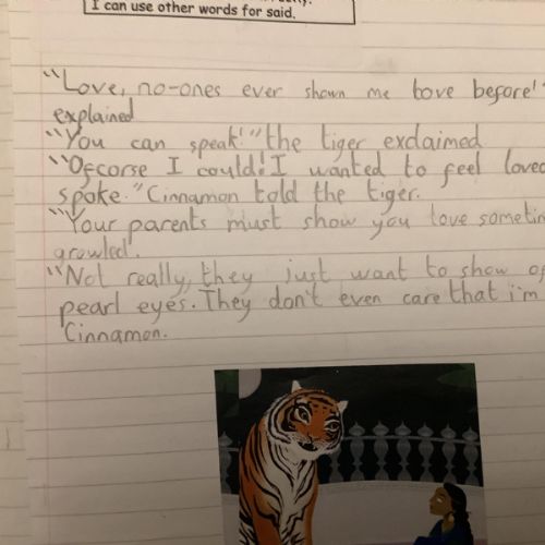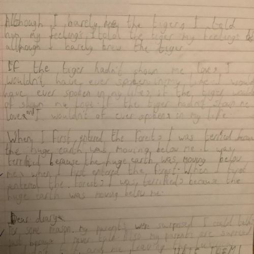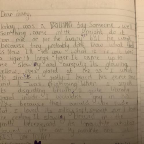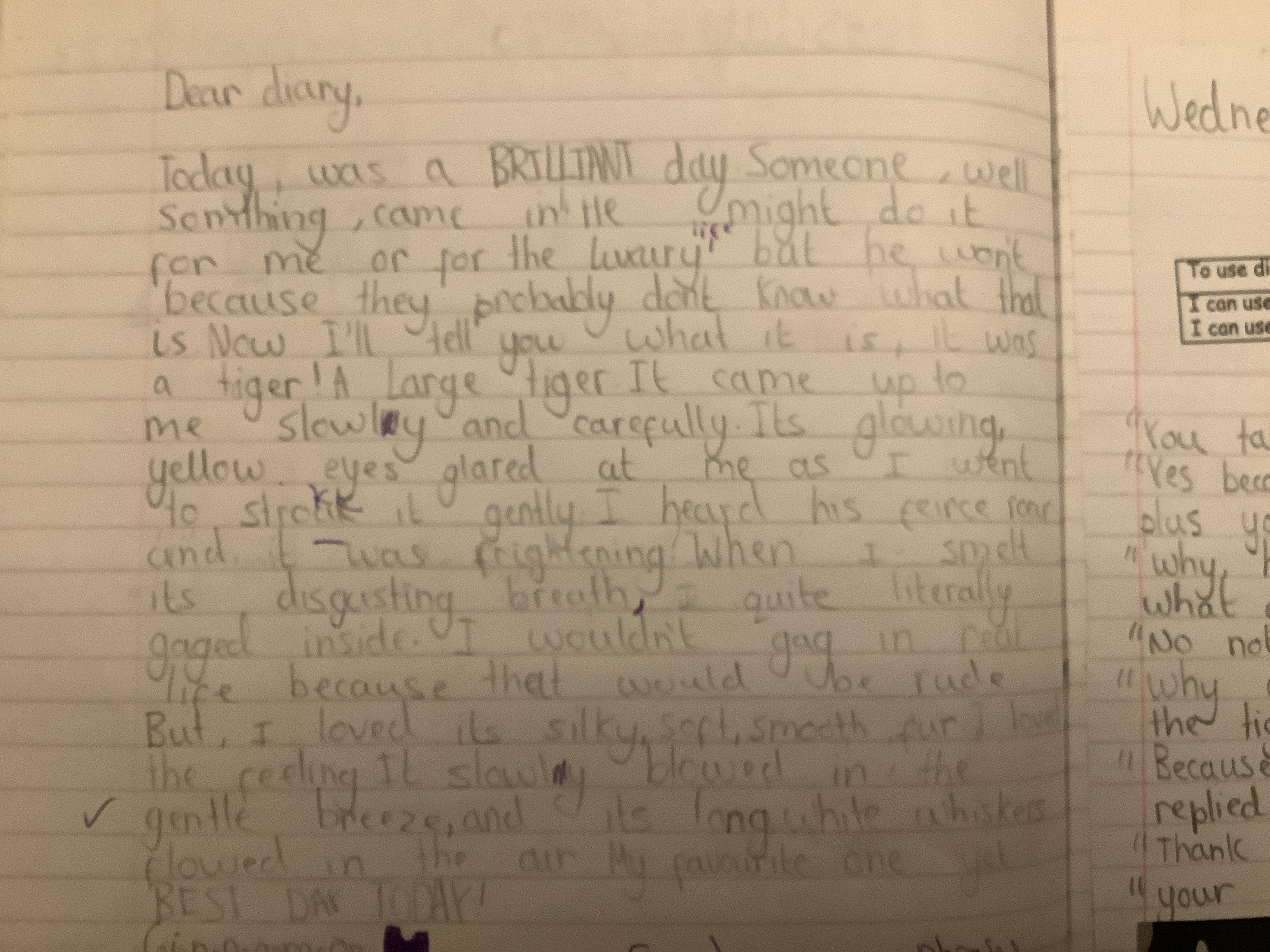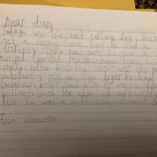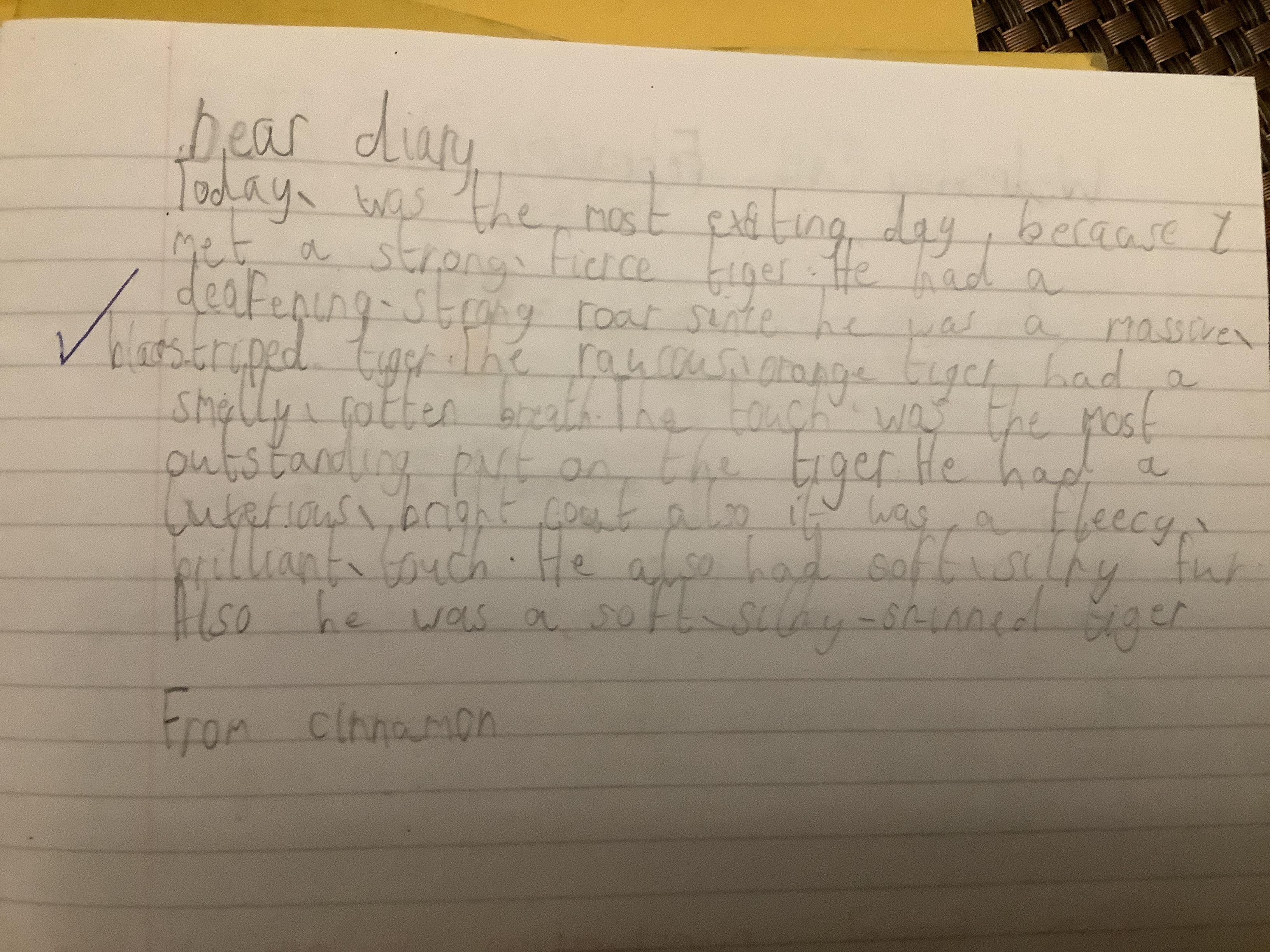 Then we met the tiger and wrote Cinnamon's diary to explain how we were feeling.