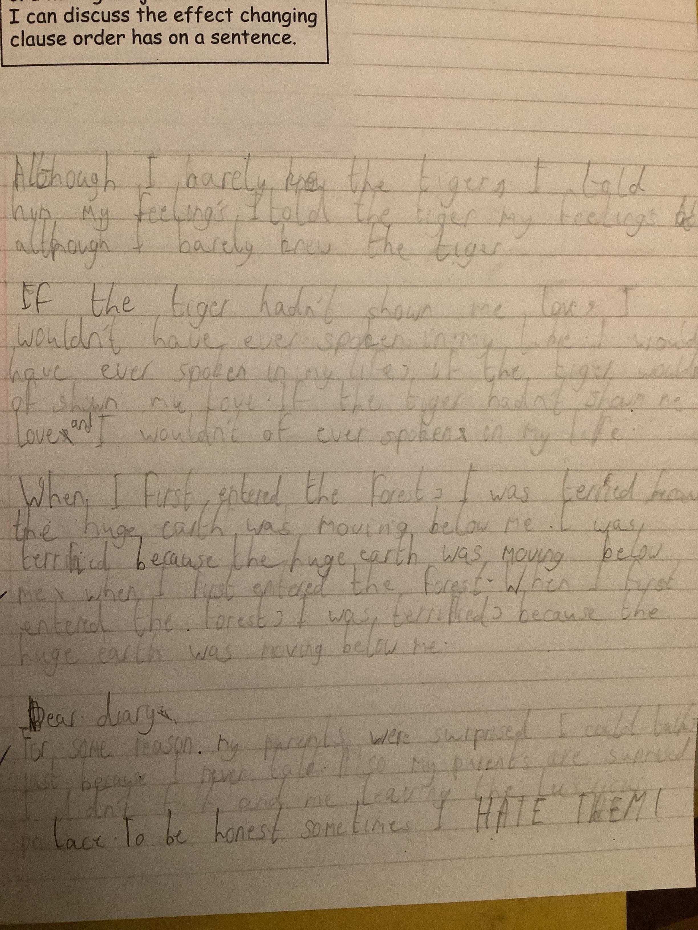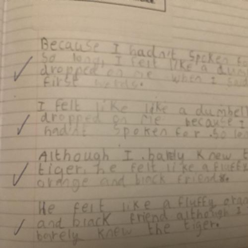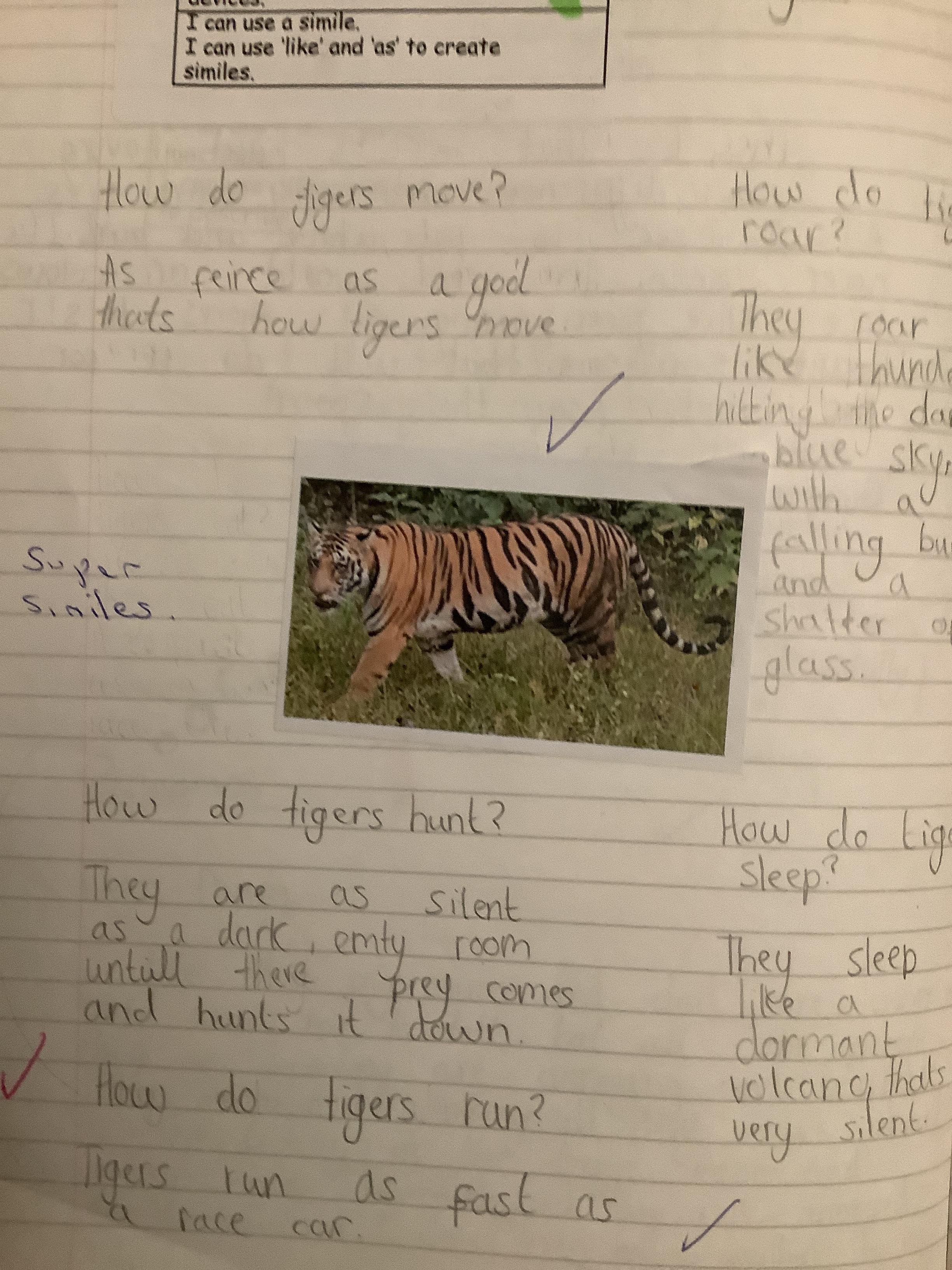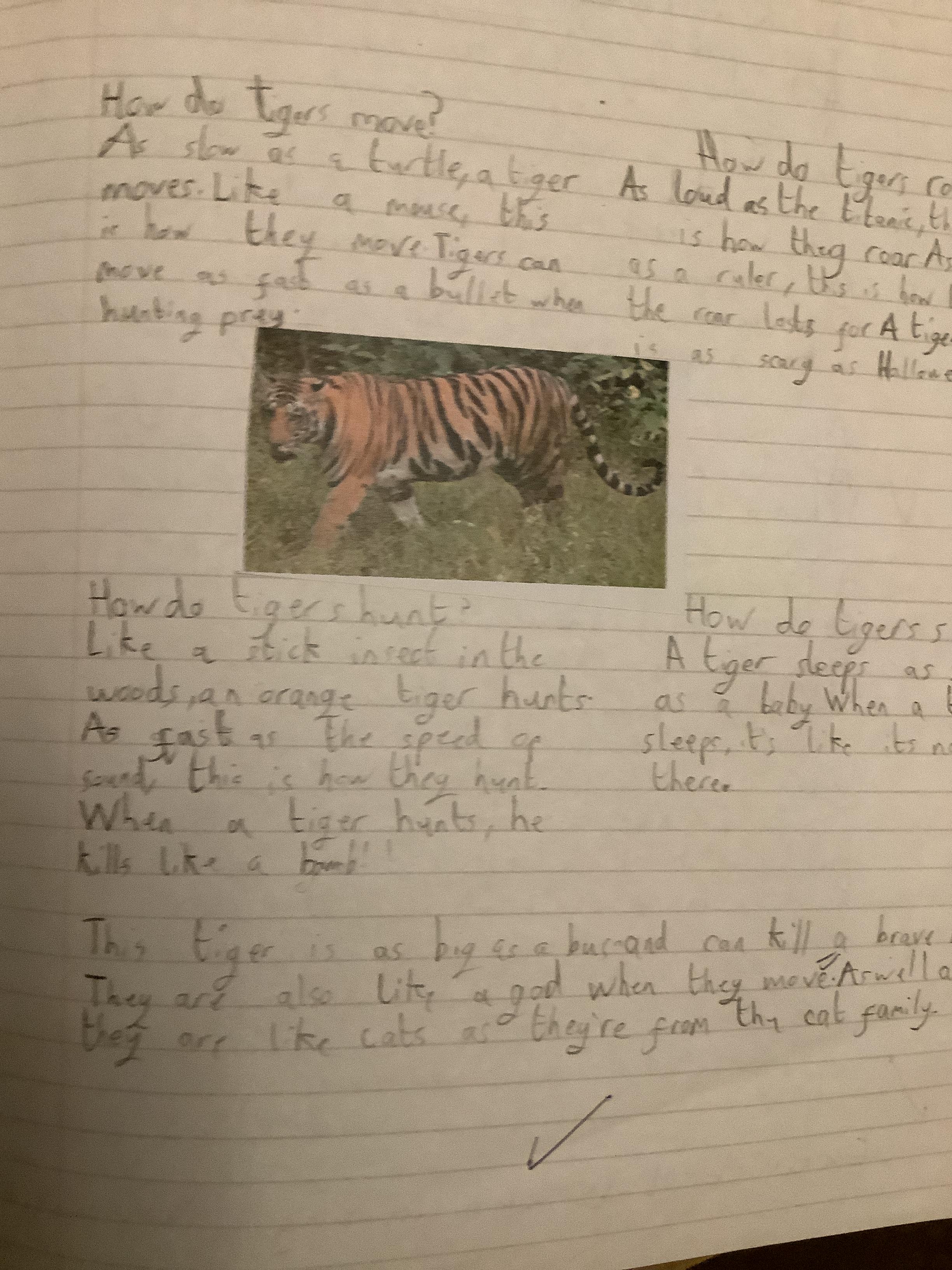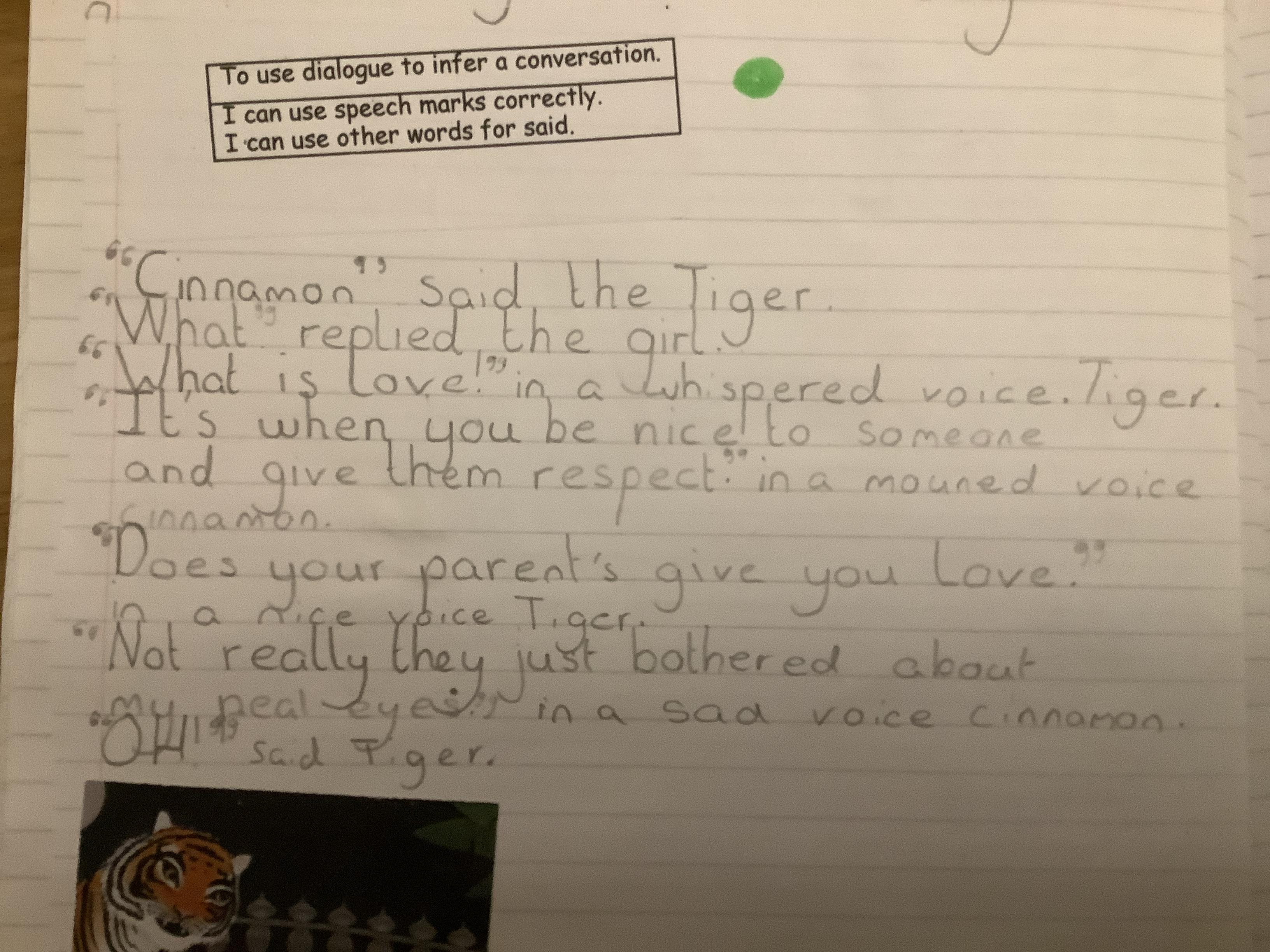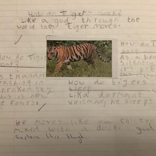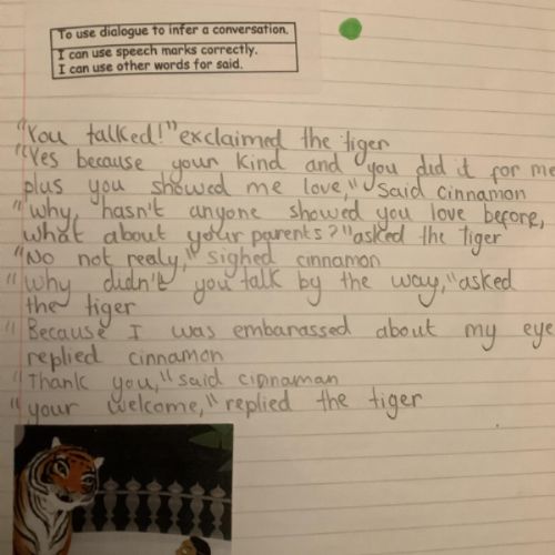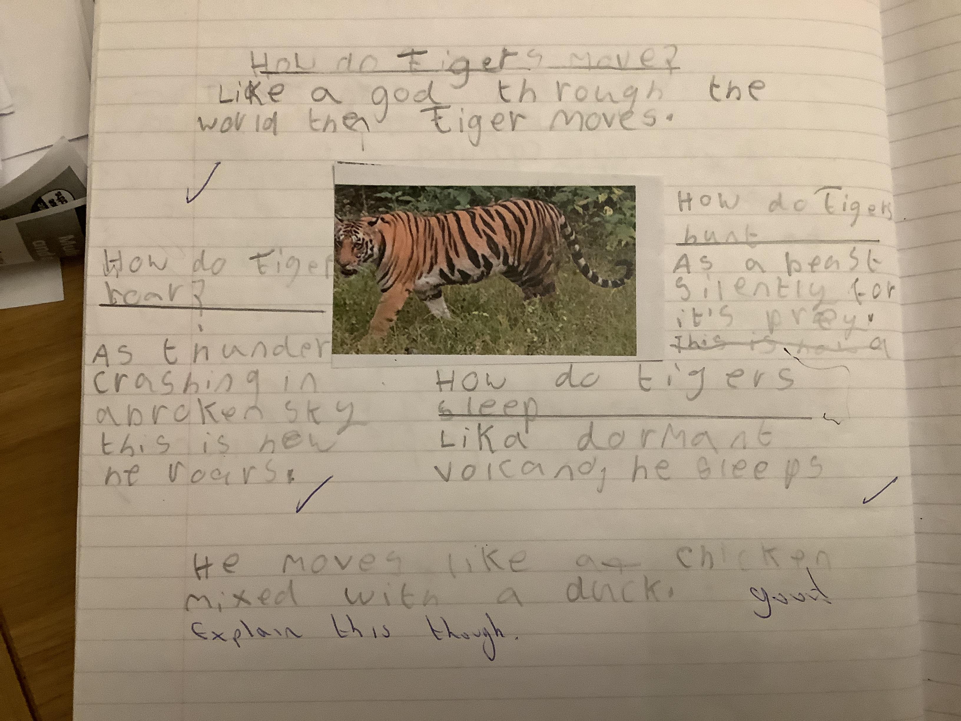 Then we met the tiger and wrote Cinnamon's diary to explain how we were feeling.
