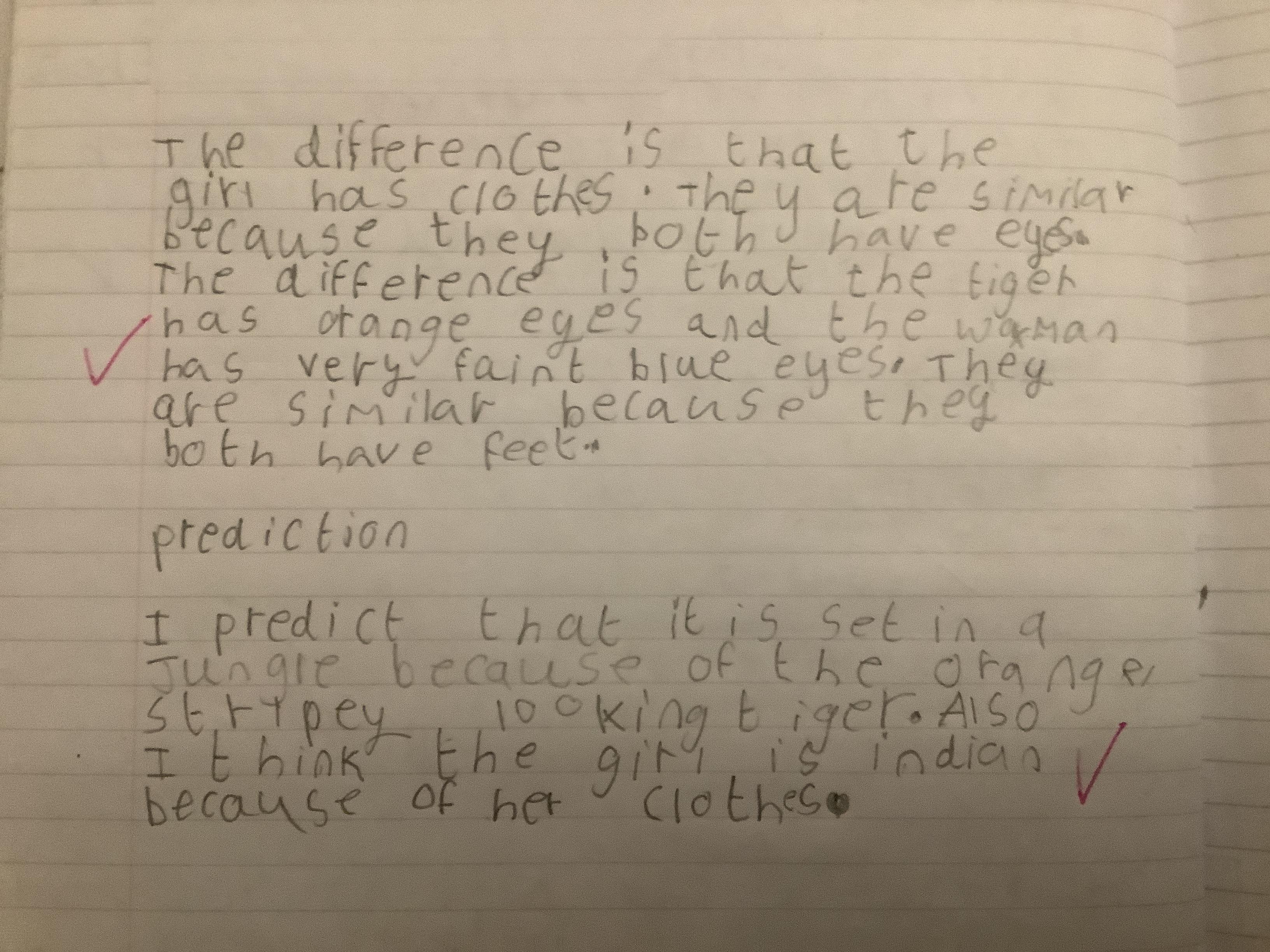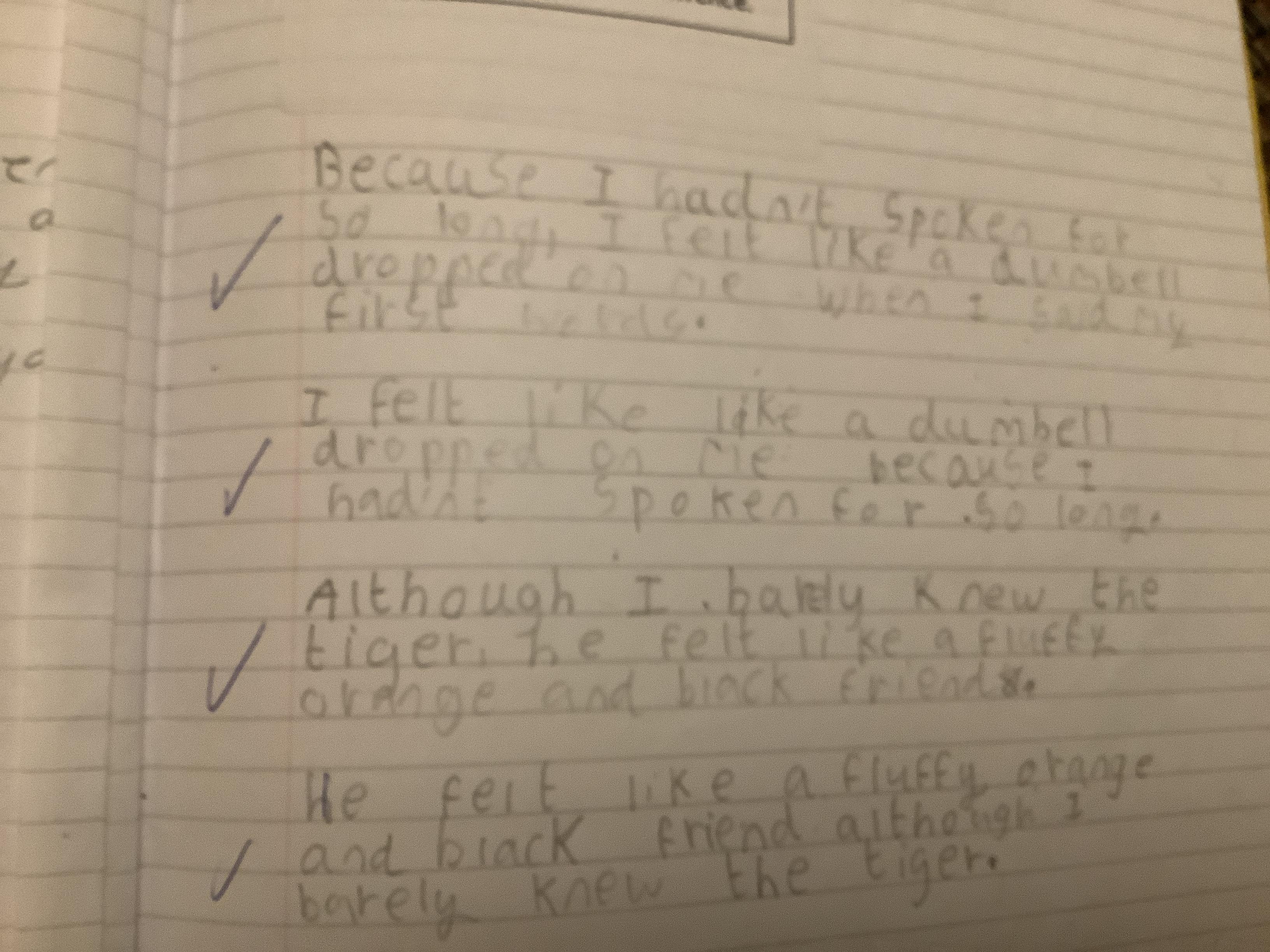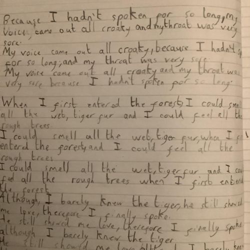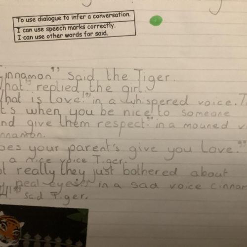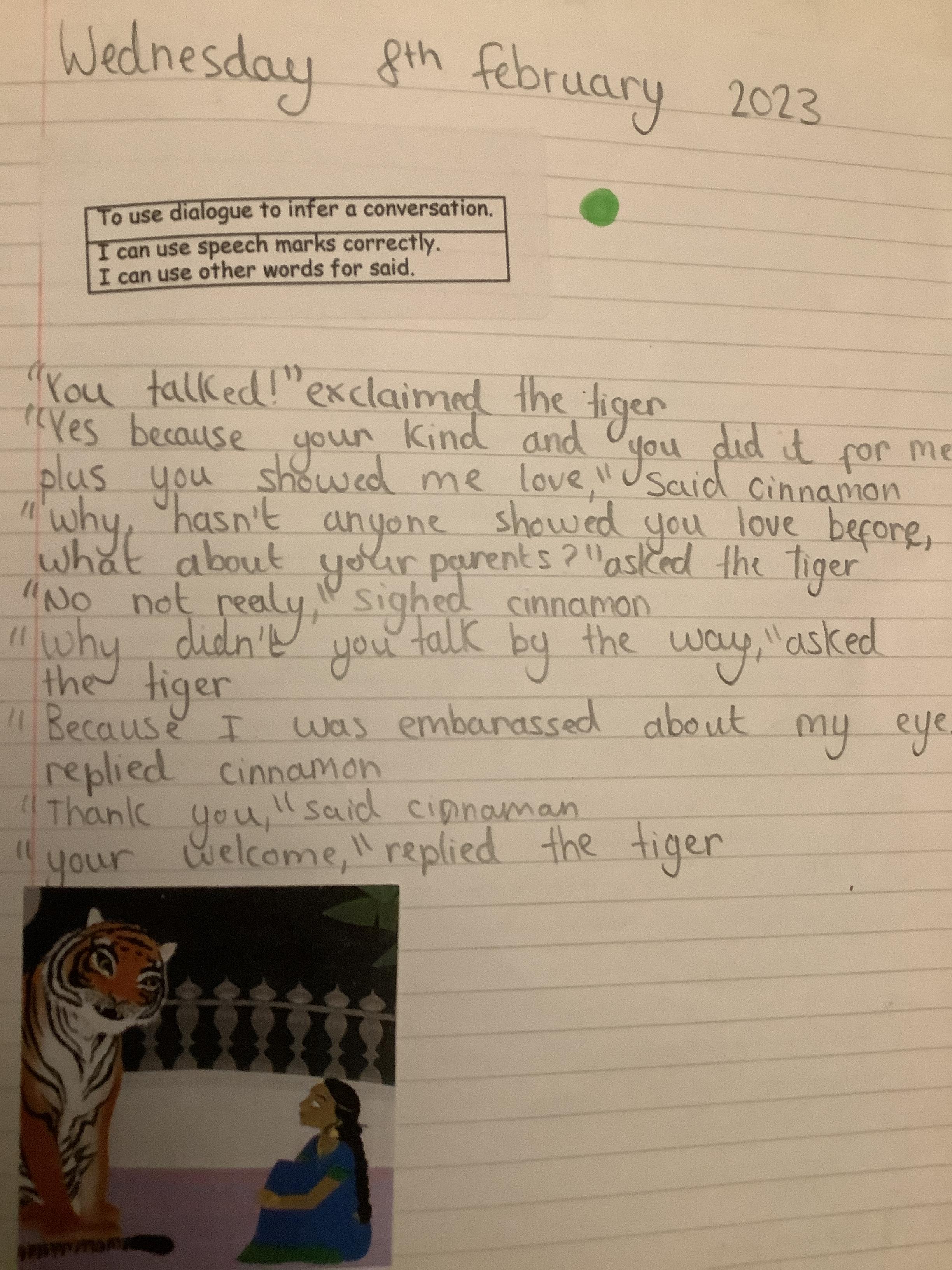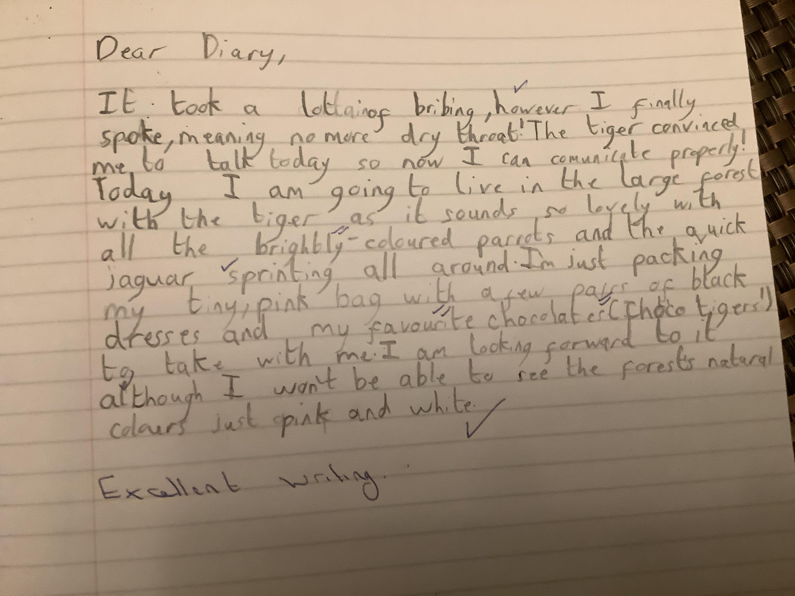 Then we met the tiger and wrote Cinnamon's diary to explain how we were feeling.