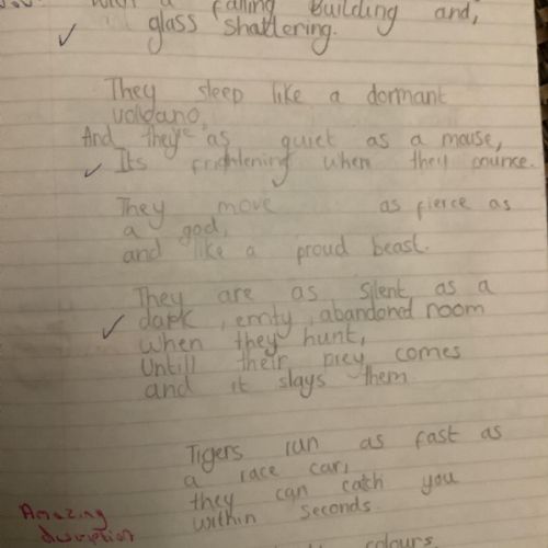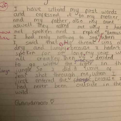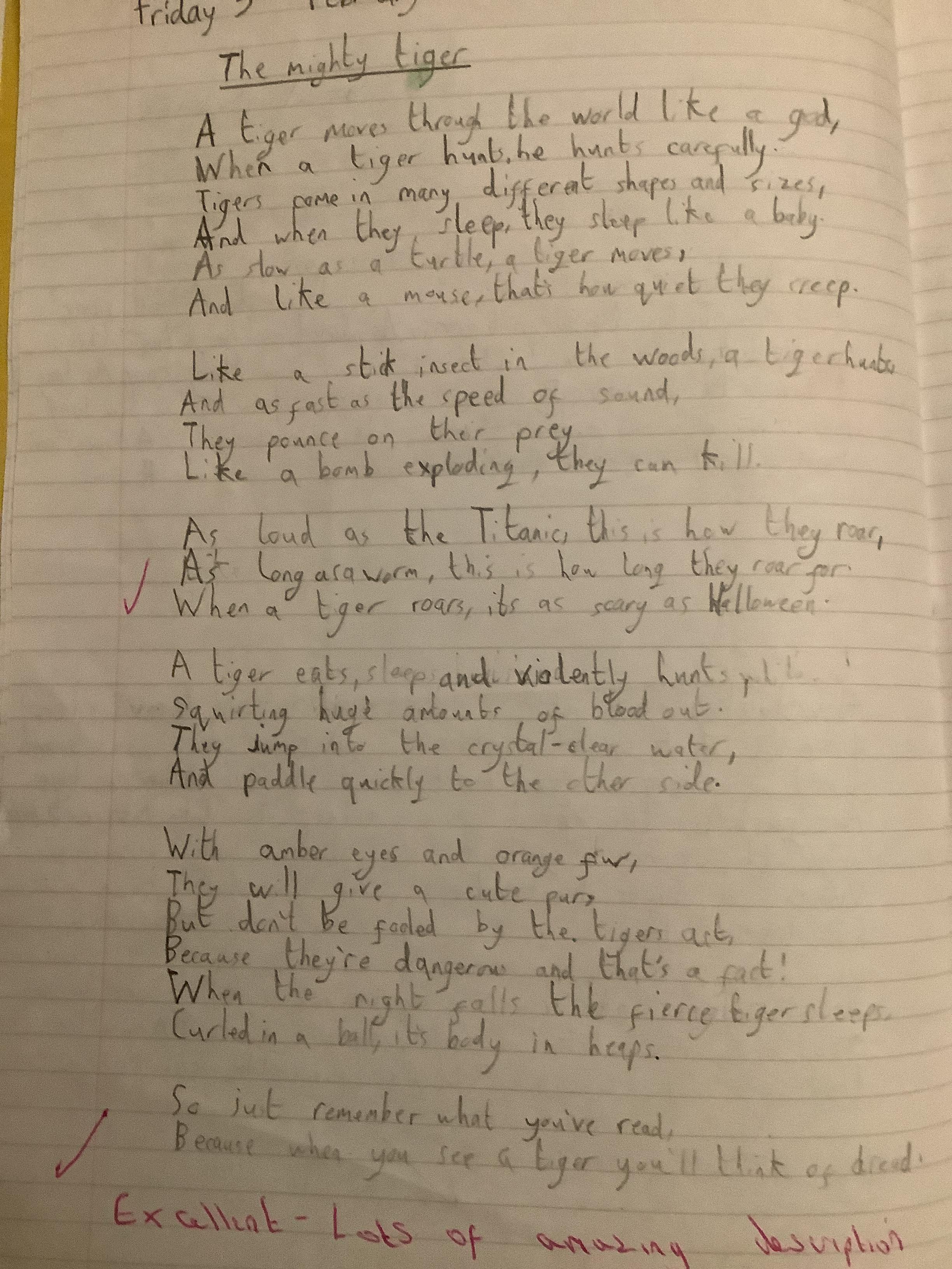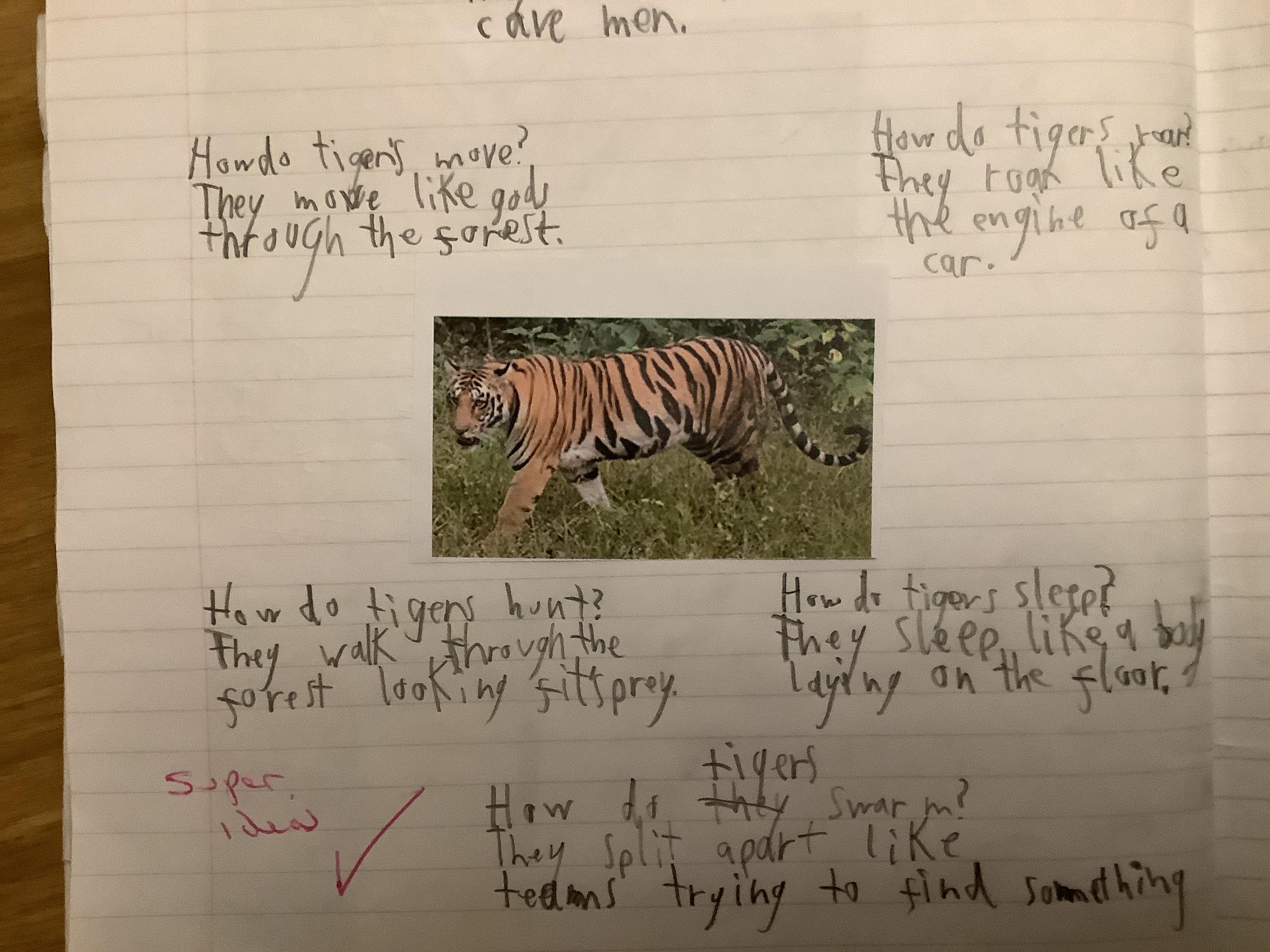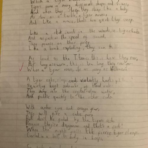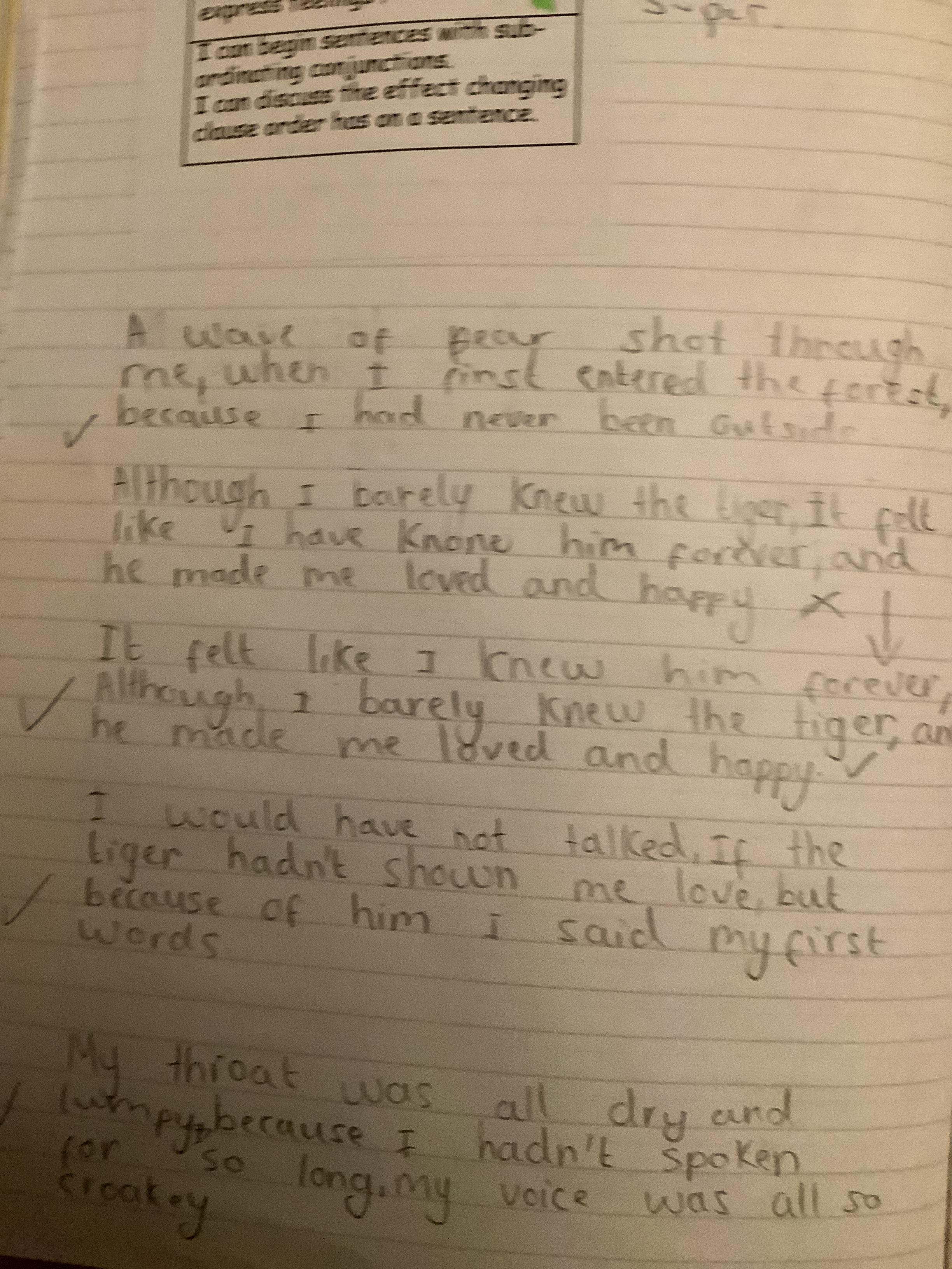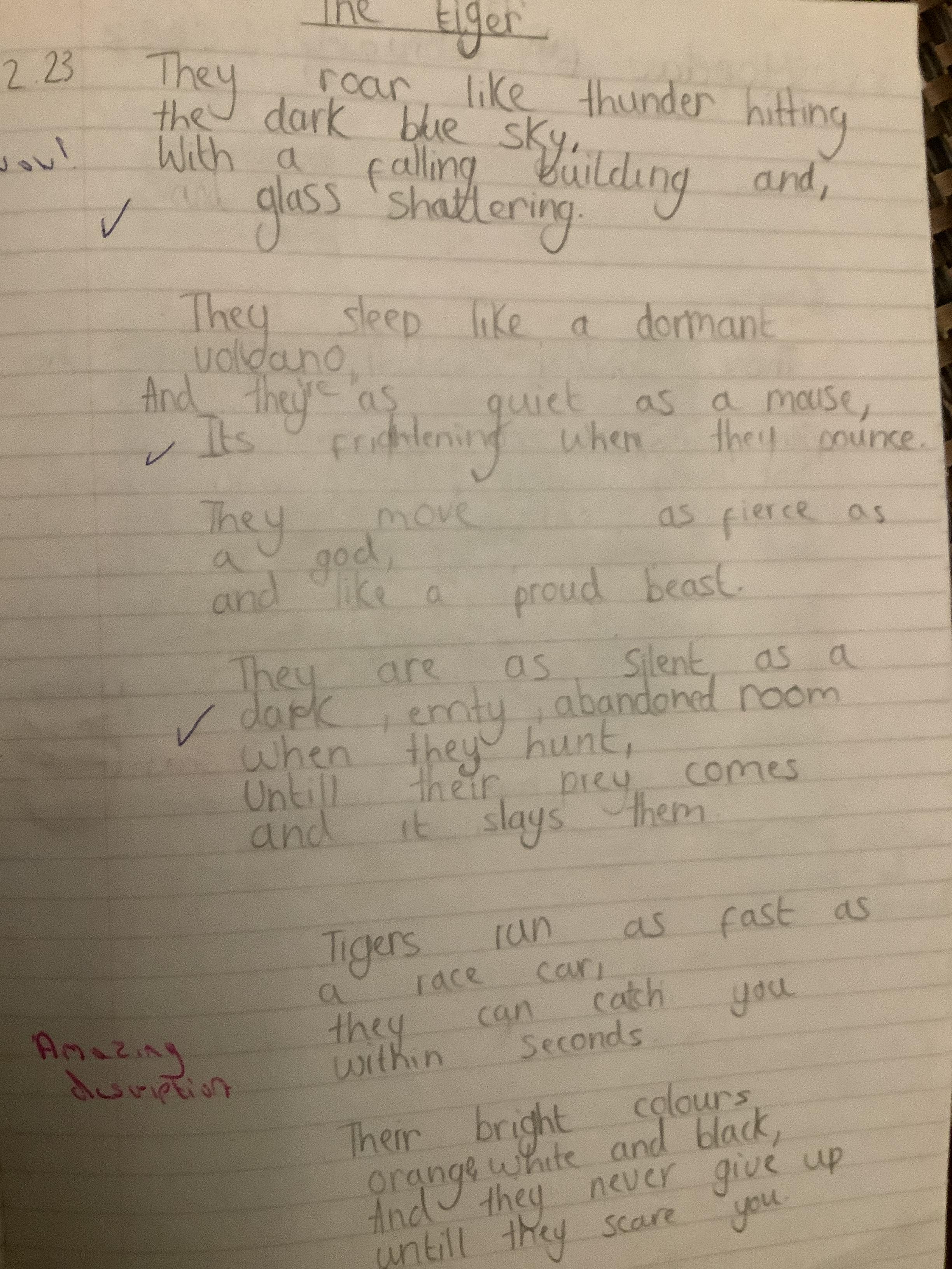 Then we met the tiger and wrote Cinnamon's diary to explain how we were feeling.