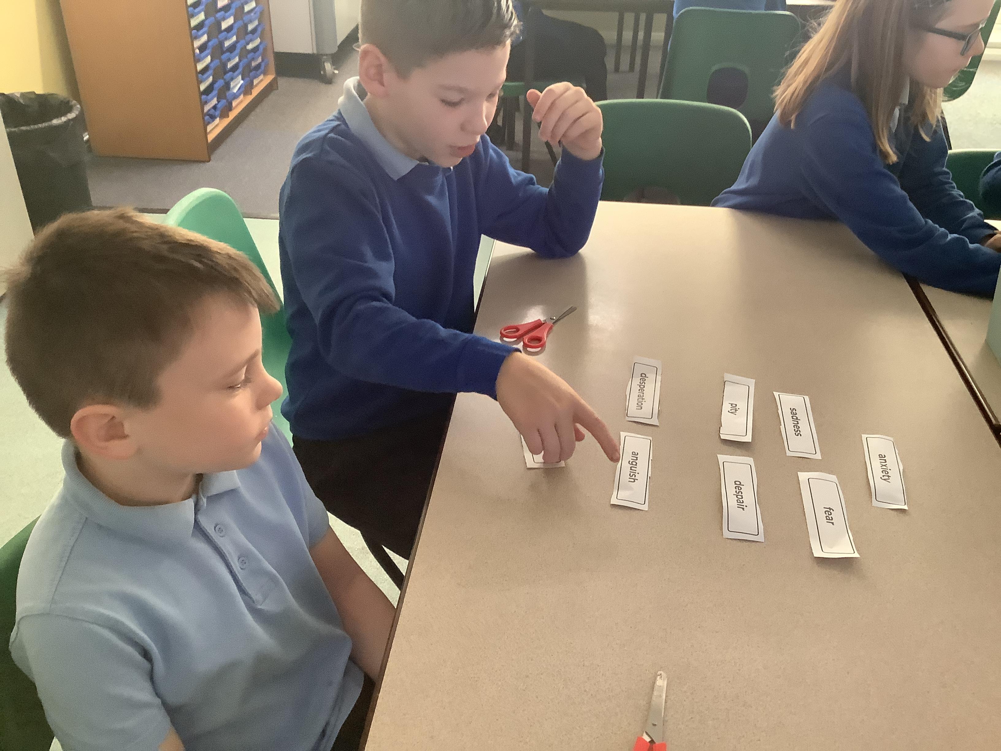 Then we looked at the feelings that the characters in the story might have and tried to extend our vocabulary of these words.