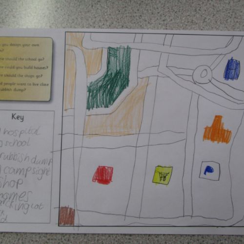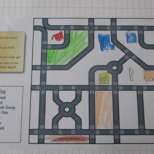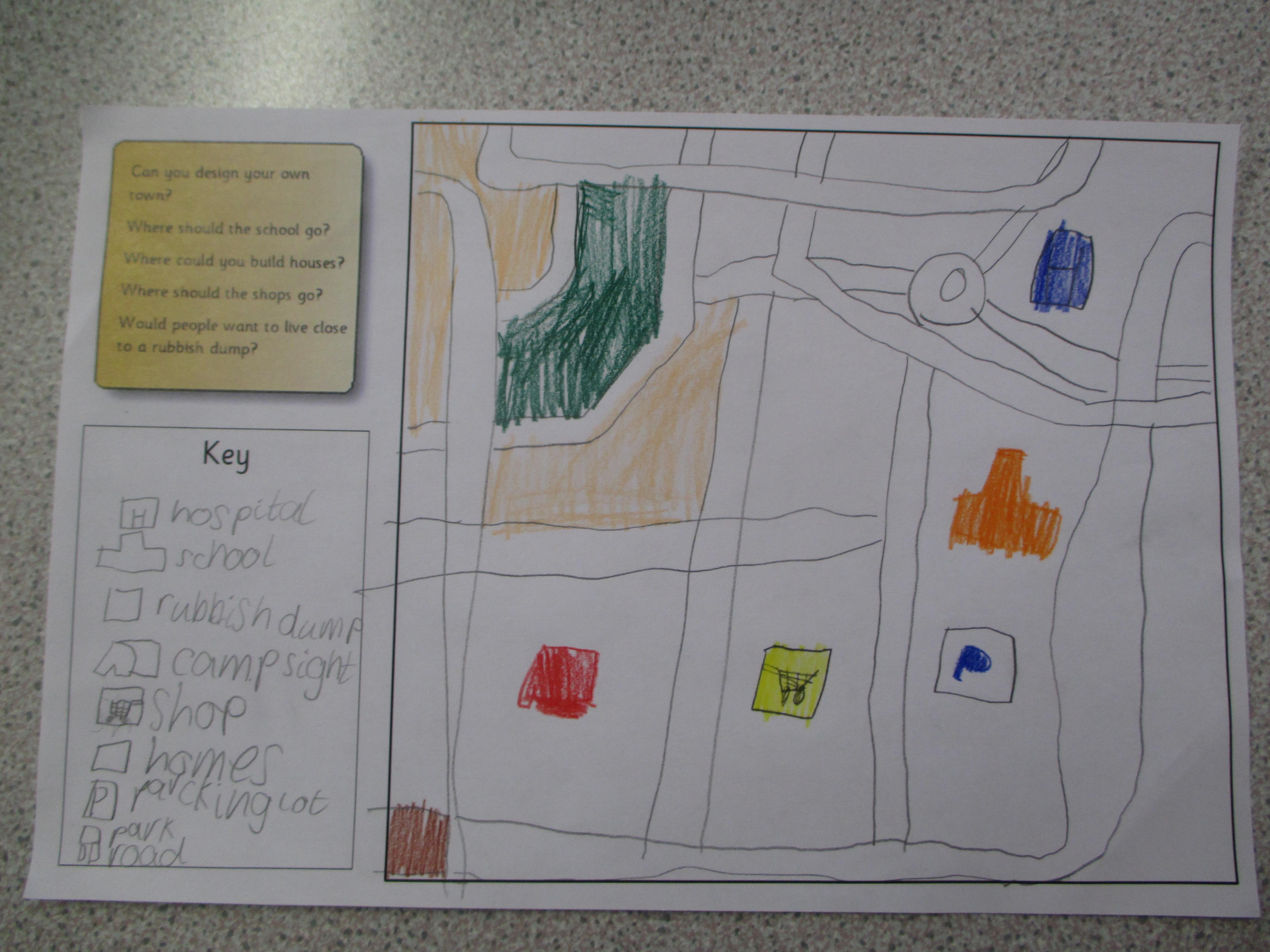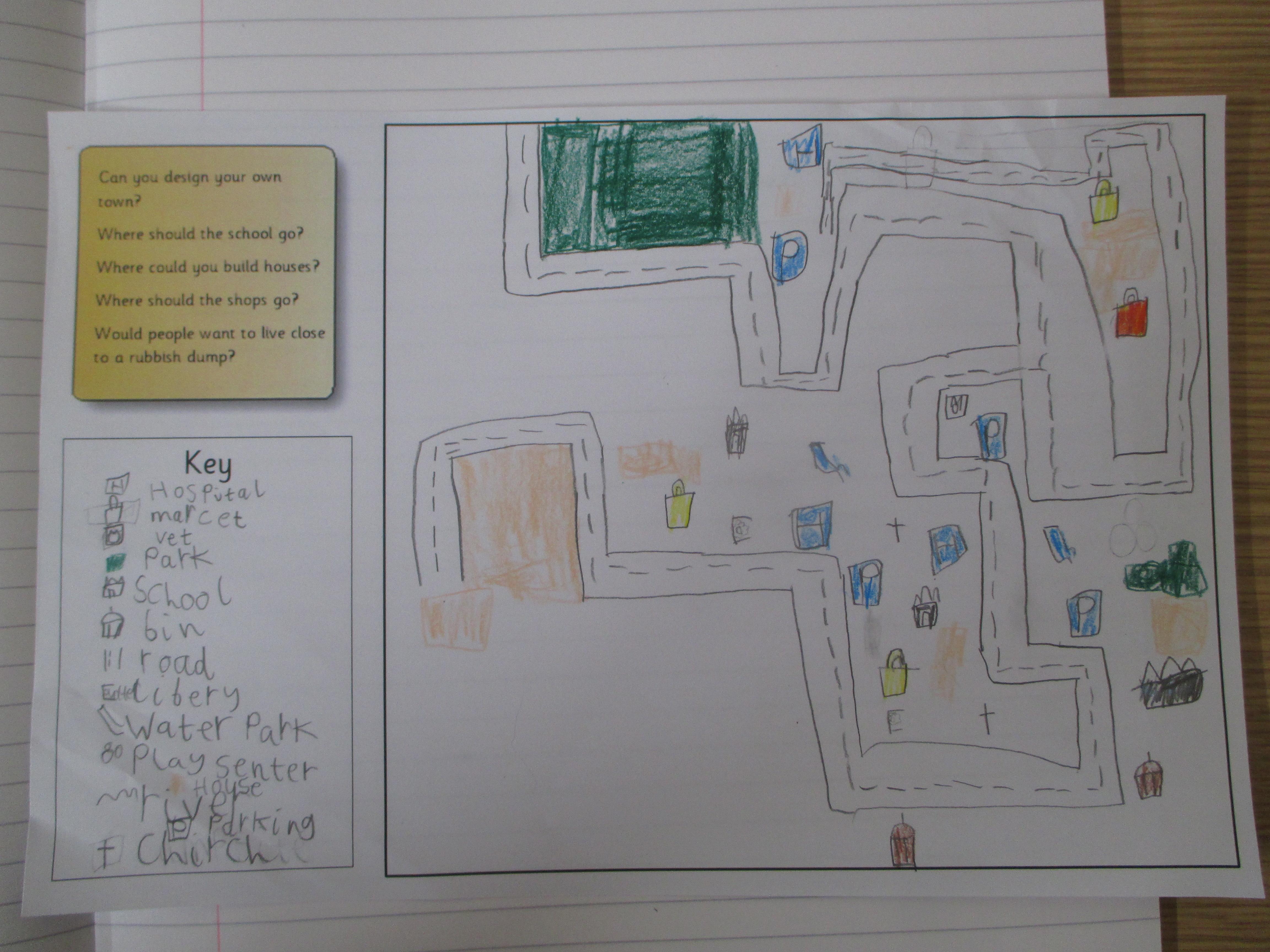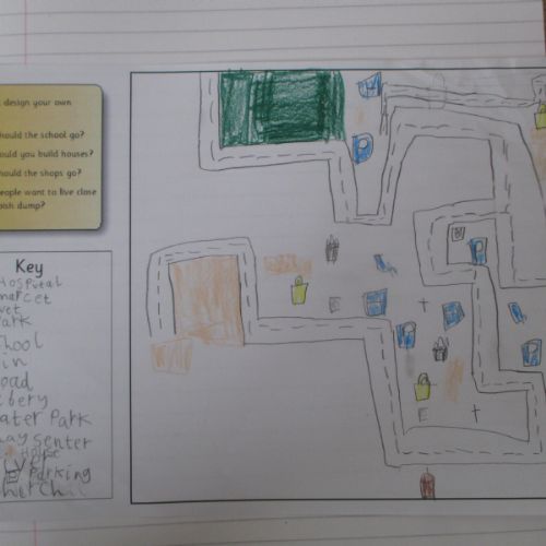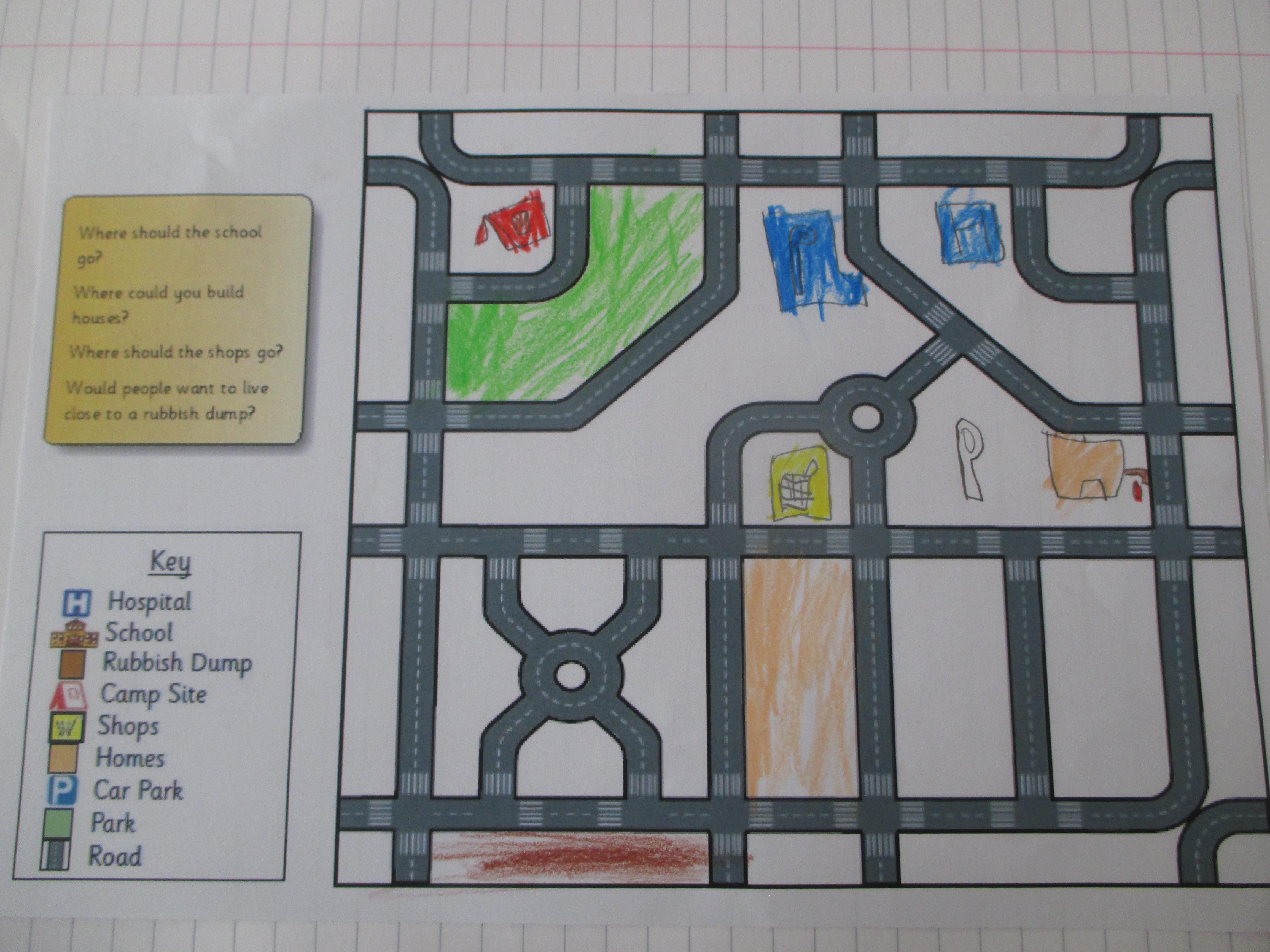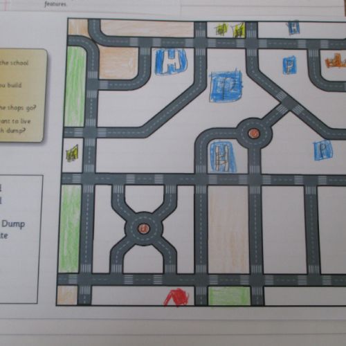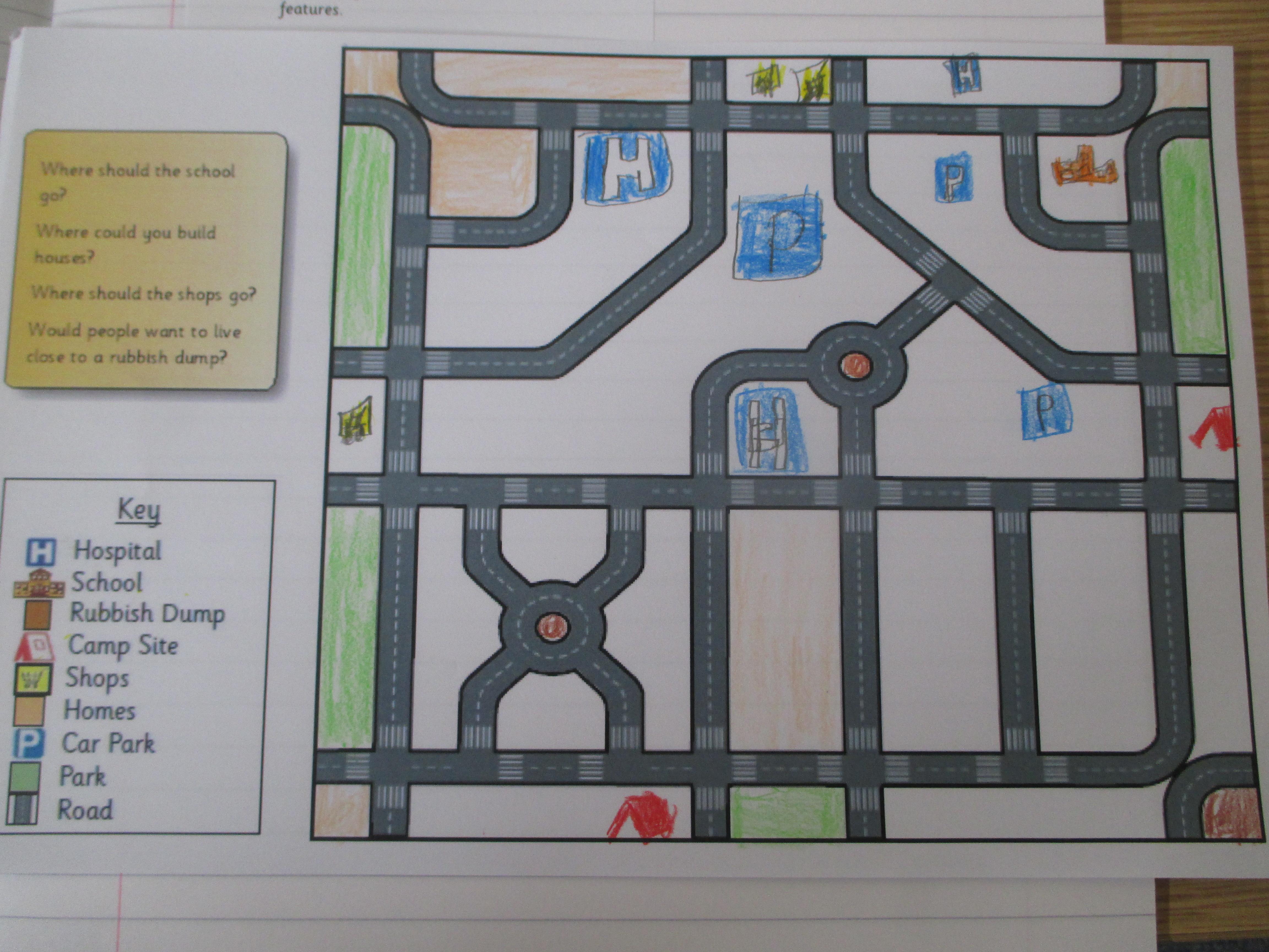 Maps are made up of human and natural features.  We learnt that a human feature is something that is man-made, such as buildings and roads, and a natural feature is something that has occurred naturally such as a river or mountain.  Today we designed a new town.  We had to think about where to put all the human features so that the residents would be happy.  We wanted it to be a great place to live.