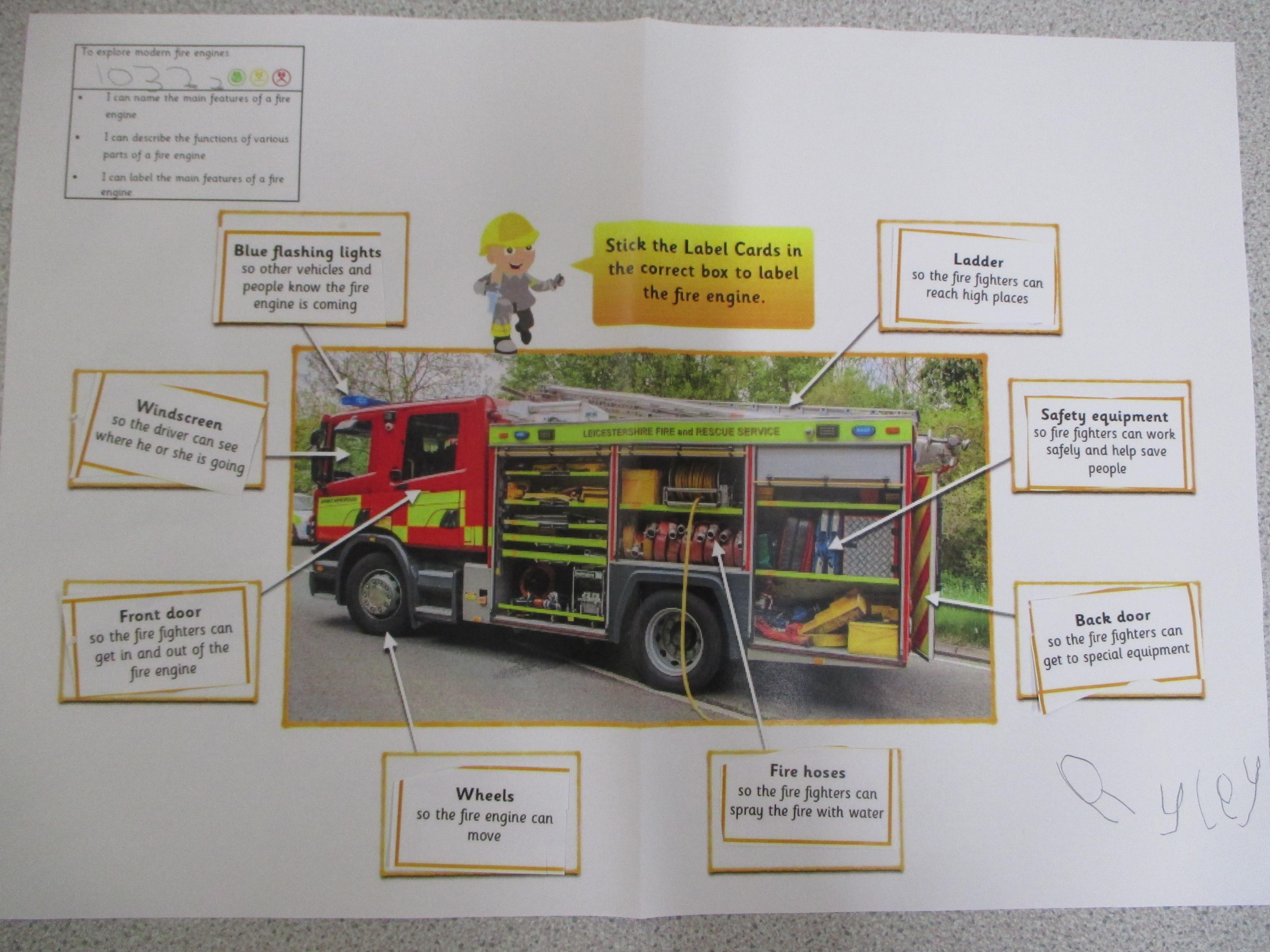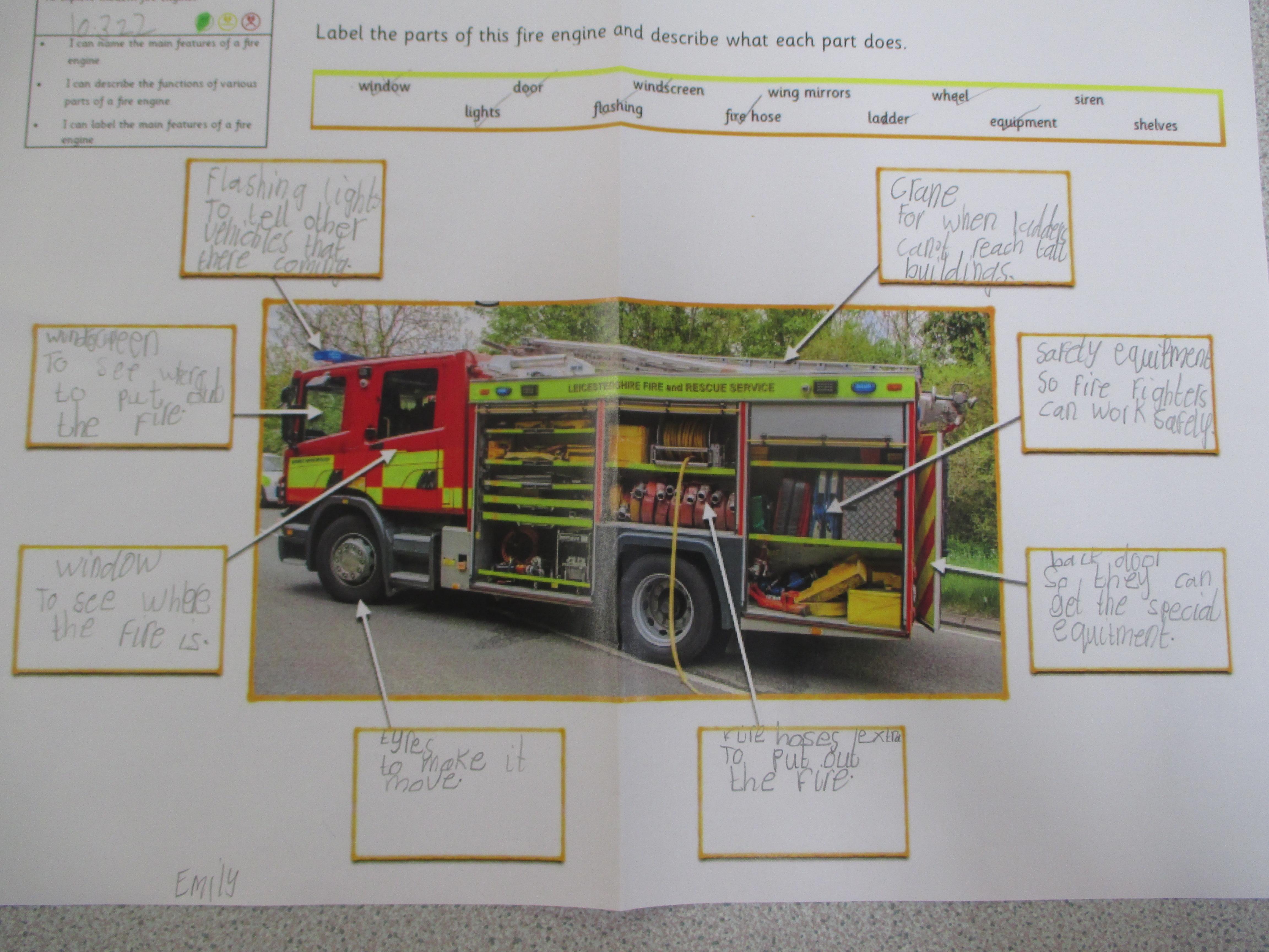 We explored modern fire engines and their features, looking at what features are common to all vehicles and which are specific to fire engines. We also had a look at a 17th century fire engine to compare how they are similar and different to modern fire engines.