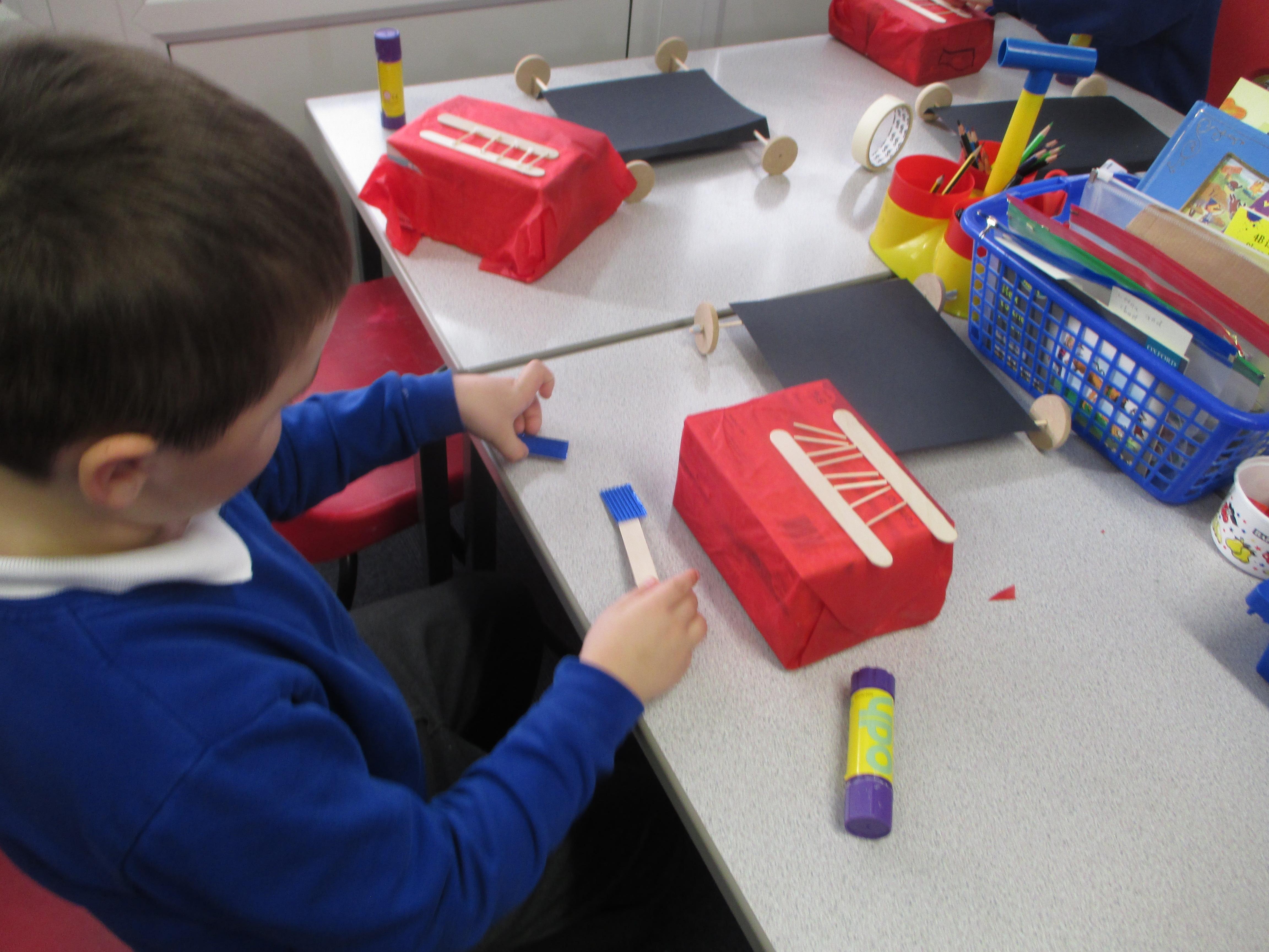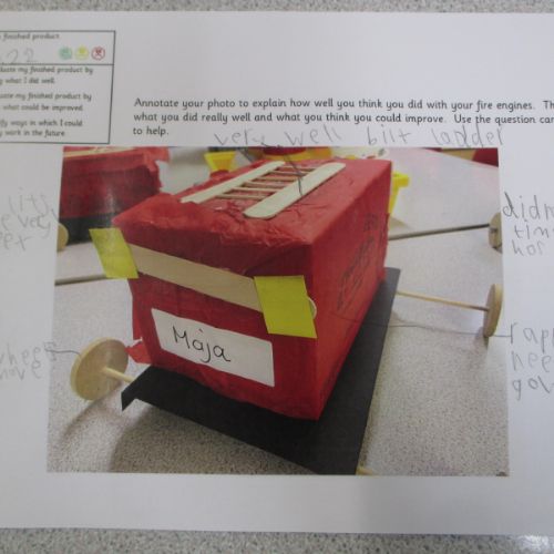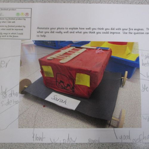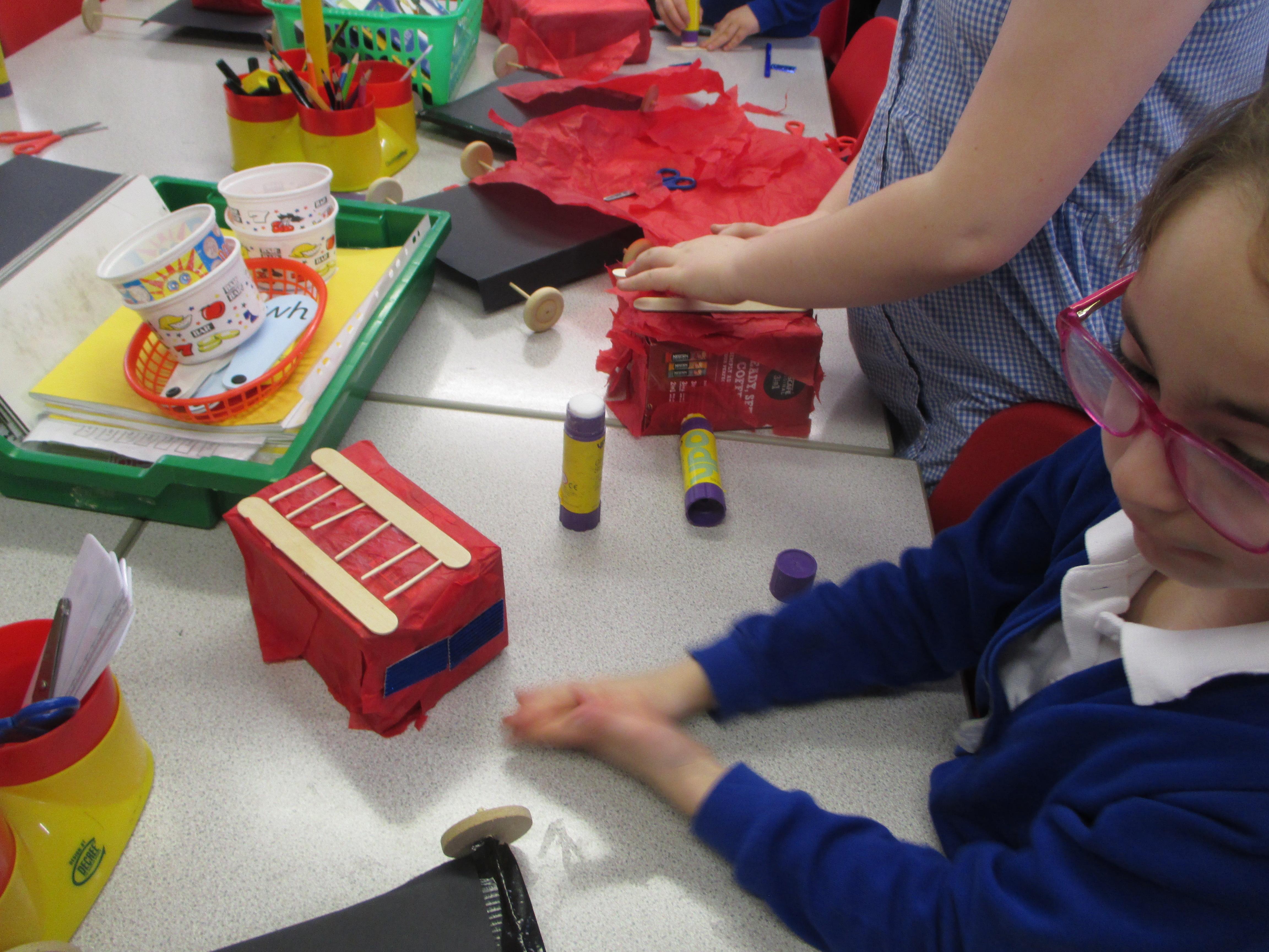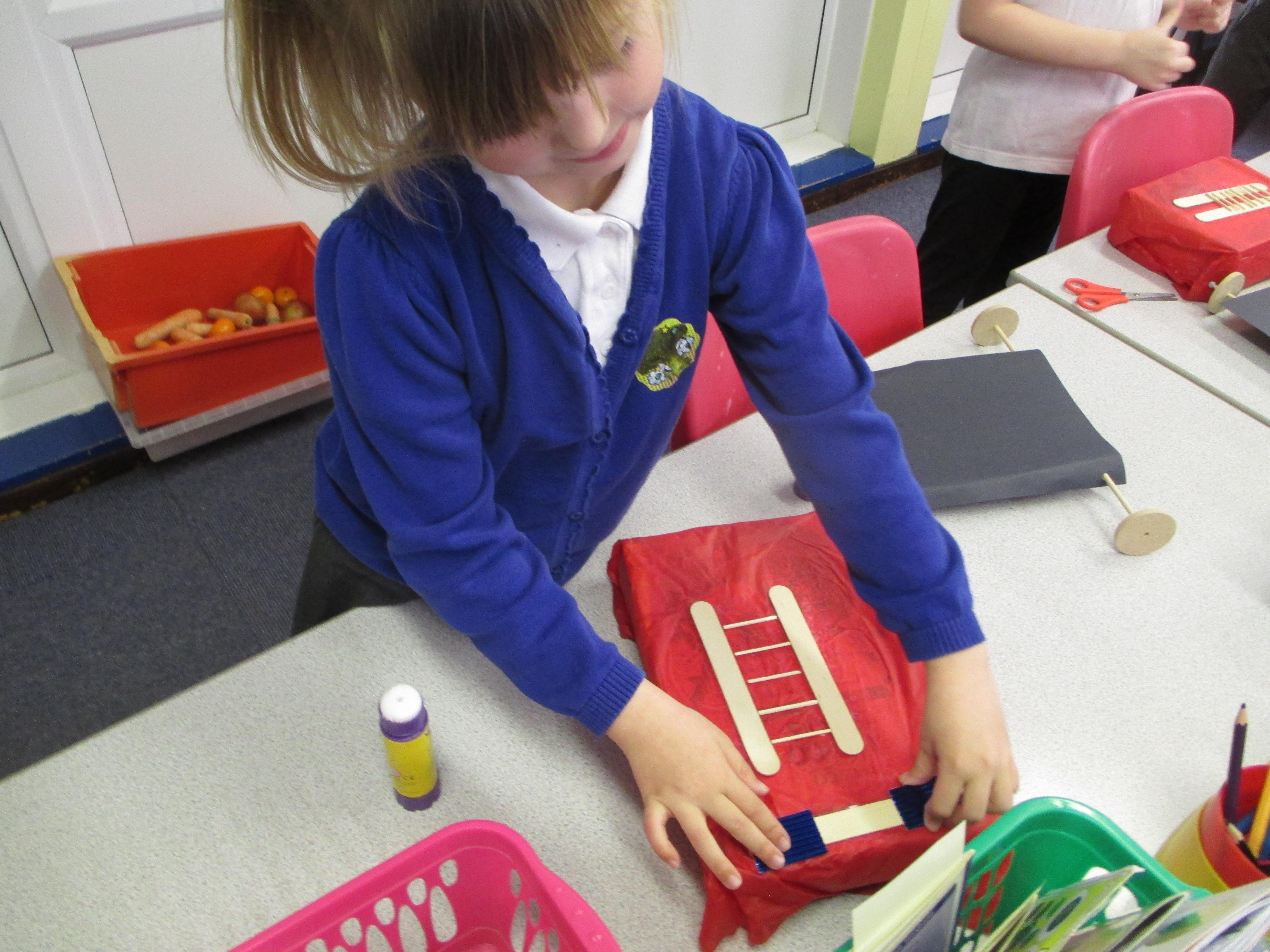 We followed our designs to create our fire engines, using a range of different materials, tools and techniques.