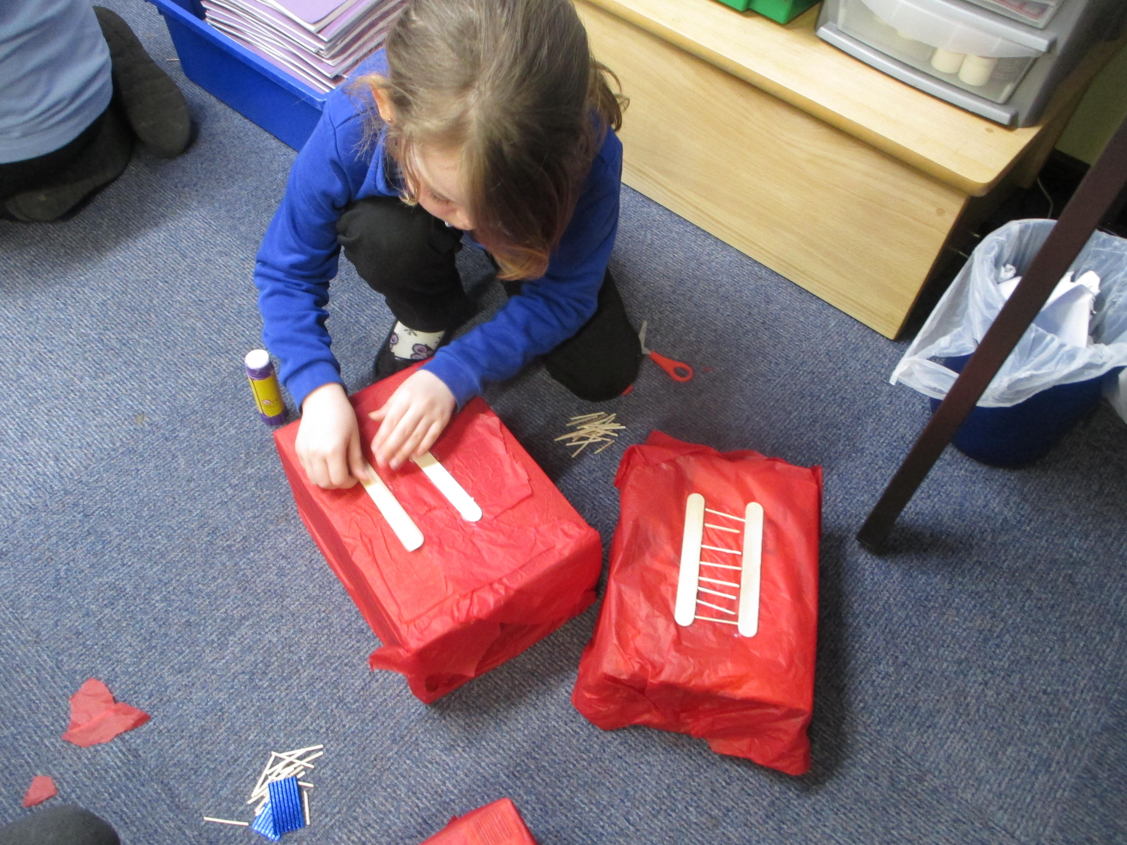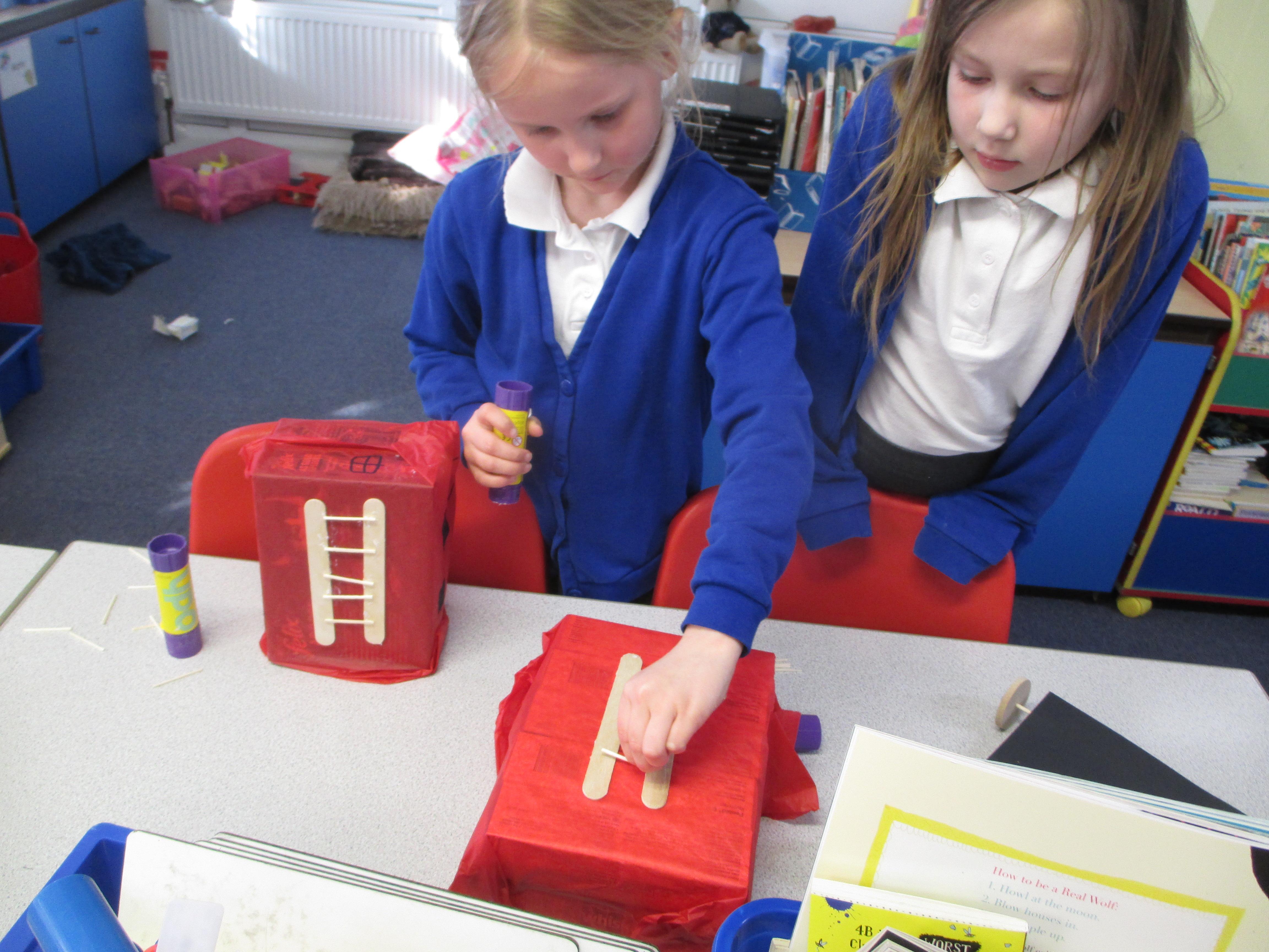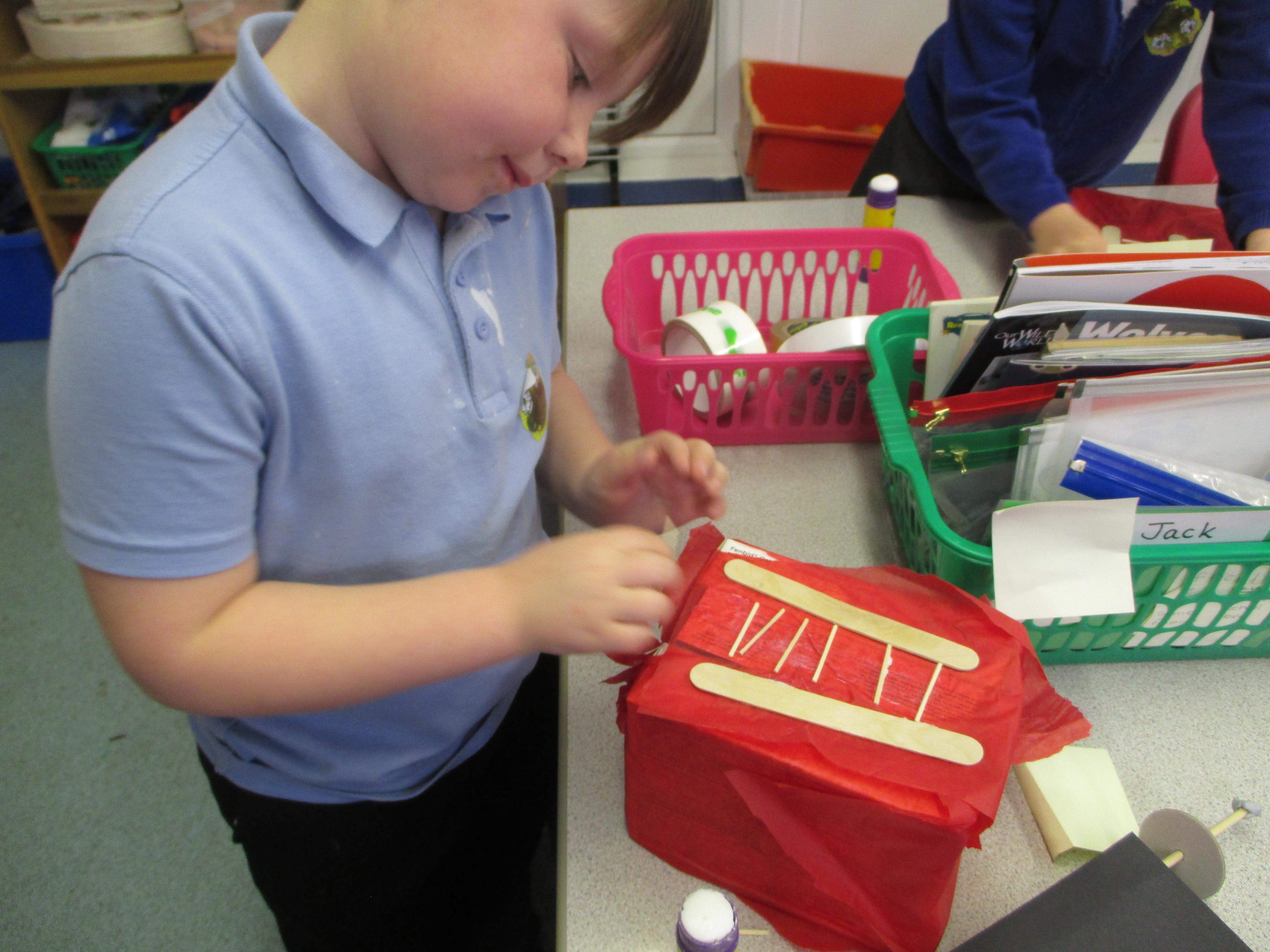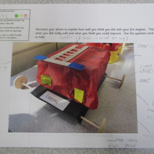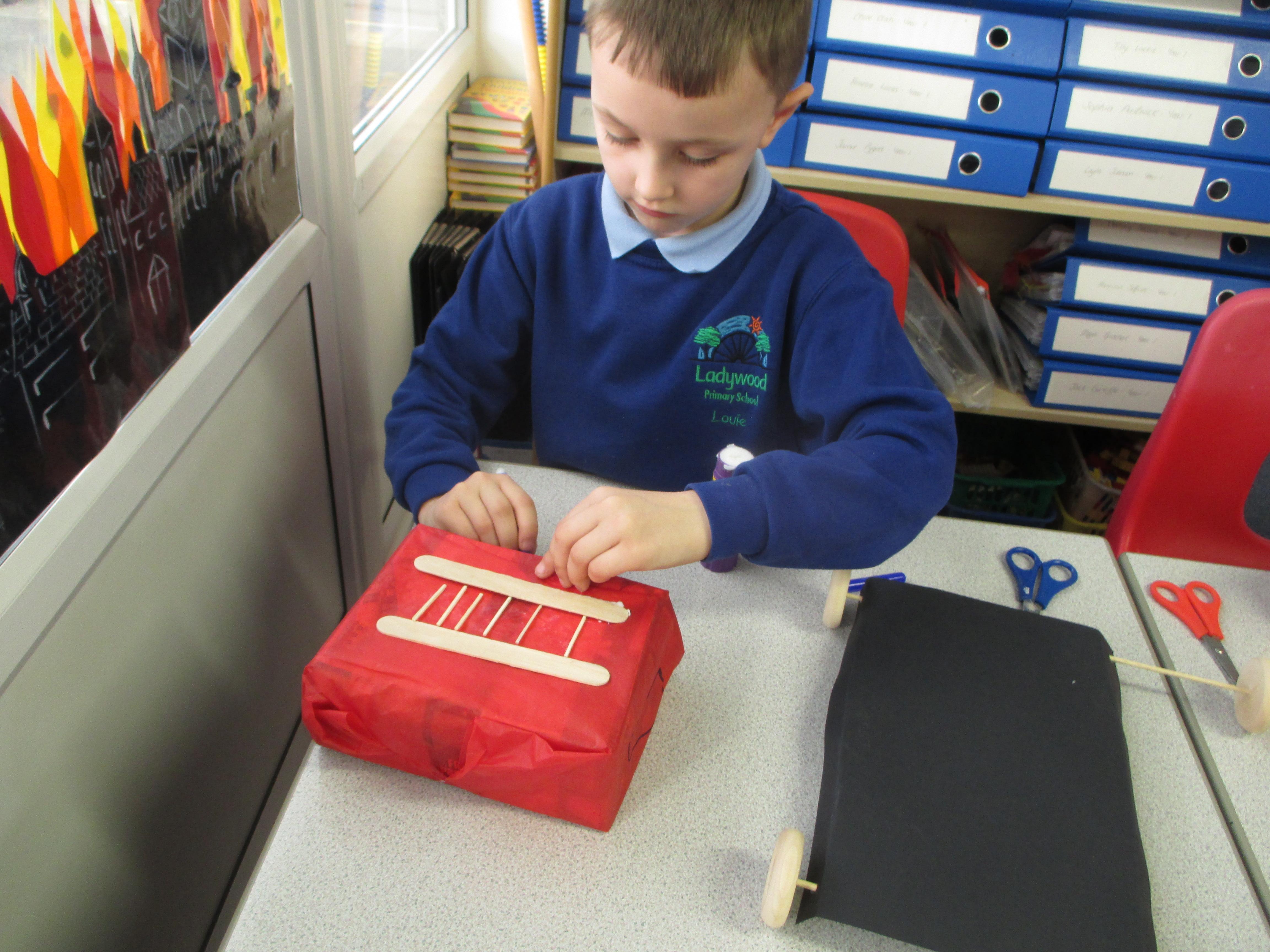 We followed our designs to create our fire engines, using a range of different materials, tools and techniques.