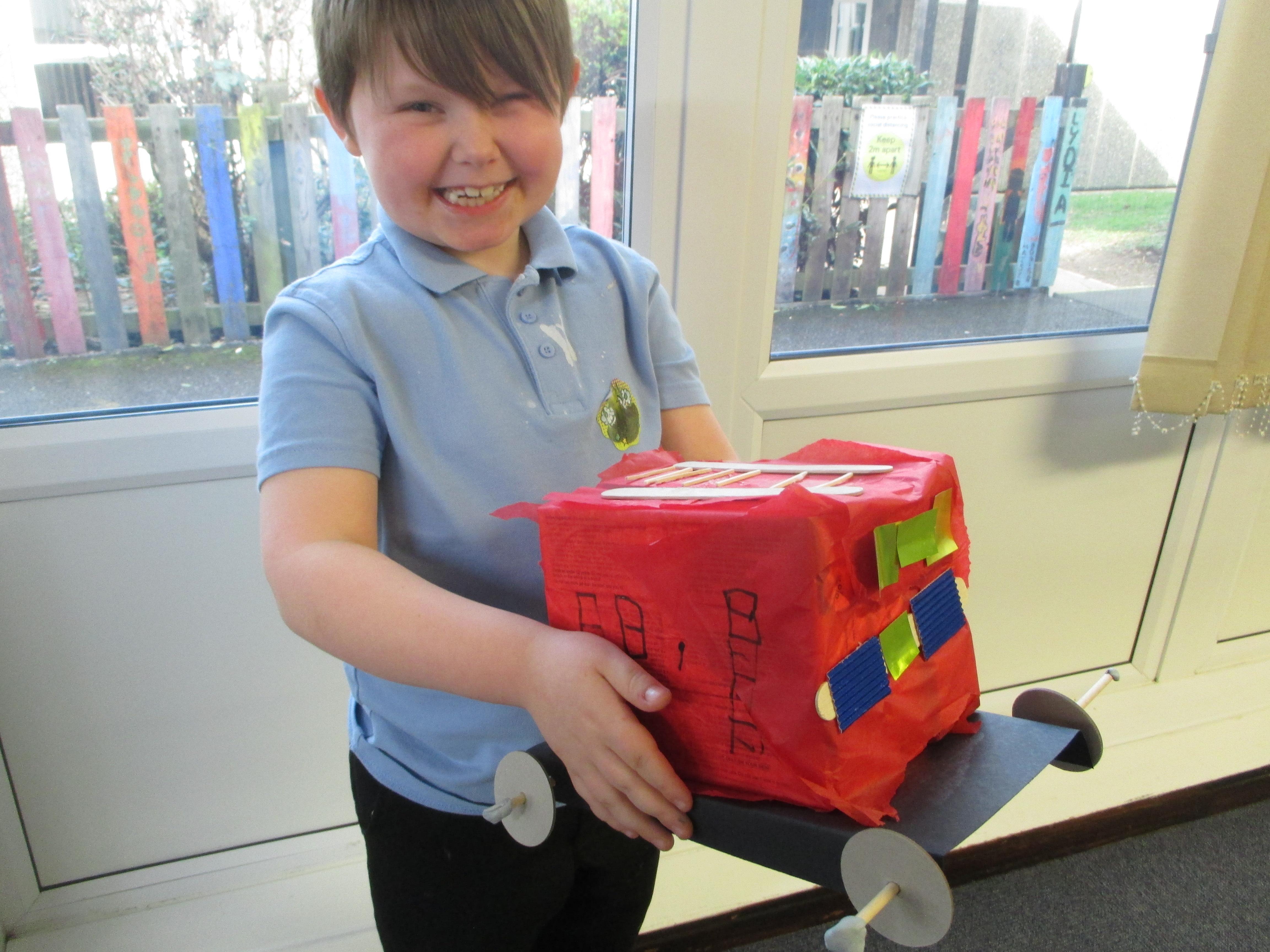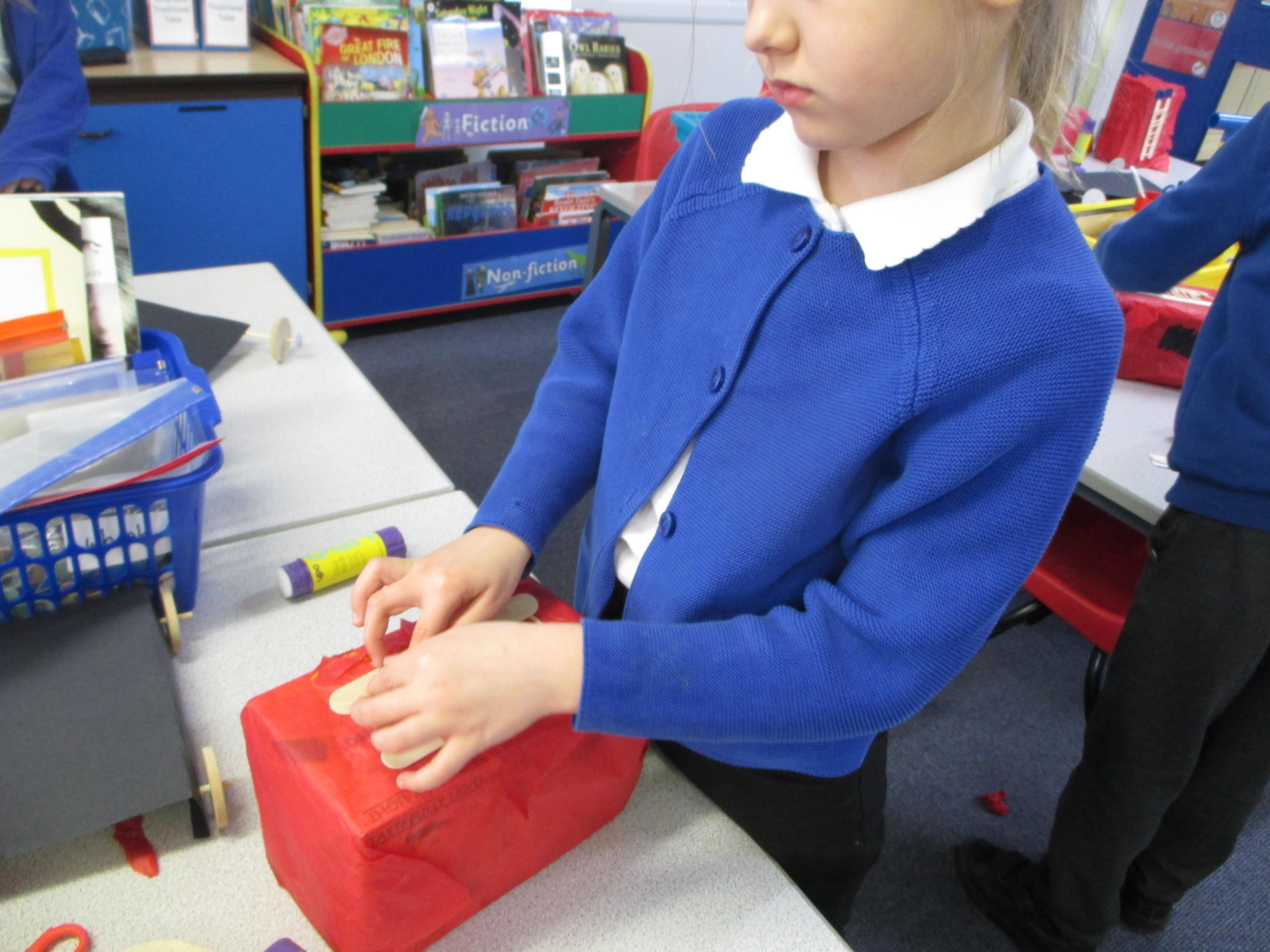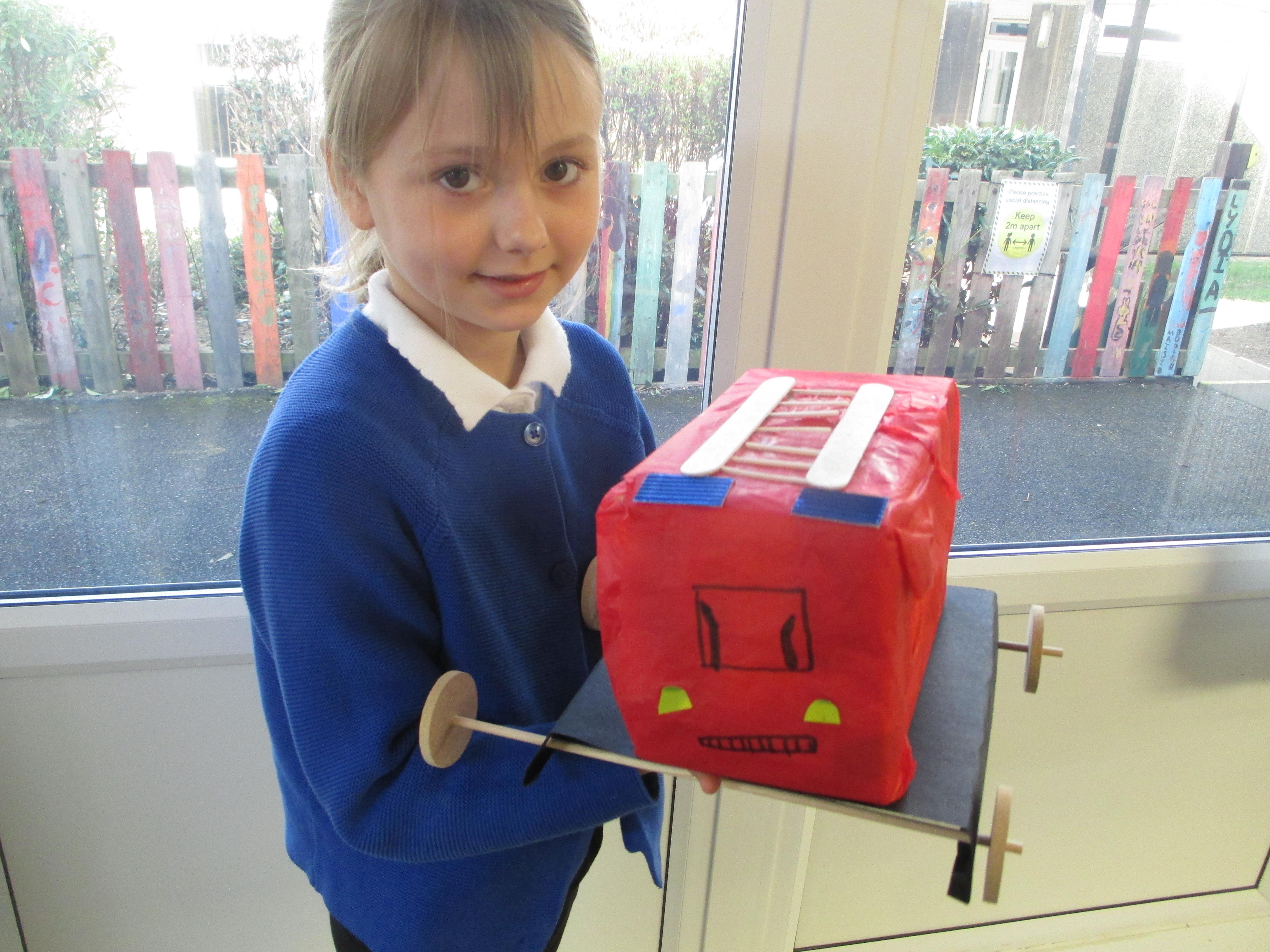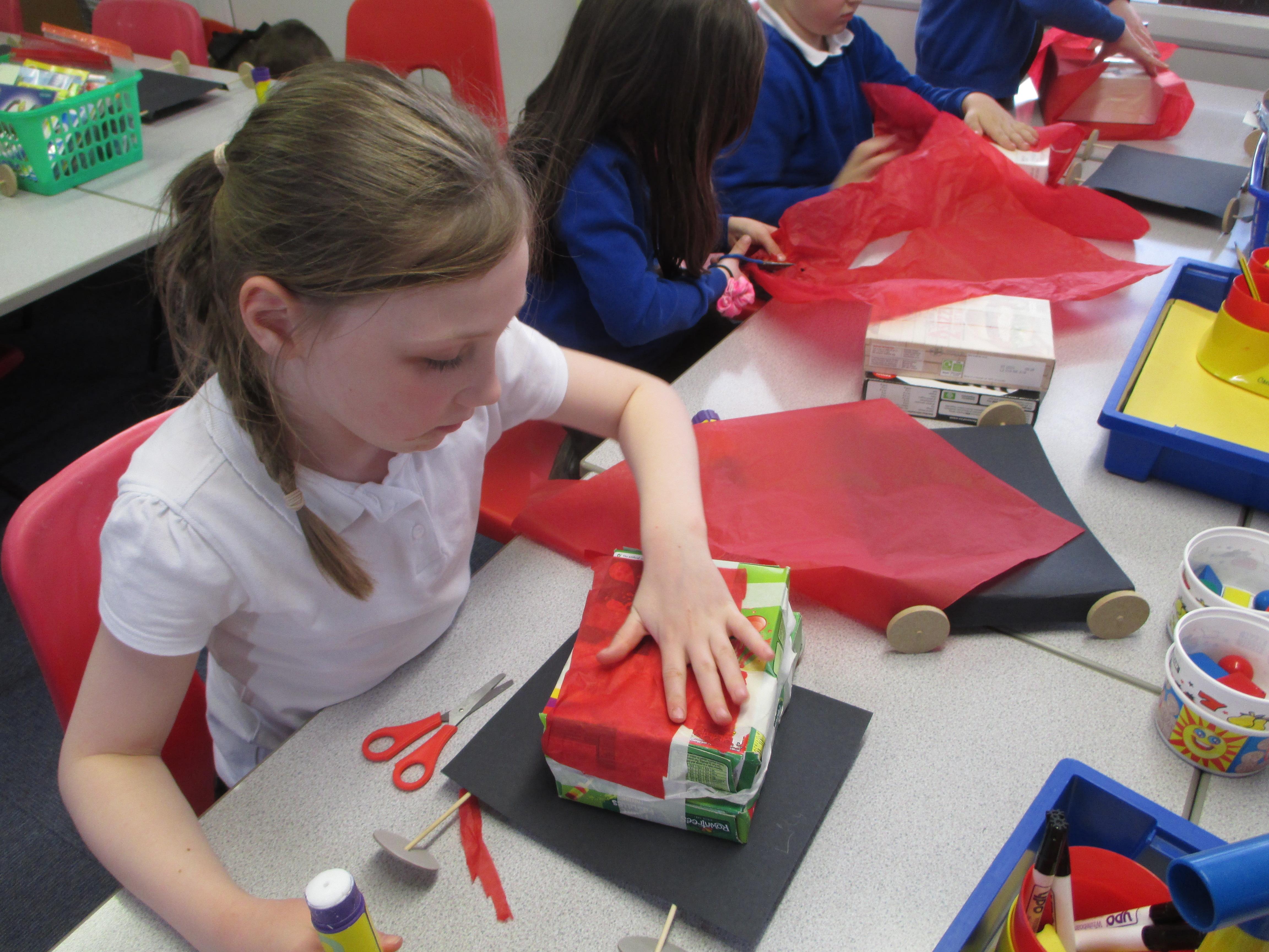 We followed our designs to create our fire engines, using a range of different materials, tools and techniques.