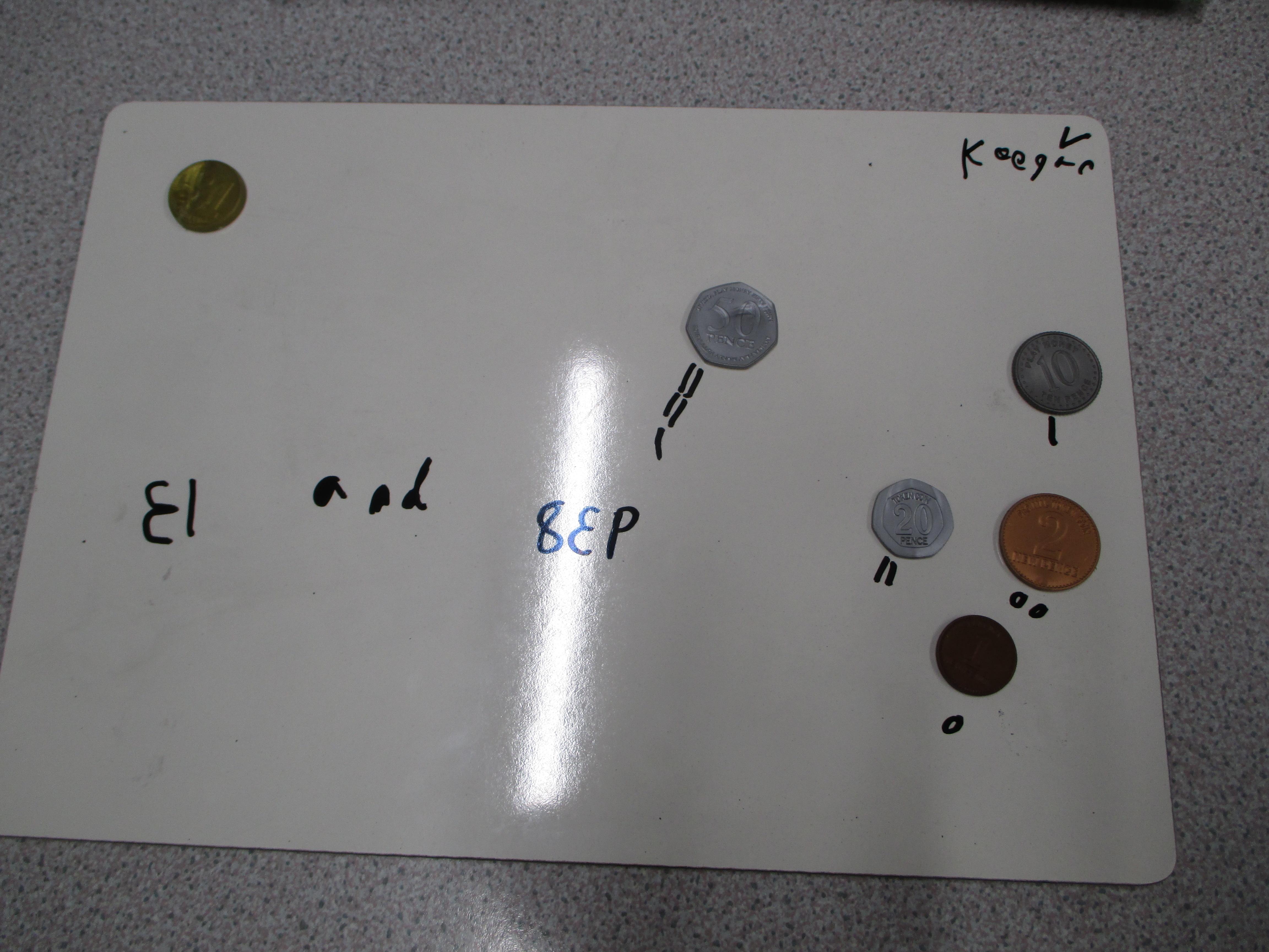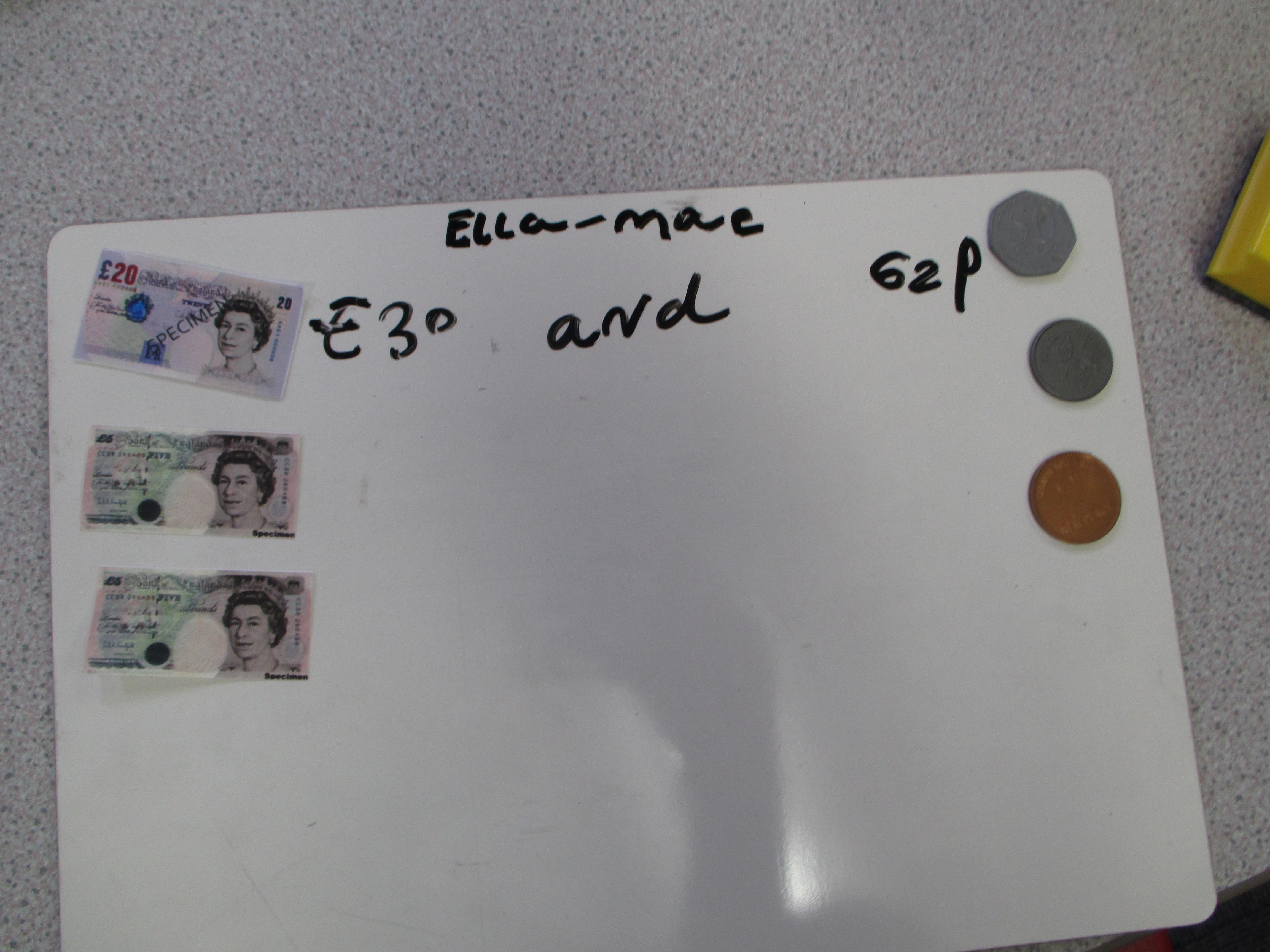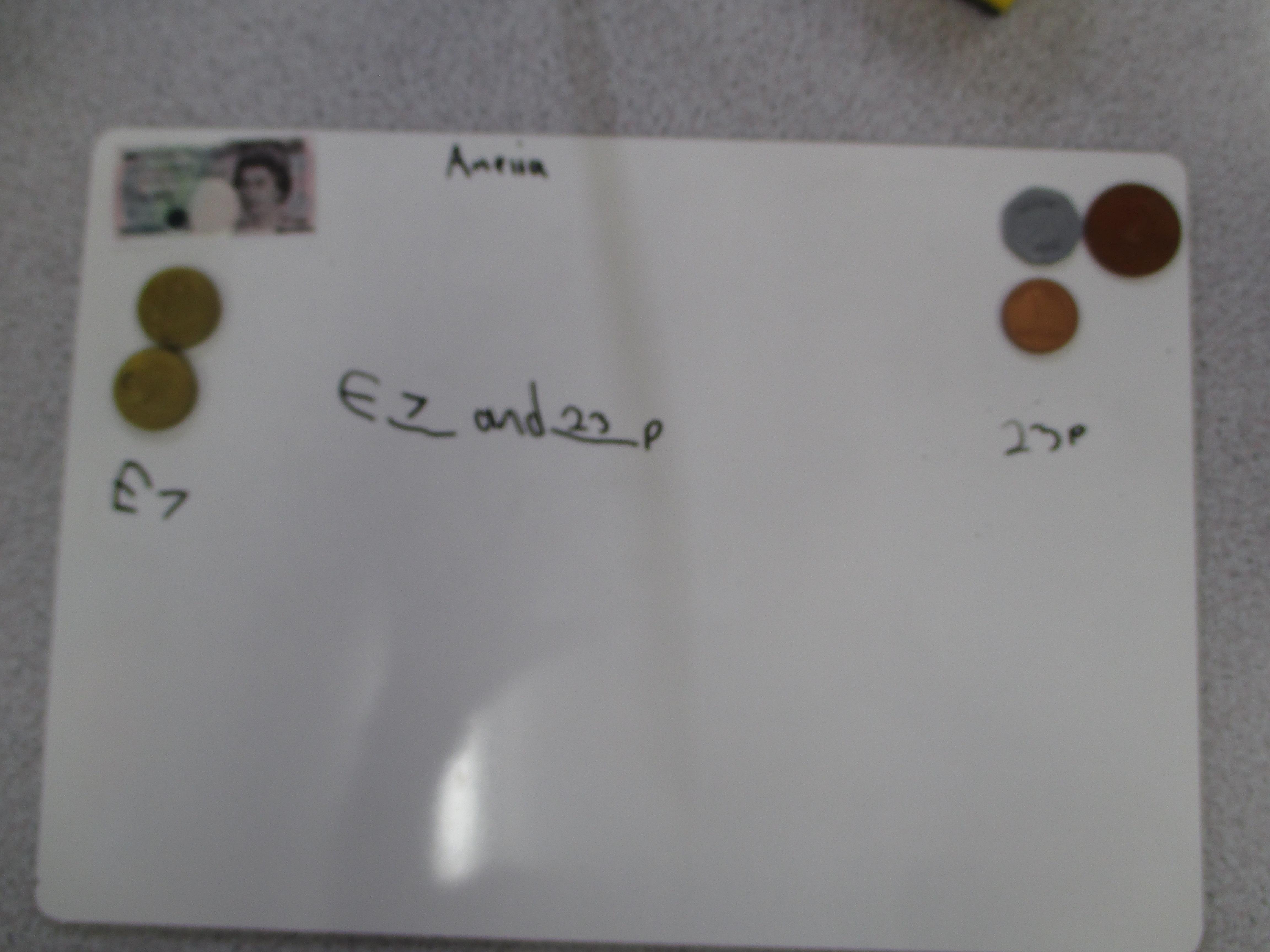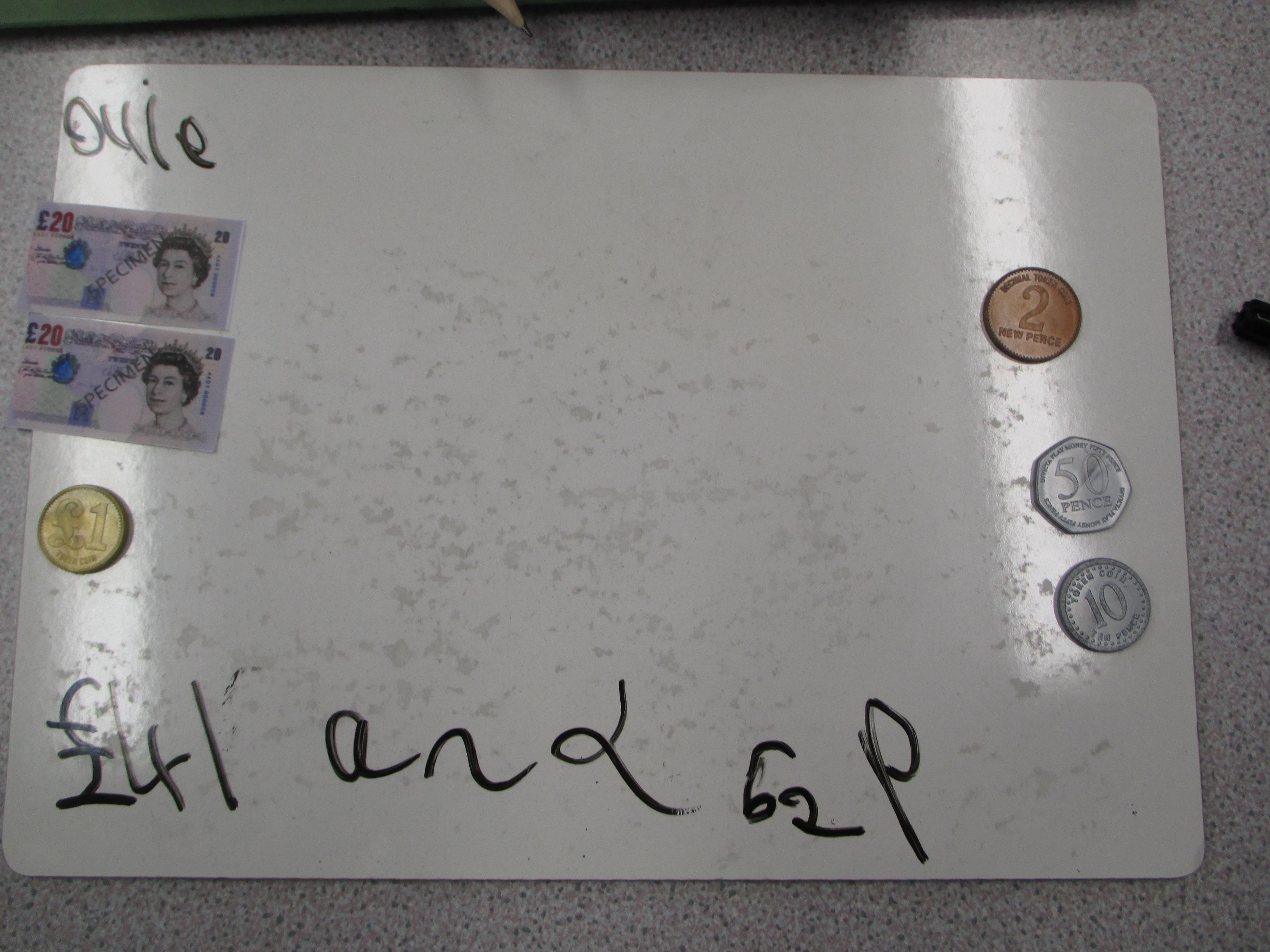 Choose some pounds and pence from your piggy bank or your parents/carers' purse or wallet. Separate the pounds from the pence and find the total amount.
