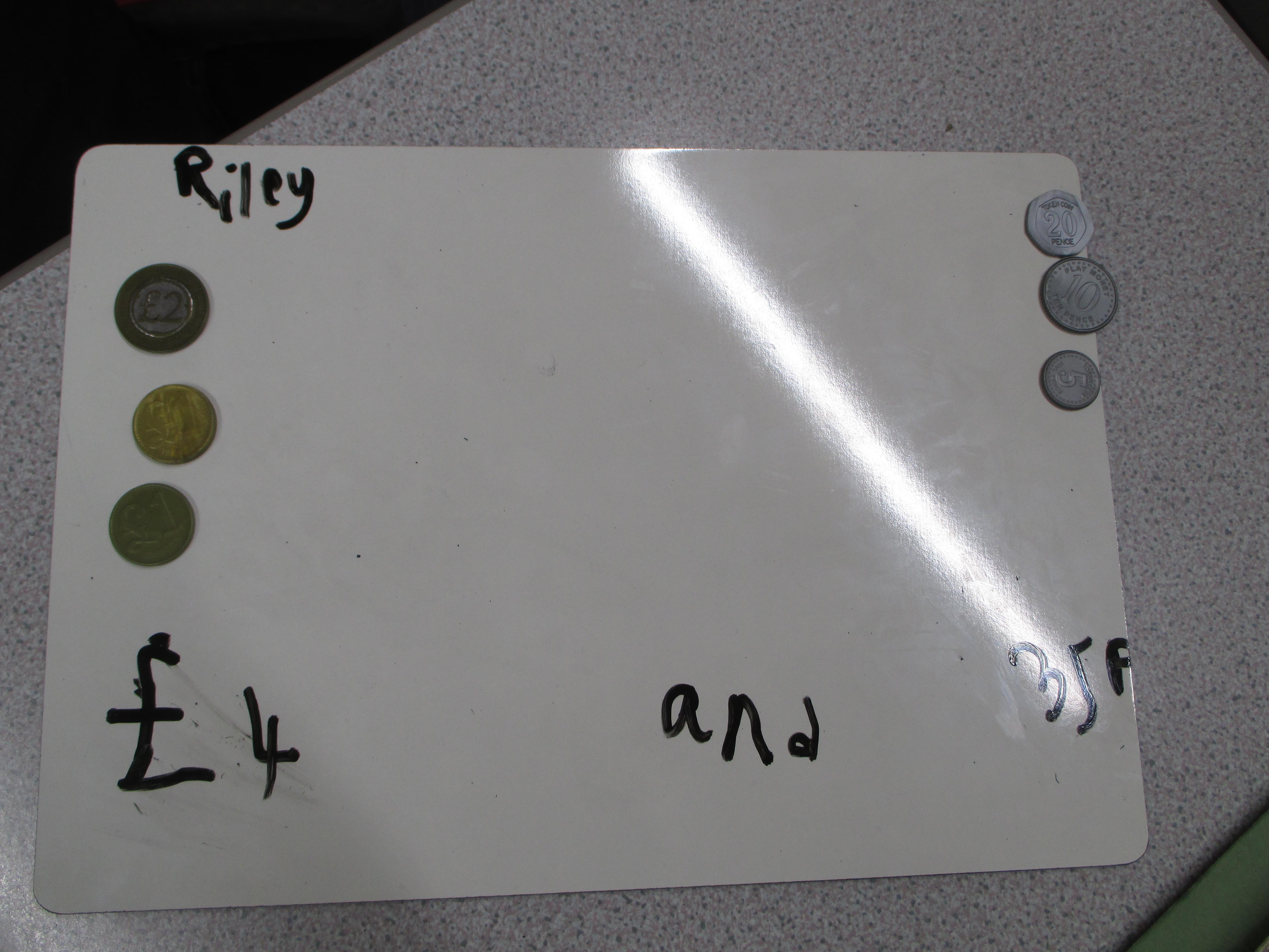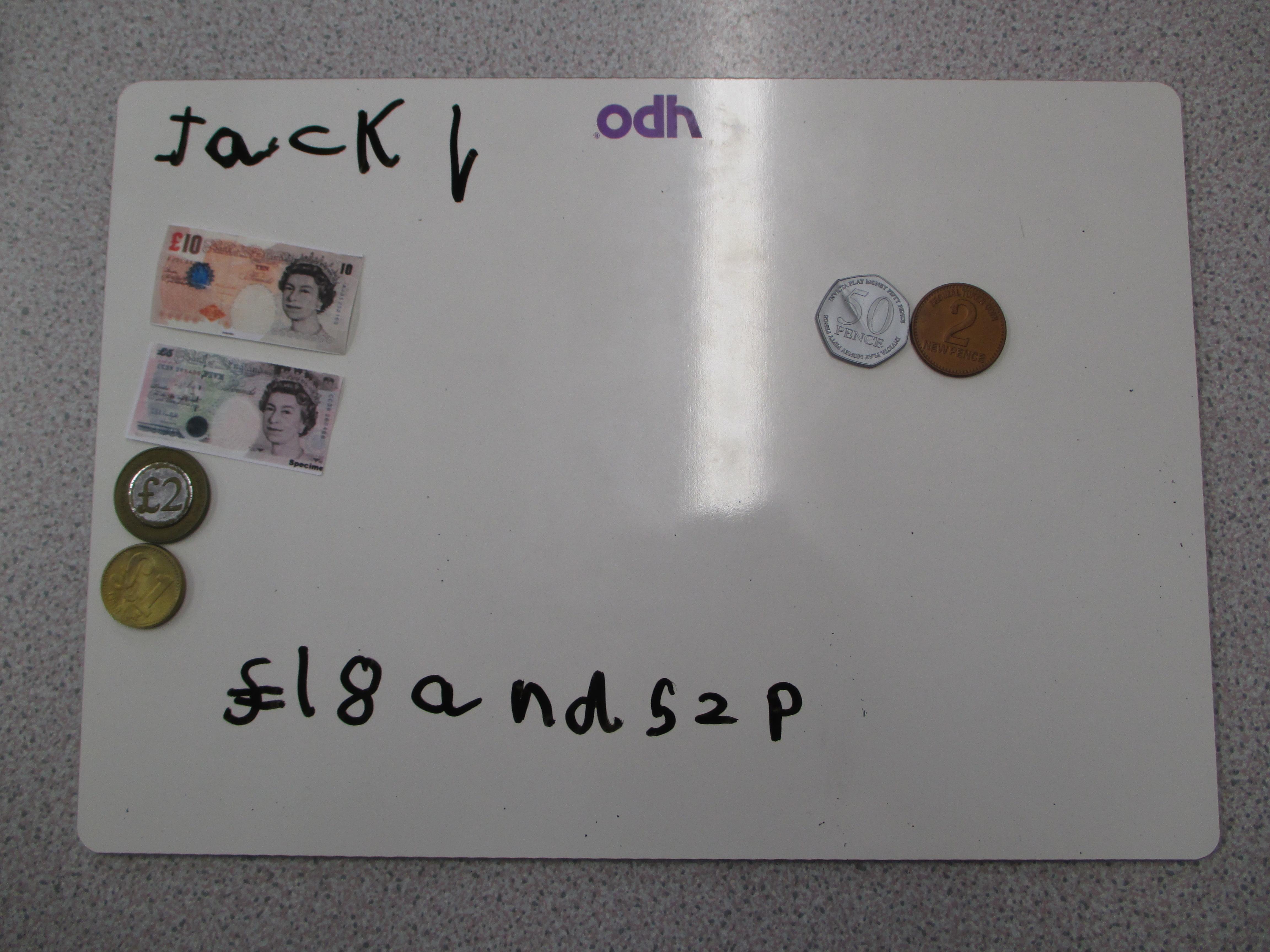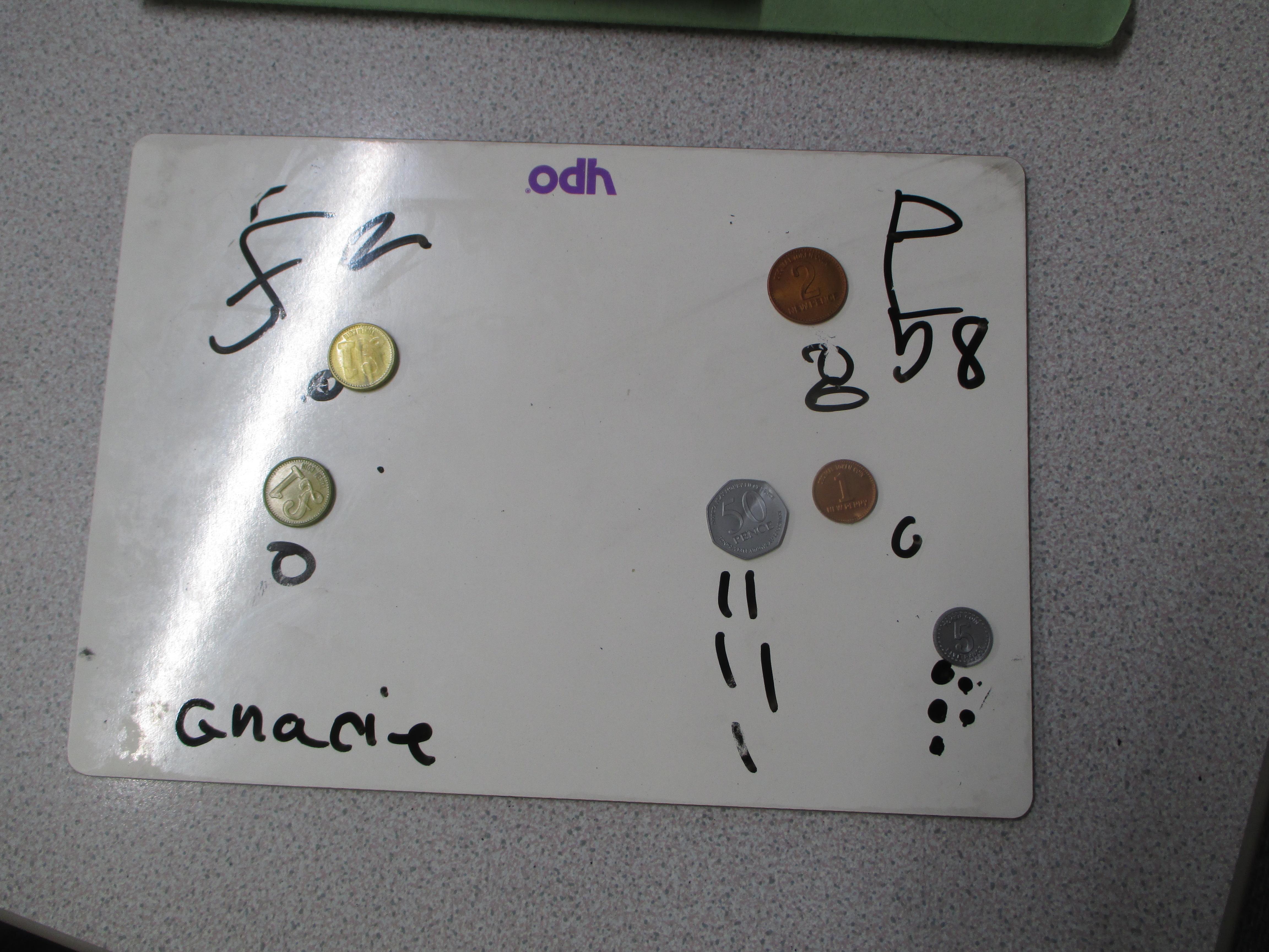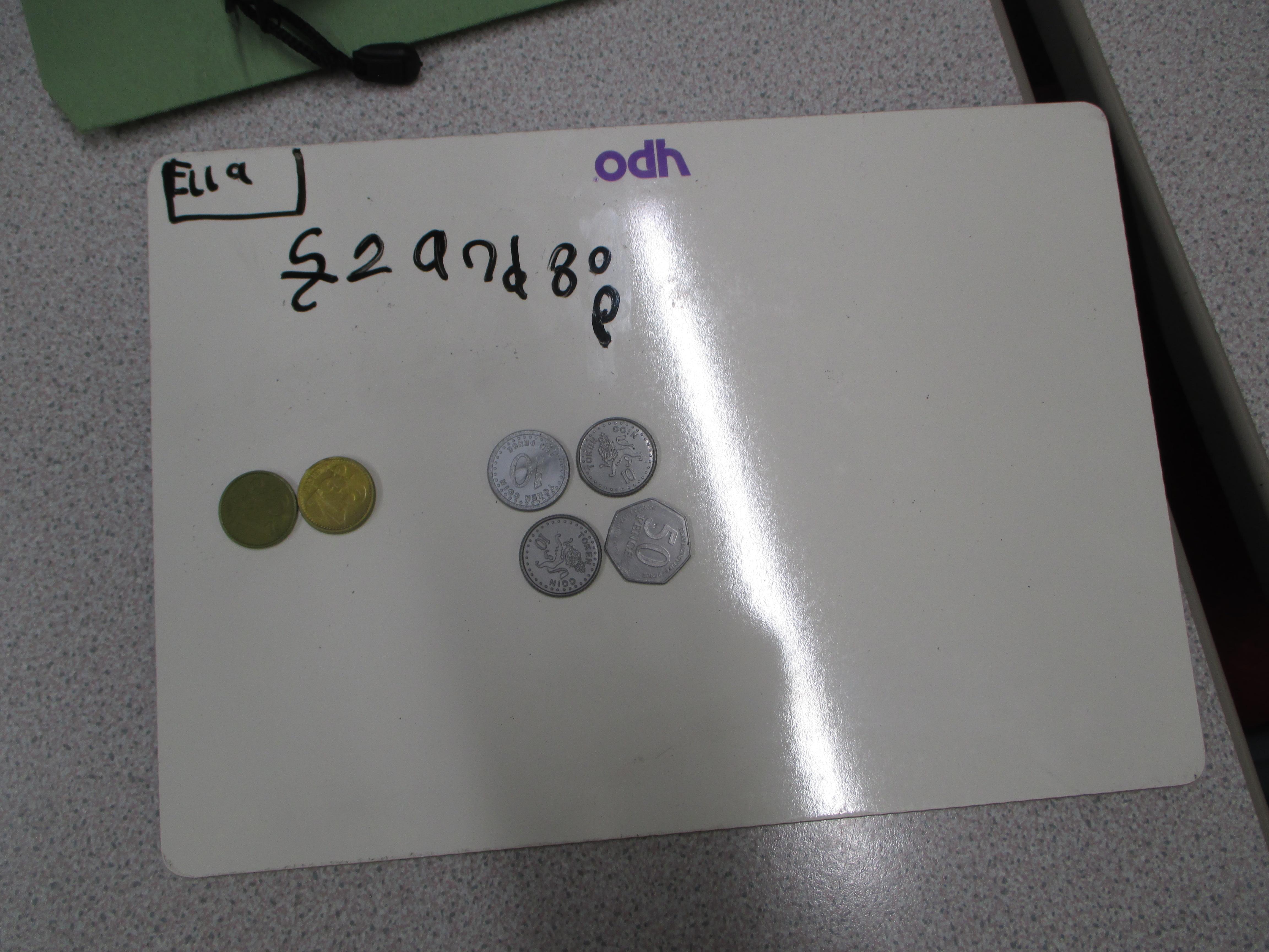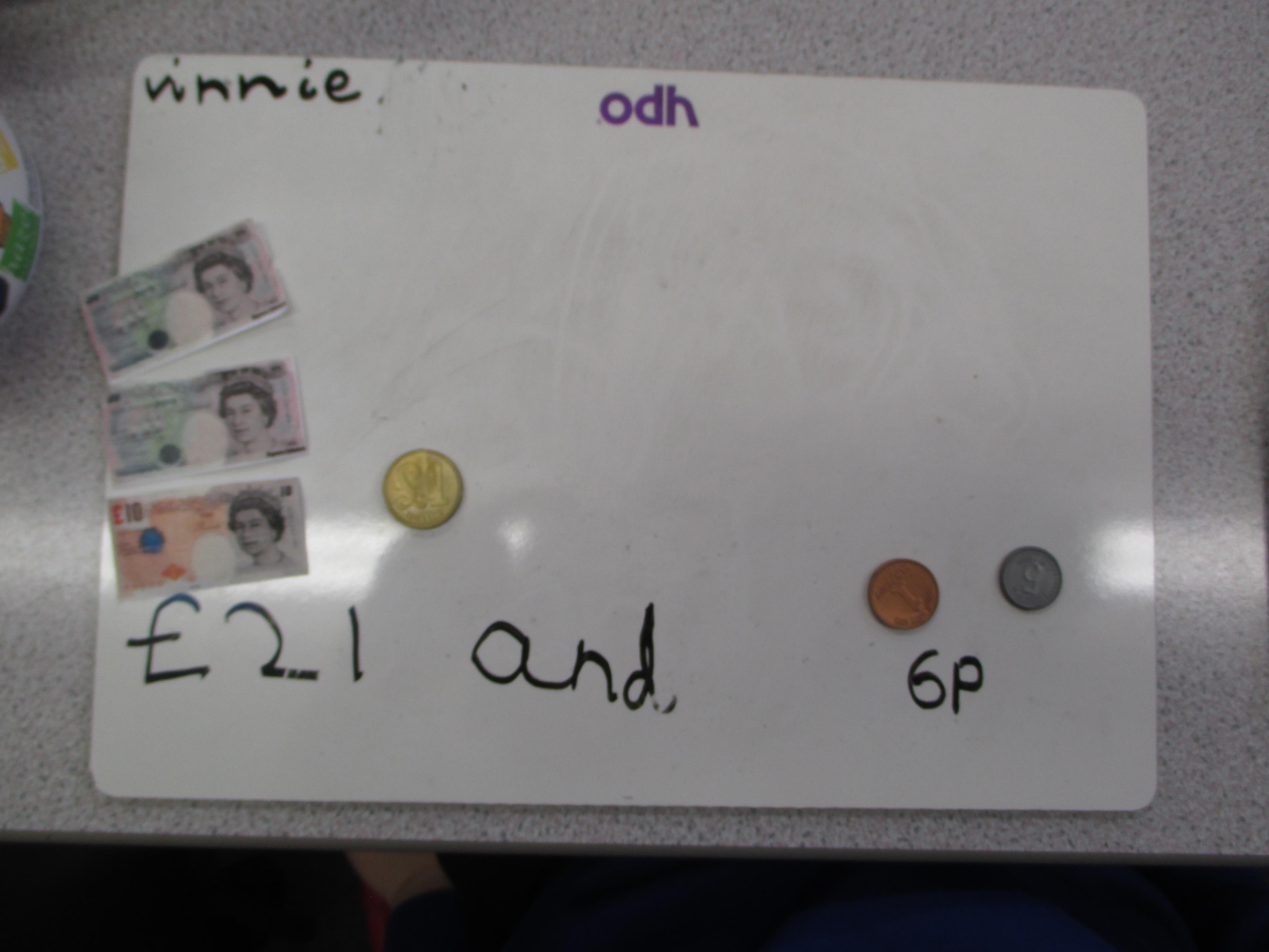 Choose some pounds and pence from your piggy bank or your parents/carers' purse or wallet. Separate the pounds from the pence and find the total amount.