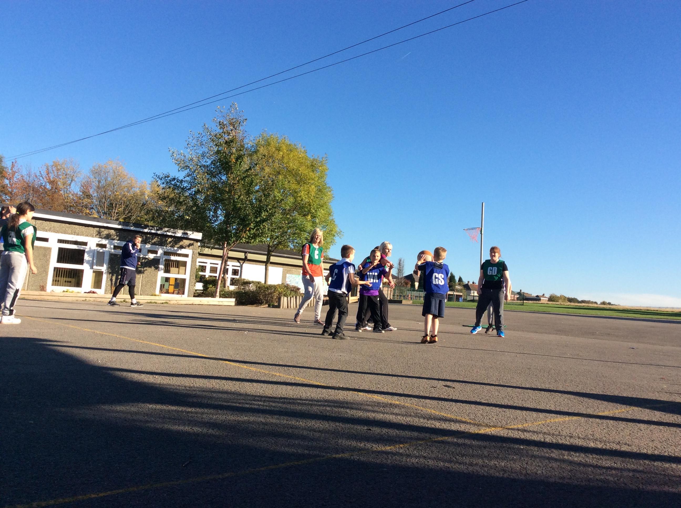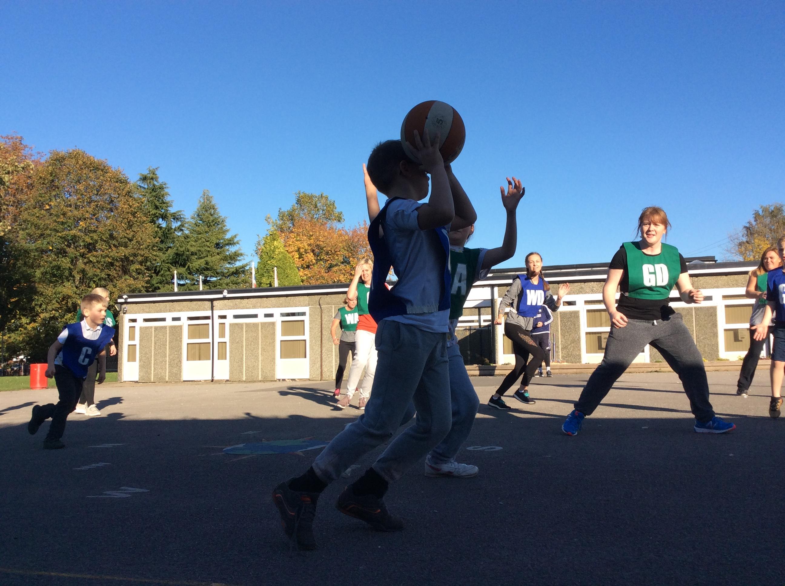 On Thursday 18th October, some teachers came to join Netball for a few games. We decided to have a children versus teachers game. All children and staff who were involved had a wonderful time, all coming away smiling and laughing.