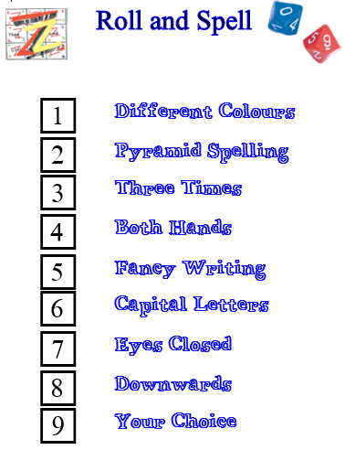 Each week, we will be learning a new spelling rule and will have spellings to practise.  Also included will be some of the common exception words from the lists above.  There will be time in school to practise but please try and find some time at home to help your child learn the spelling rule.  These rules are quite tricky!  You don’t need to send their spelling sheet back to school.  This is theirs to keep at home so that they can keep practising.  Use the Roll and Spell game to make spelling practise a bit more fun.