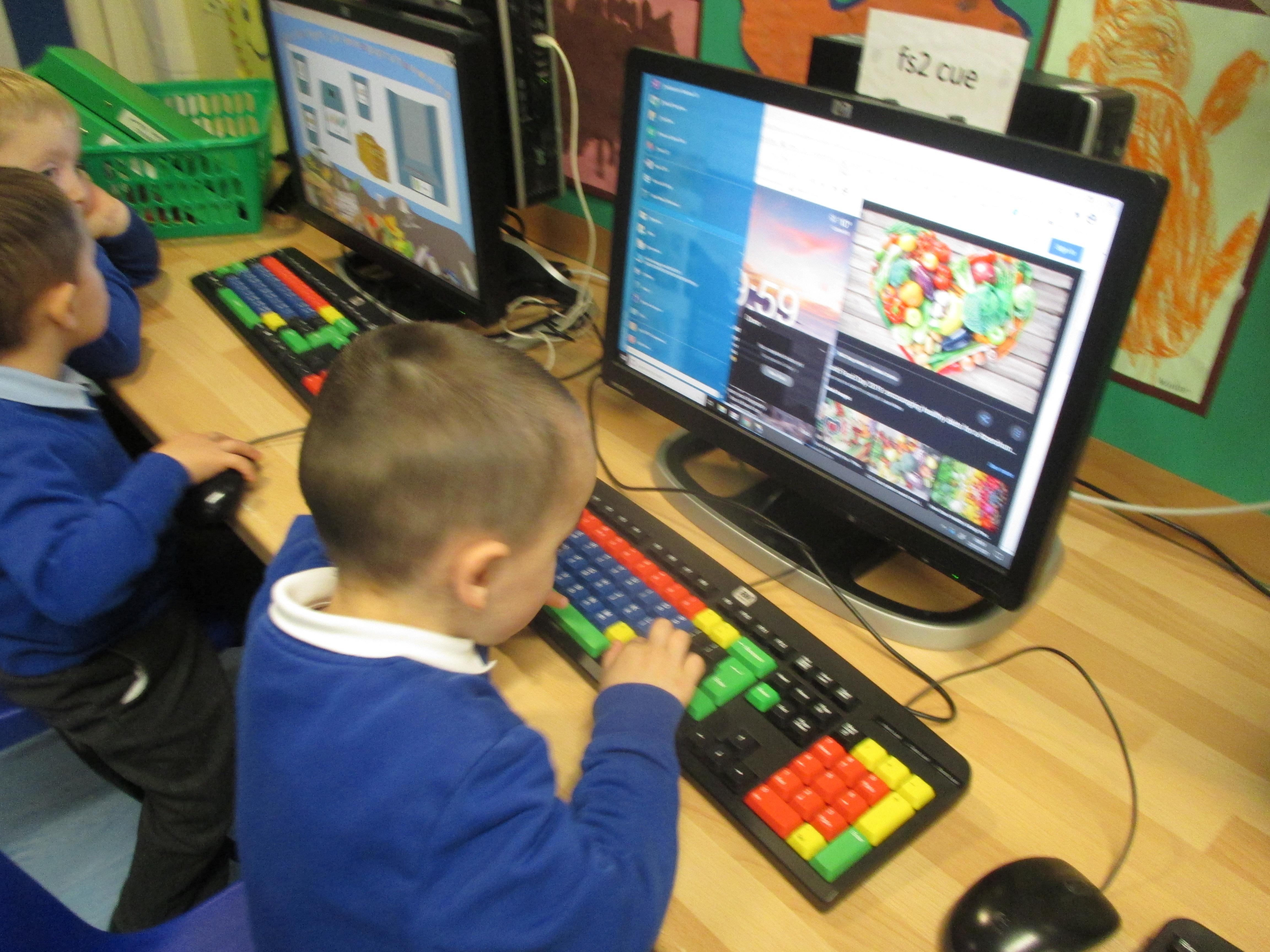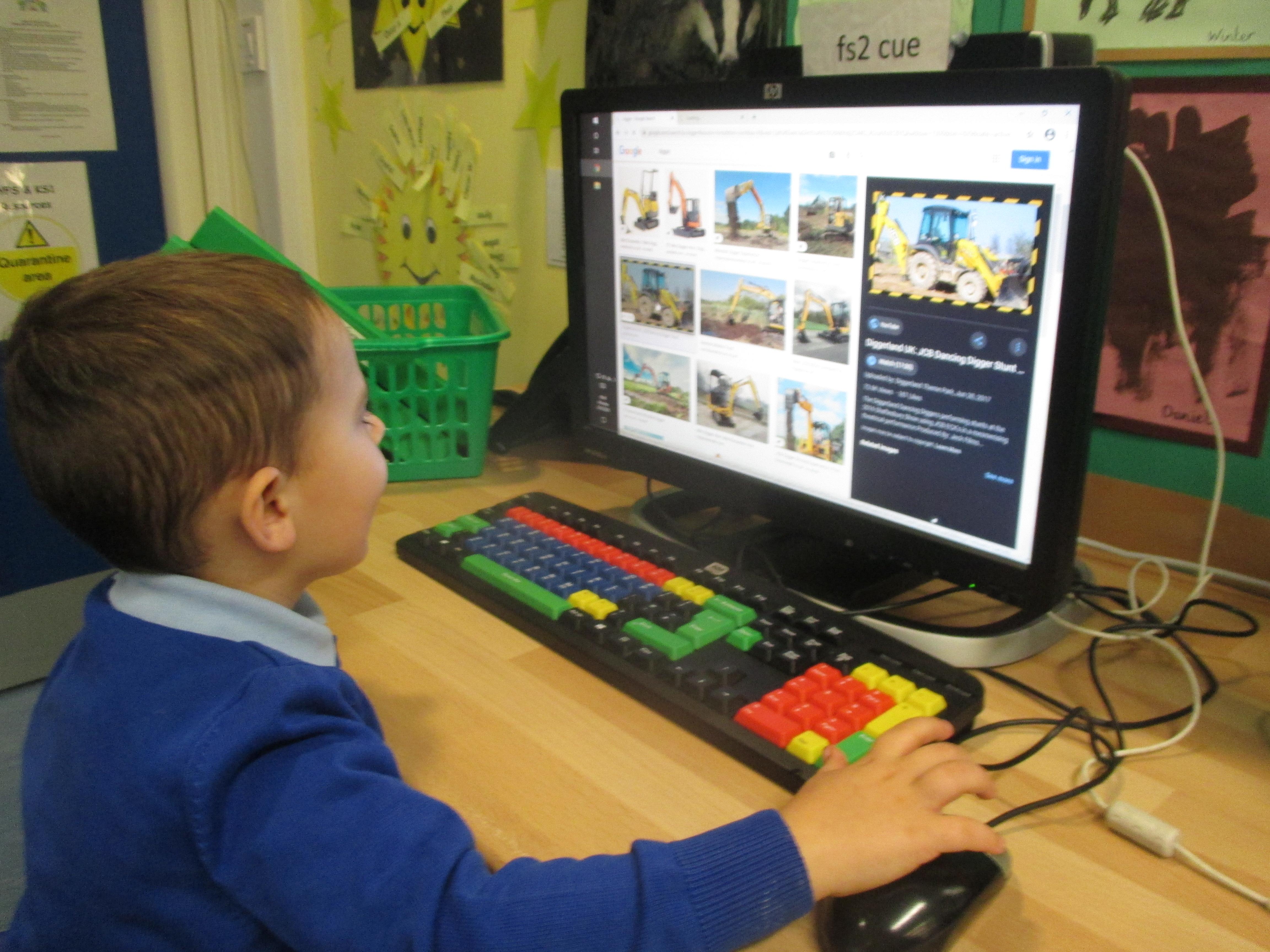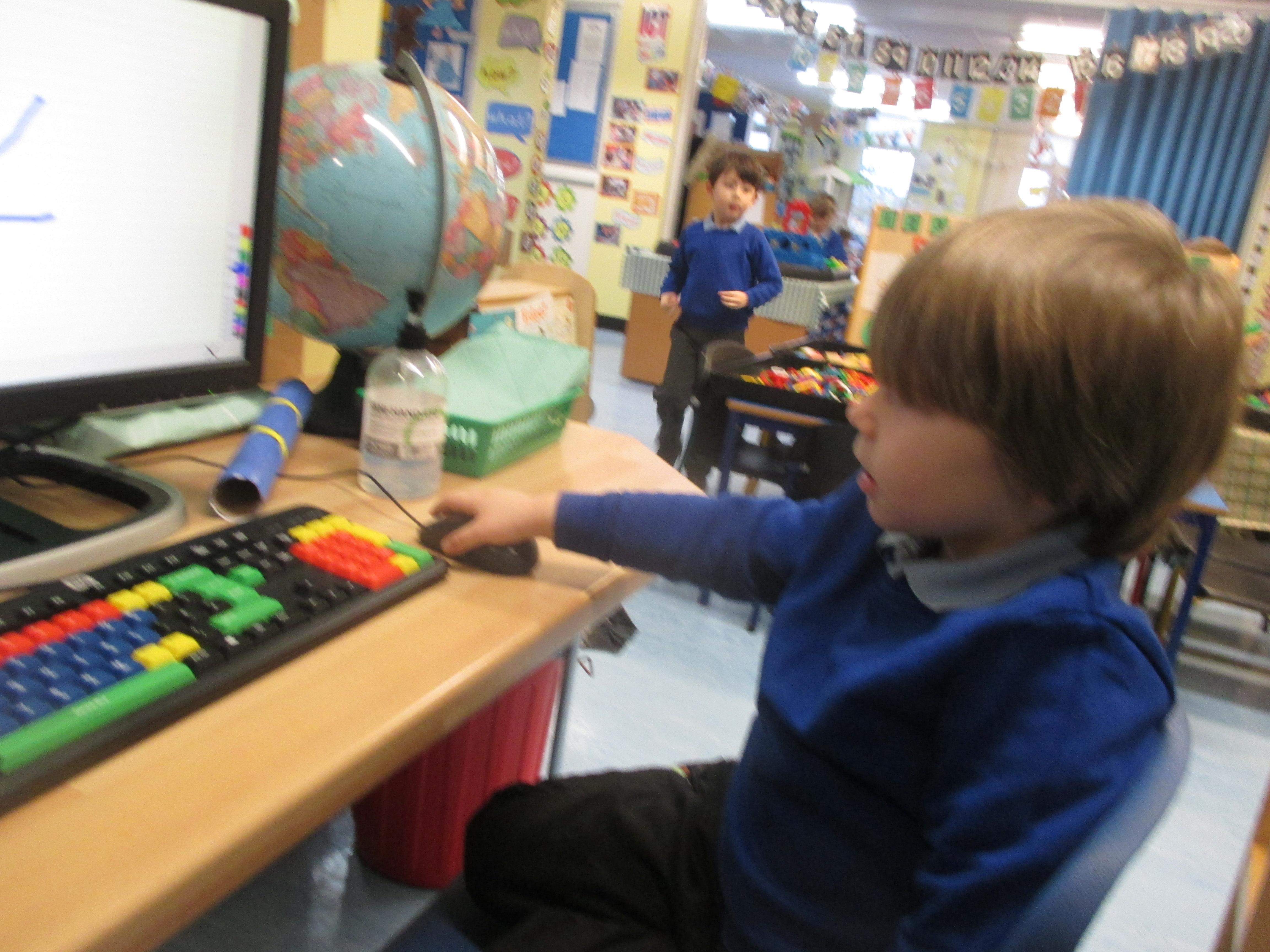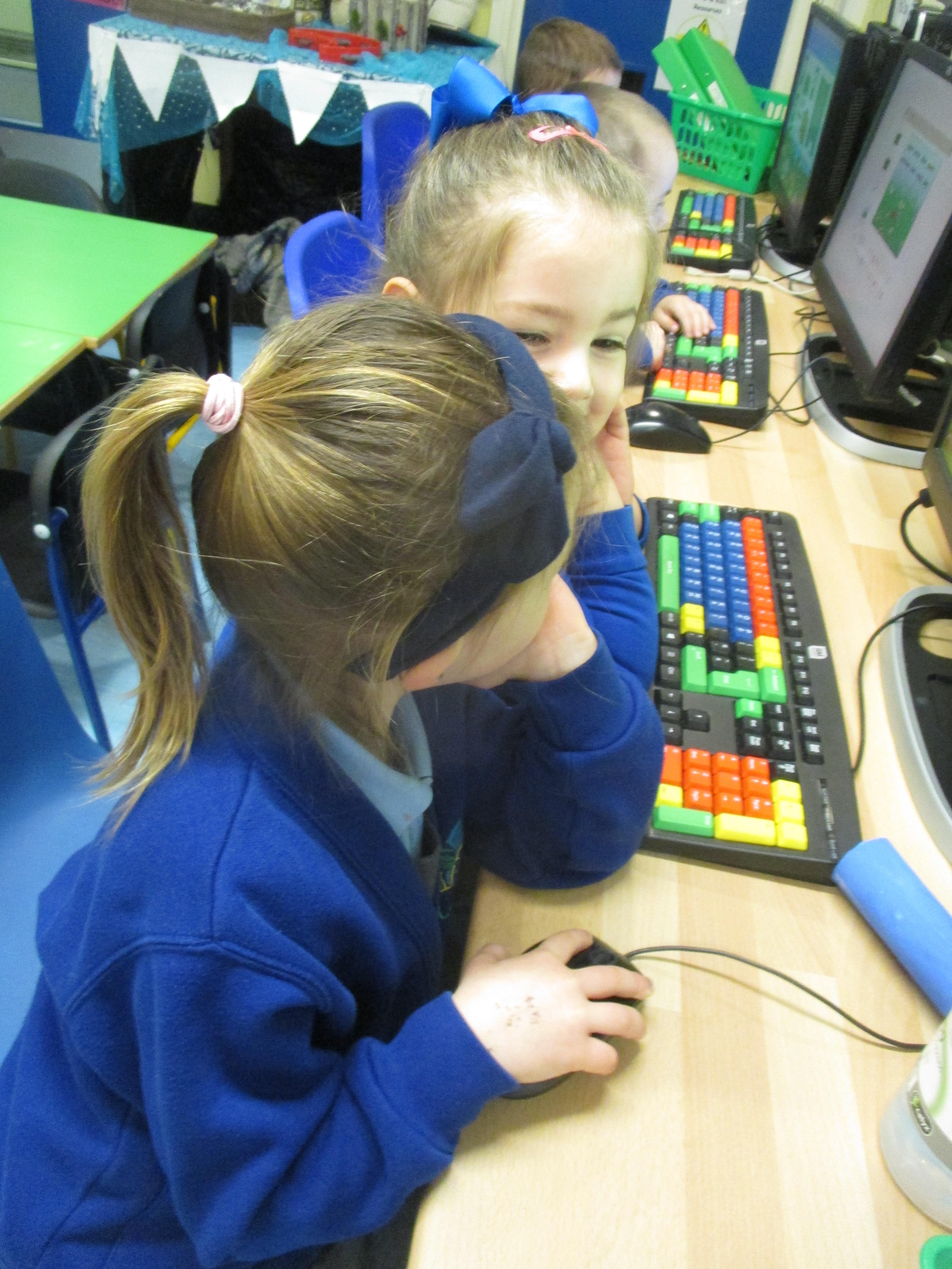 We explored the computers in our classroom. We learnt that you can use computers to help use find out information we want to know. We thought about what we would like to search for and then our grownups helped us to find it out. We also explored the different computer programs we have on the computer.