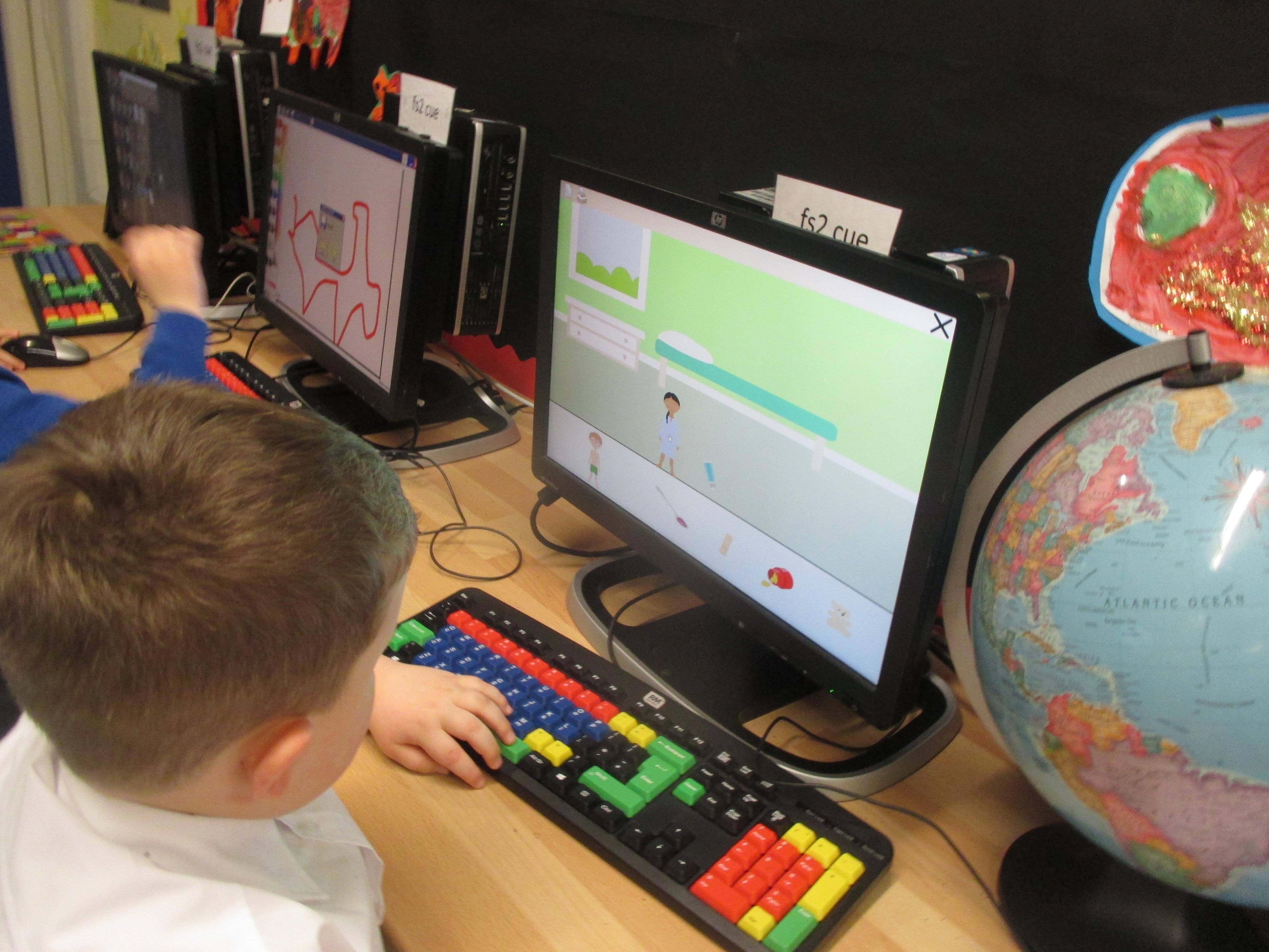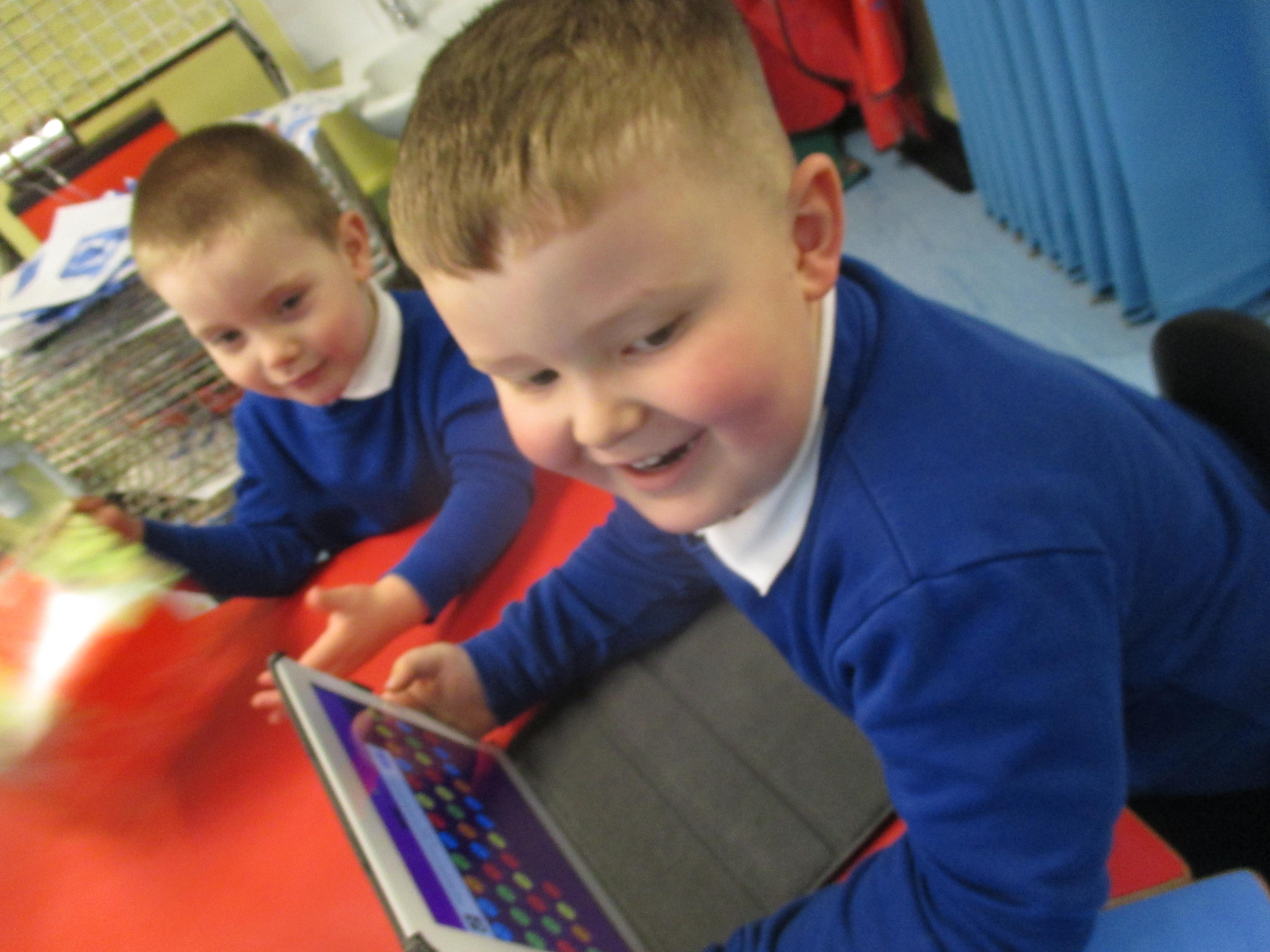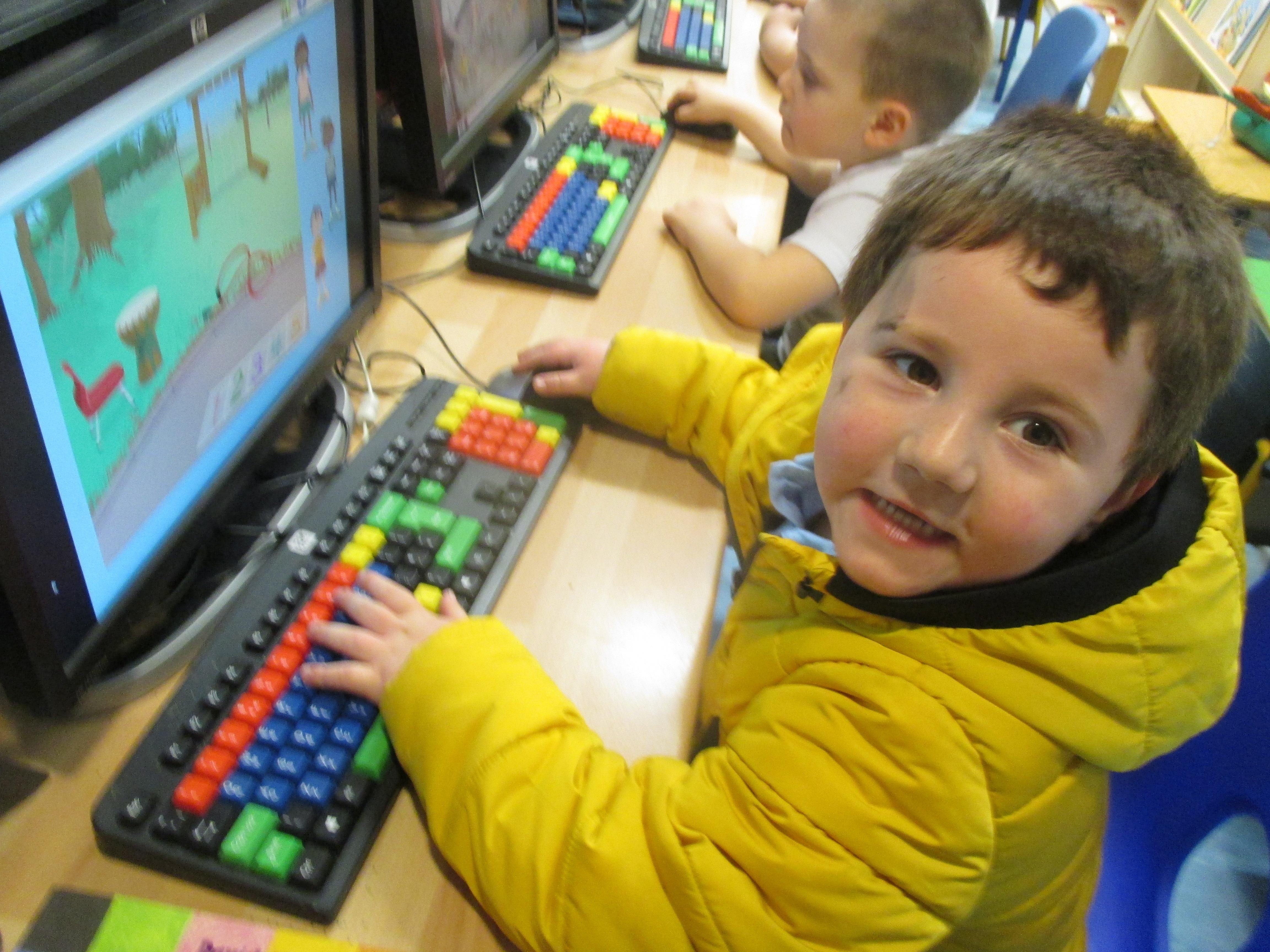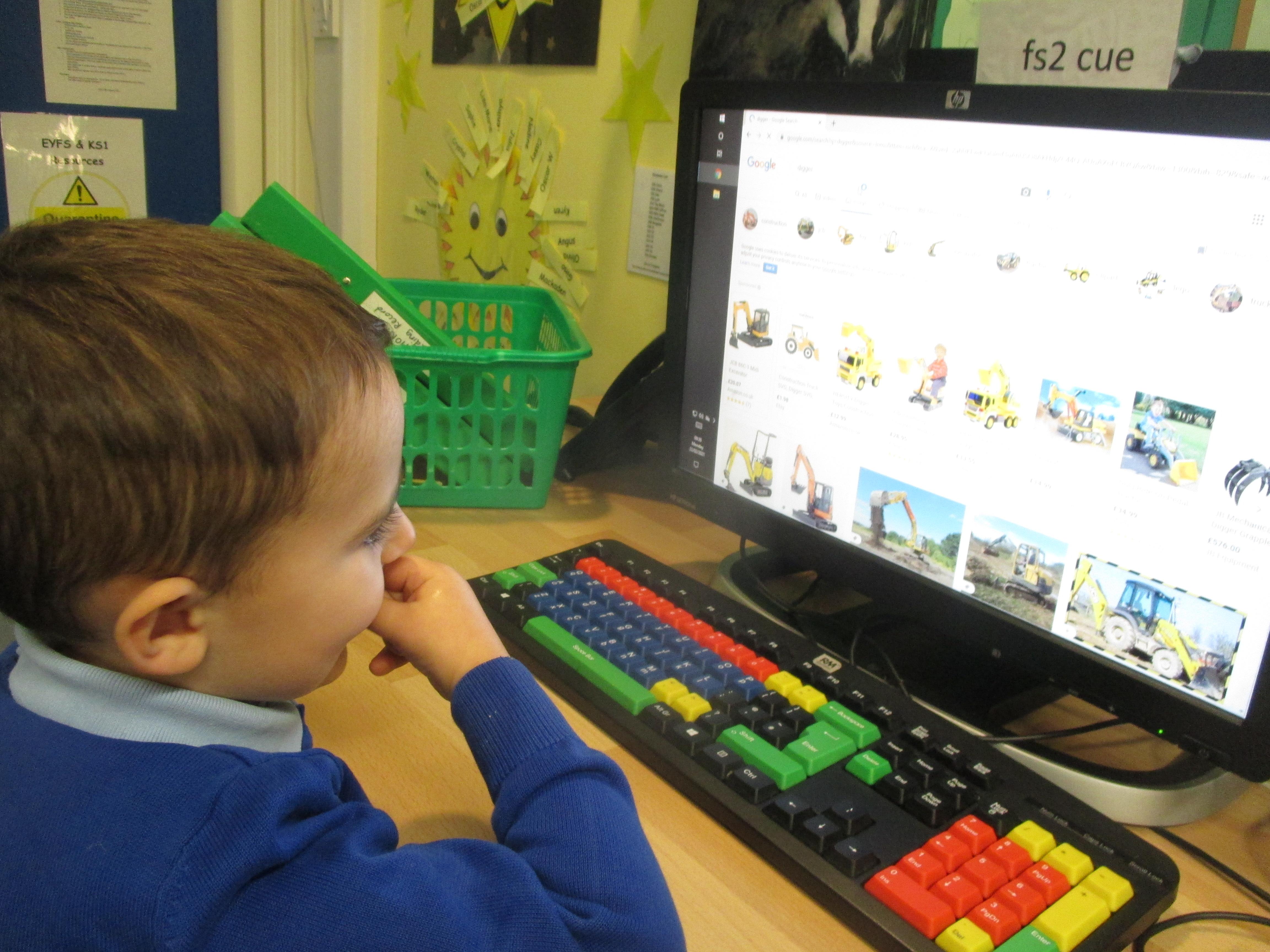 We explored the computers in our classroom. We learnt that you can use computers to help use find out information we want to know. We thought about what we would like to search for and then our grownups helped us to find it out. We also explored the different computer programs we have on the computer.