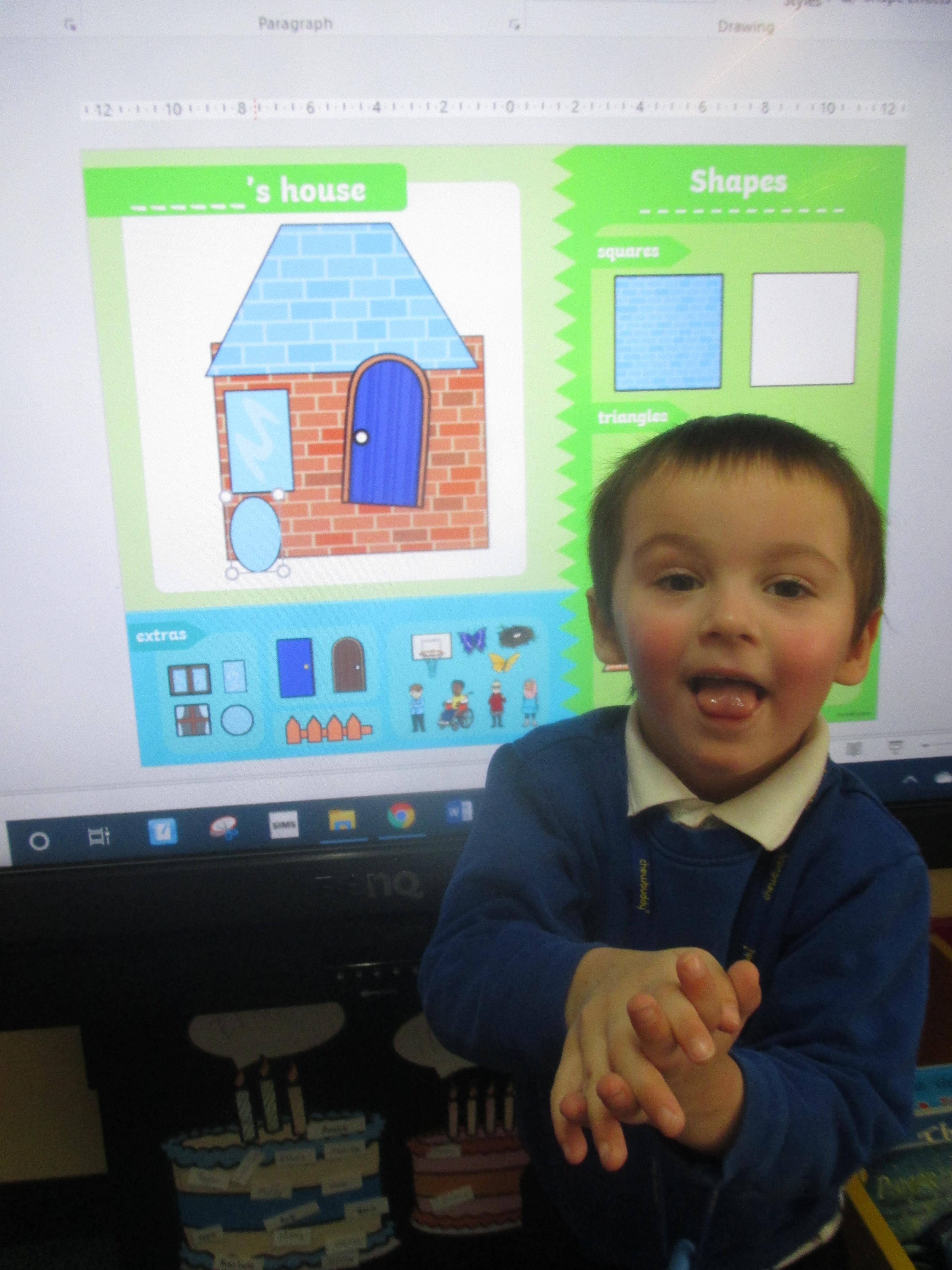 During our 'Houses and Homes' topic, we used the Interactive Whiteboard to design our own houses.